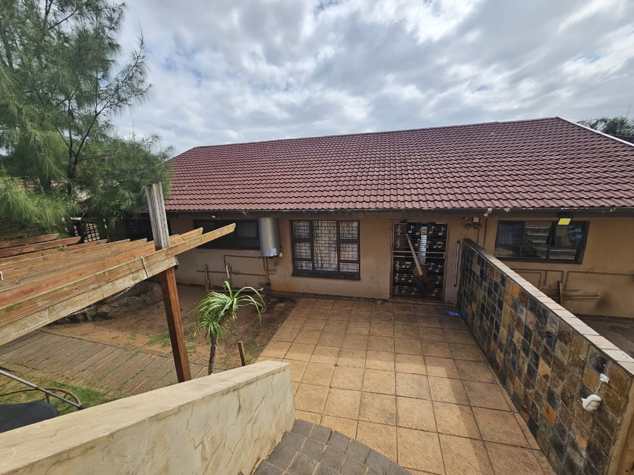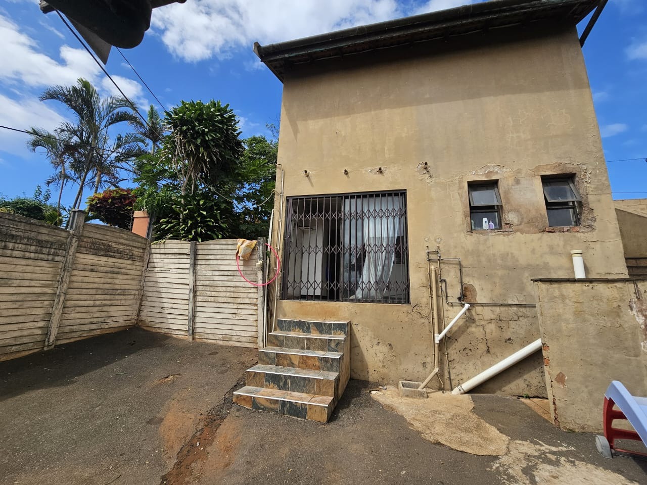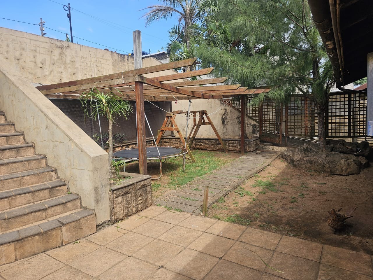 As you make your way down from the driveway, you are welcomed by a spacious outdoor area — perfect as a play space for children or for future landscaping ideas.