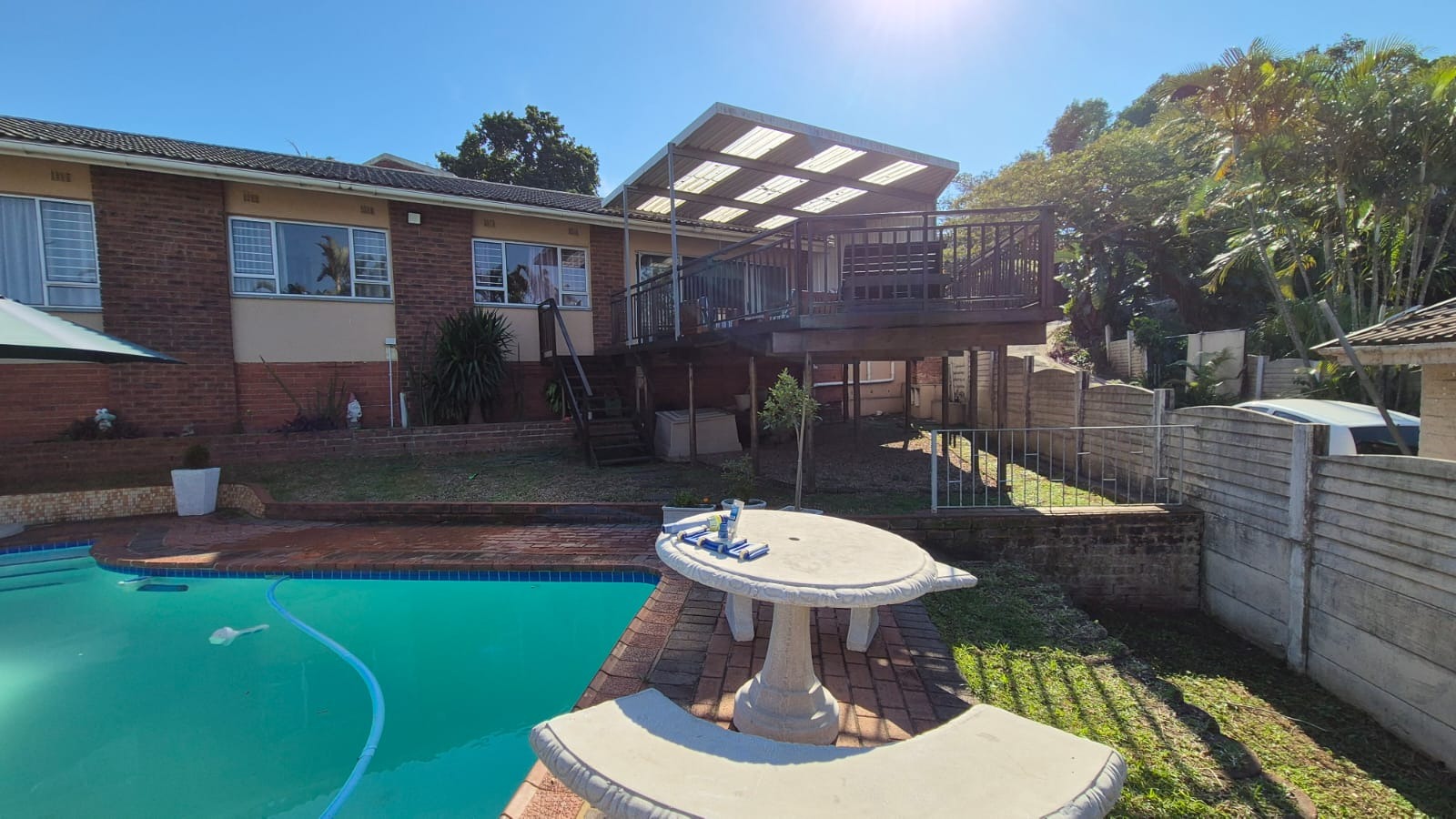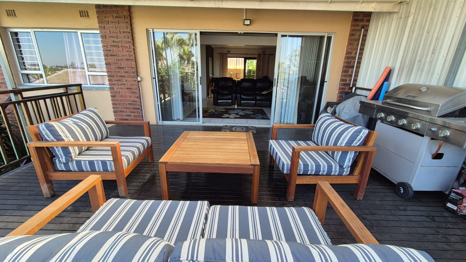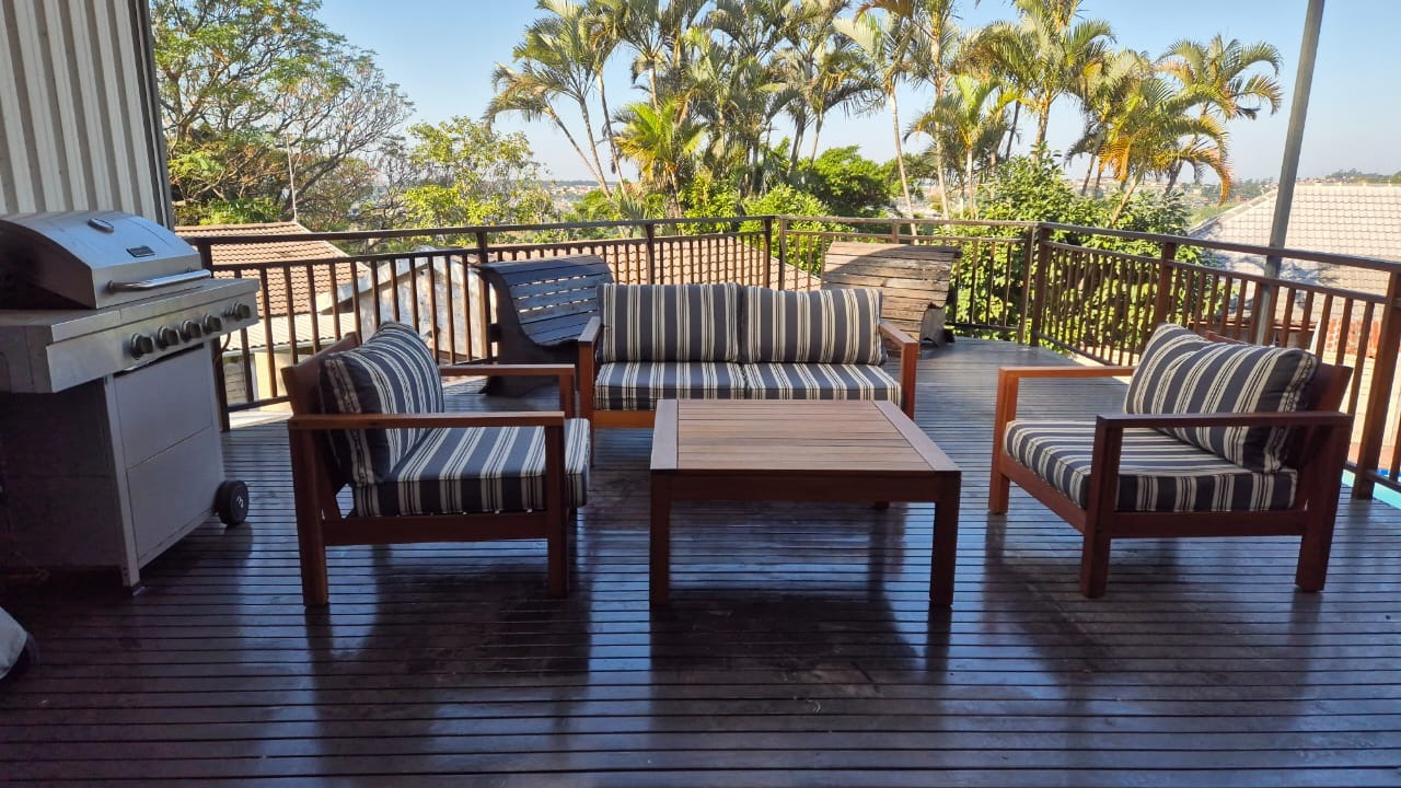 Step out from the lounge onto a generous wooden deck that overlooks a large sparkling pool—ideal for family gatherings or relaxing weekends. The braai area is perfectly positioned for seamless entertaining, while the kitchen and dining space open up to an enclosed area, easily used as a gym, second braai zone, or utility area with space for a washing machine.
