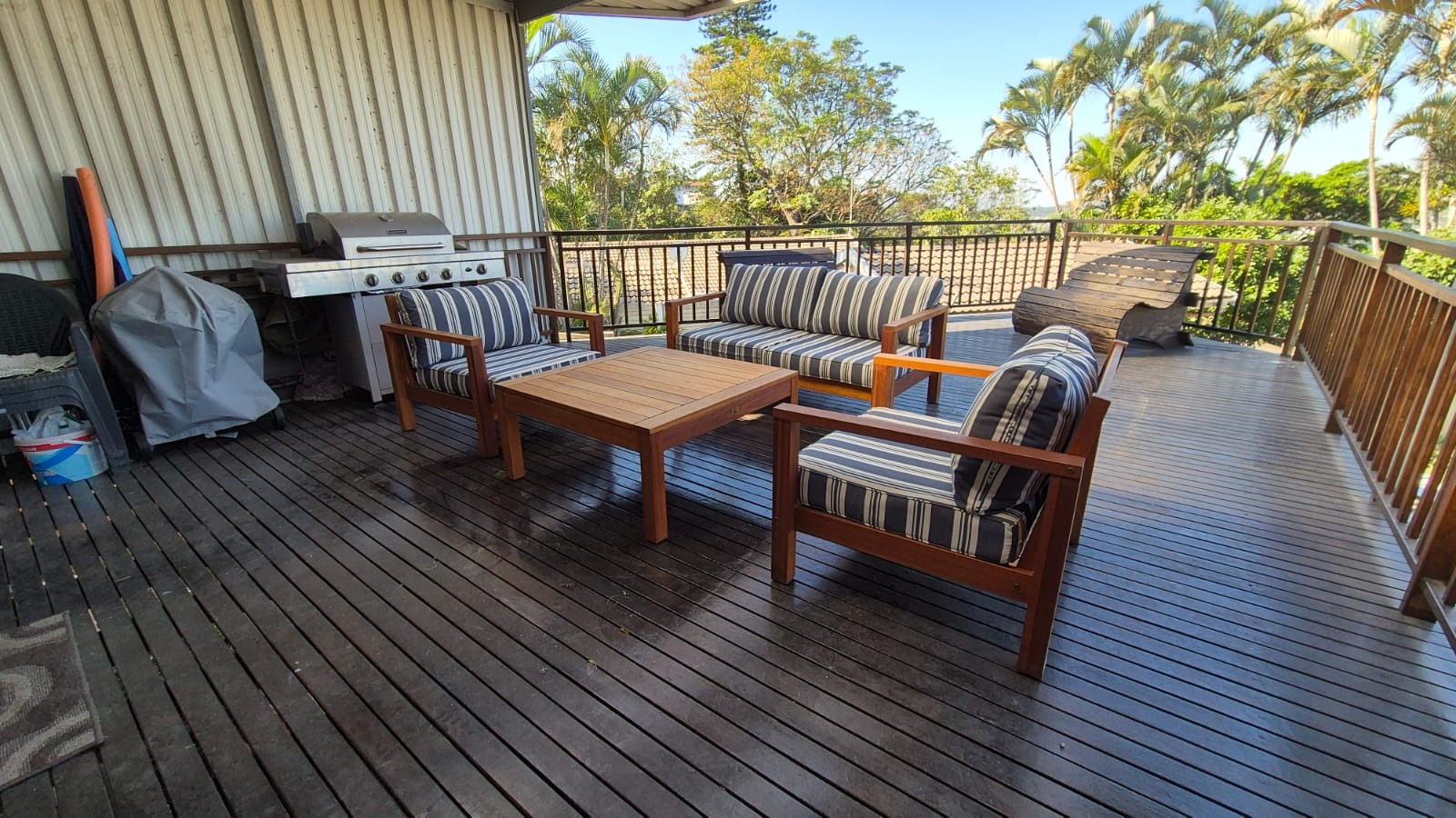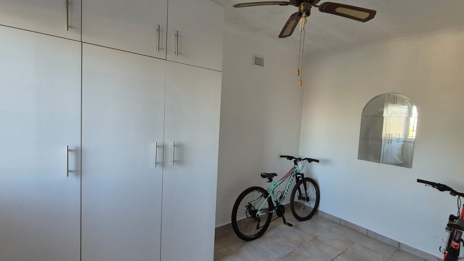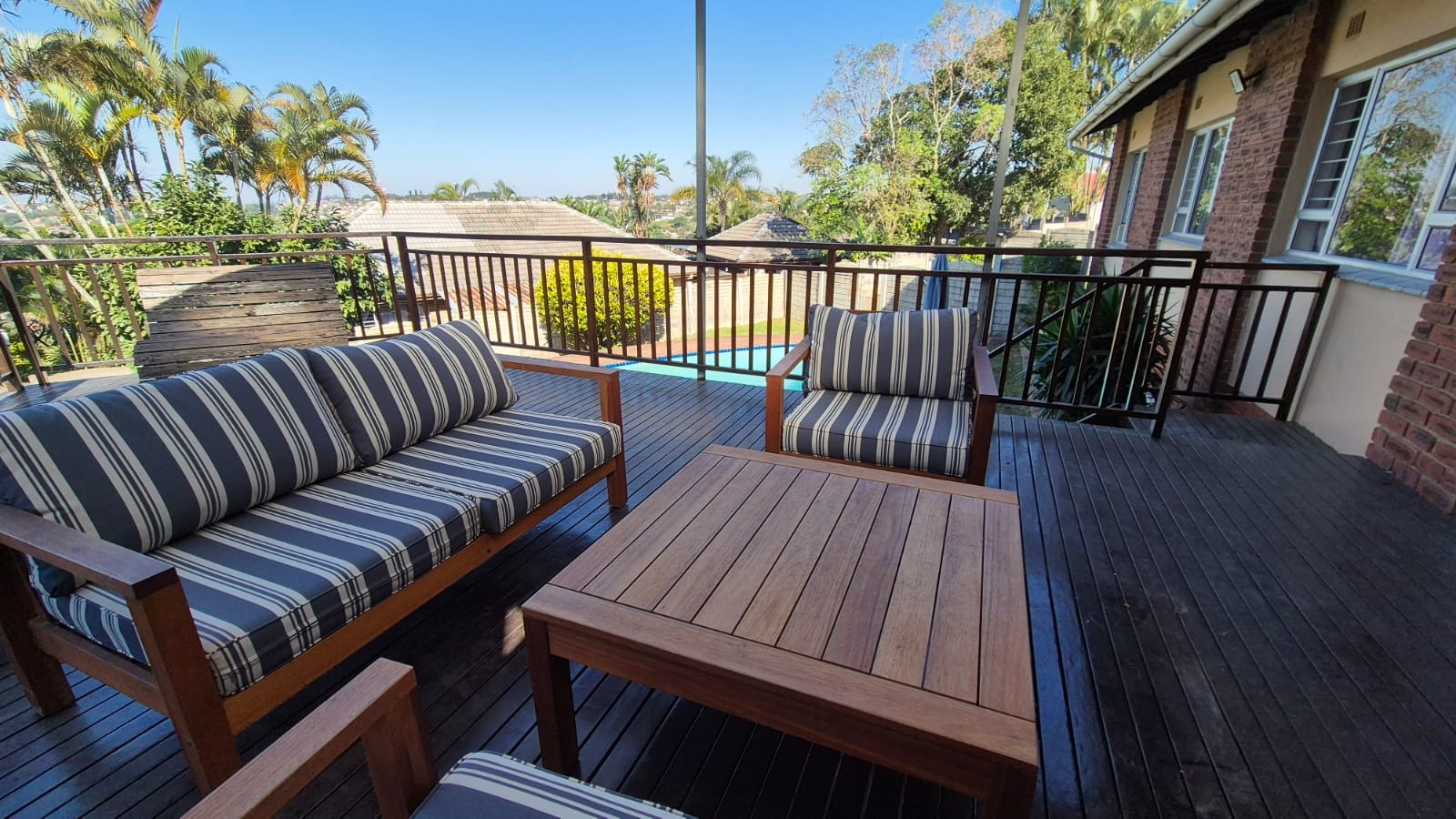 Step out from the lounge onto a generous wooden deck that overlooks a large sparkling pool—ideal for family gatherings or relaxing weekends. The braai area is perfectly positioned for seamless entertaining, while the kitchen and dining space open up to an enclosed area, easily used as a gym, second braai zone, or utility area with space for a washing machine.