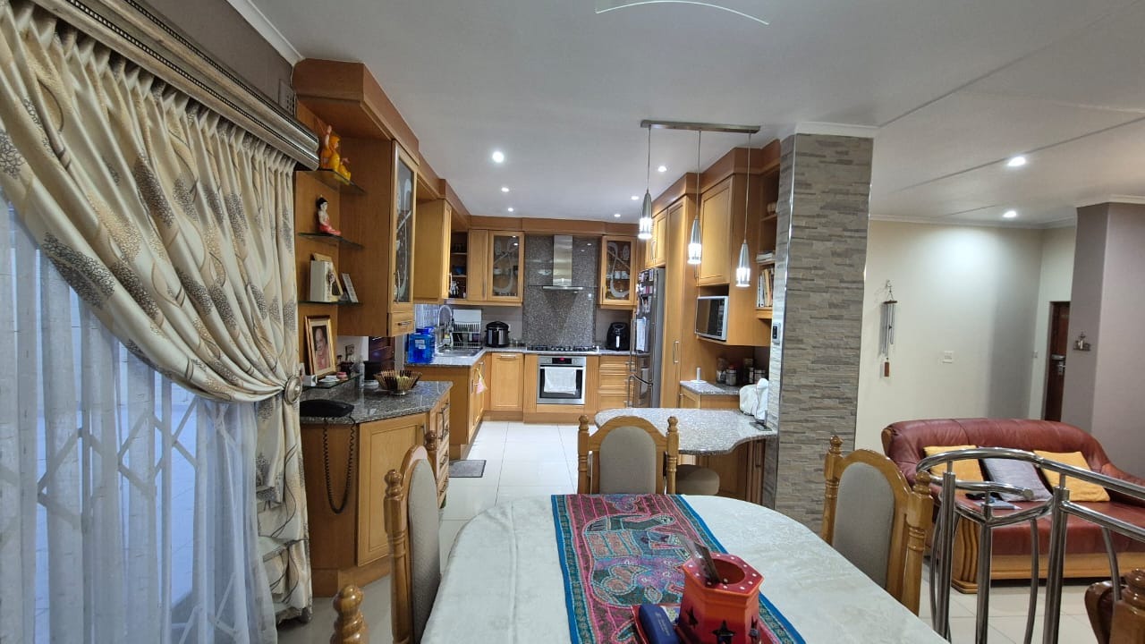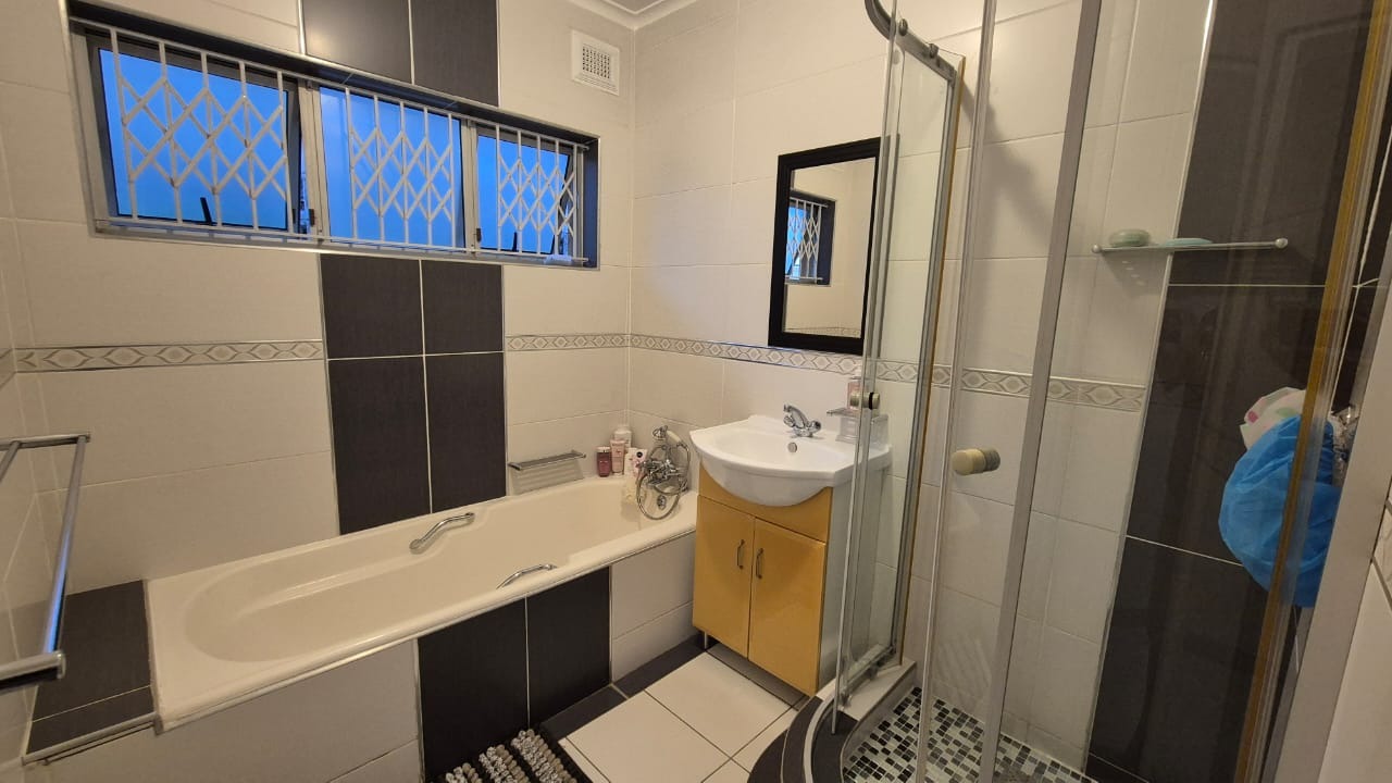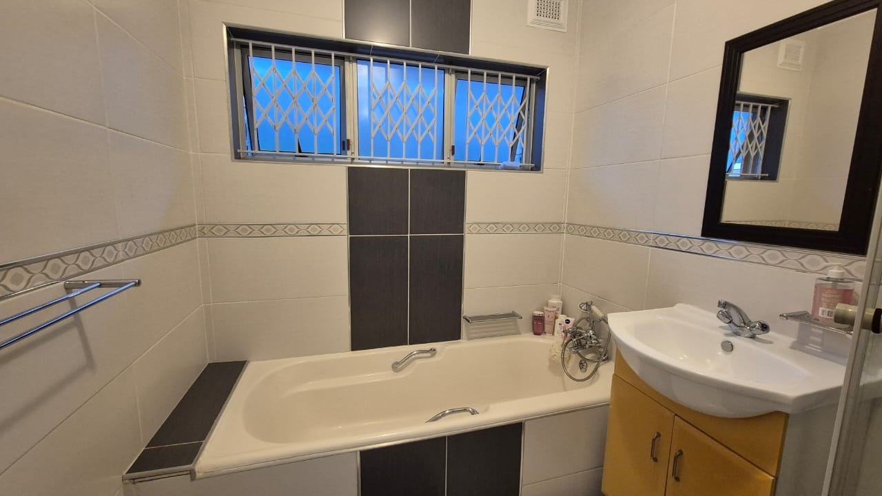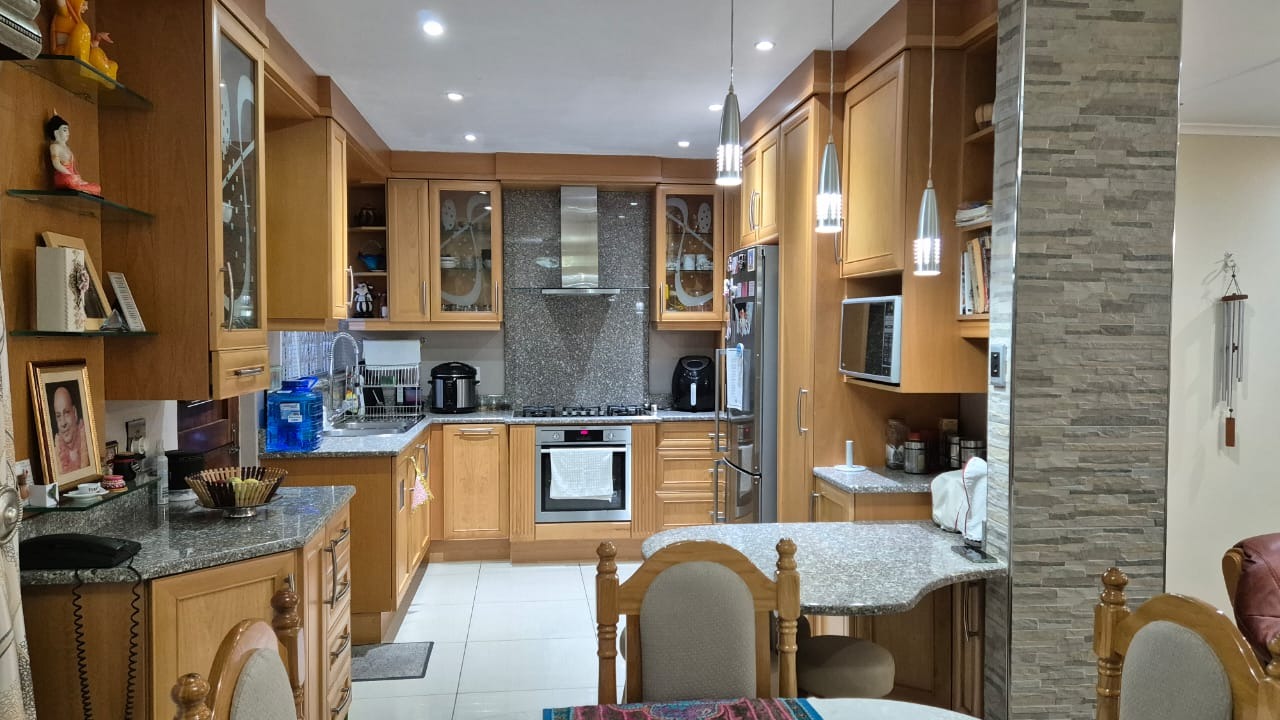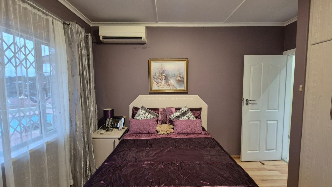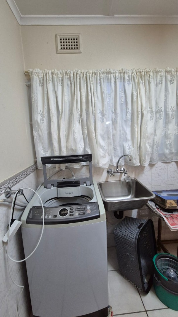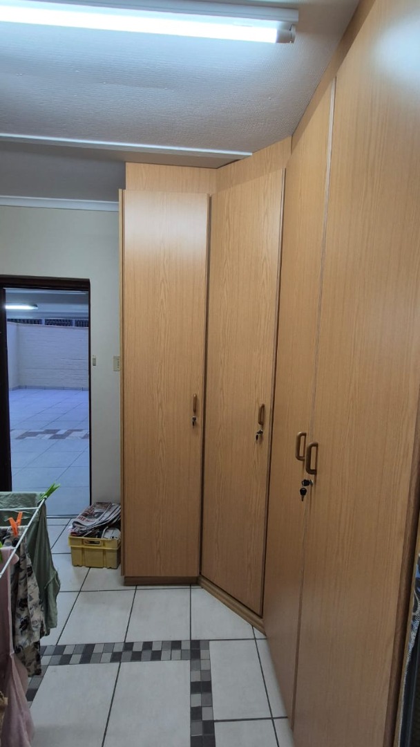 Set on a corner stand with elevated positioning, the home not only offers panoramic outlooks but also excellent security. With an alarm system, surveillance cameras, and full burglar guarding, peace of mind comes standard. A double garage with automated doors provides secure parking and added convenience. Parking will never be an issue here. There is more than enough parking for guests and family too. The bonus is a separate laundry room with plumbing for your appliances and a wash trough plus loads of cupboard space too. Interleading from the laundry is a bedroom and bathroom. This can double up as either staff accommodation or a self contained flatlet with its own separate entrance.
