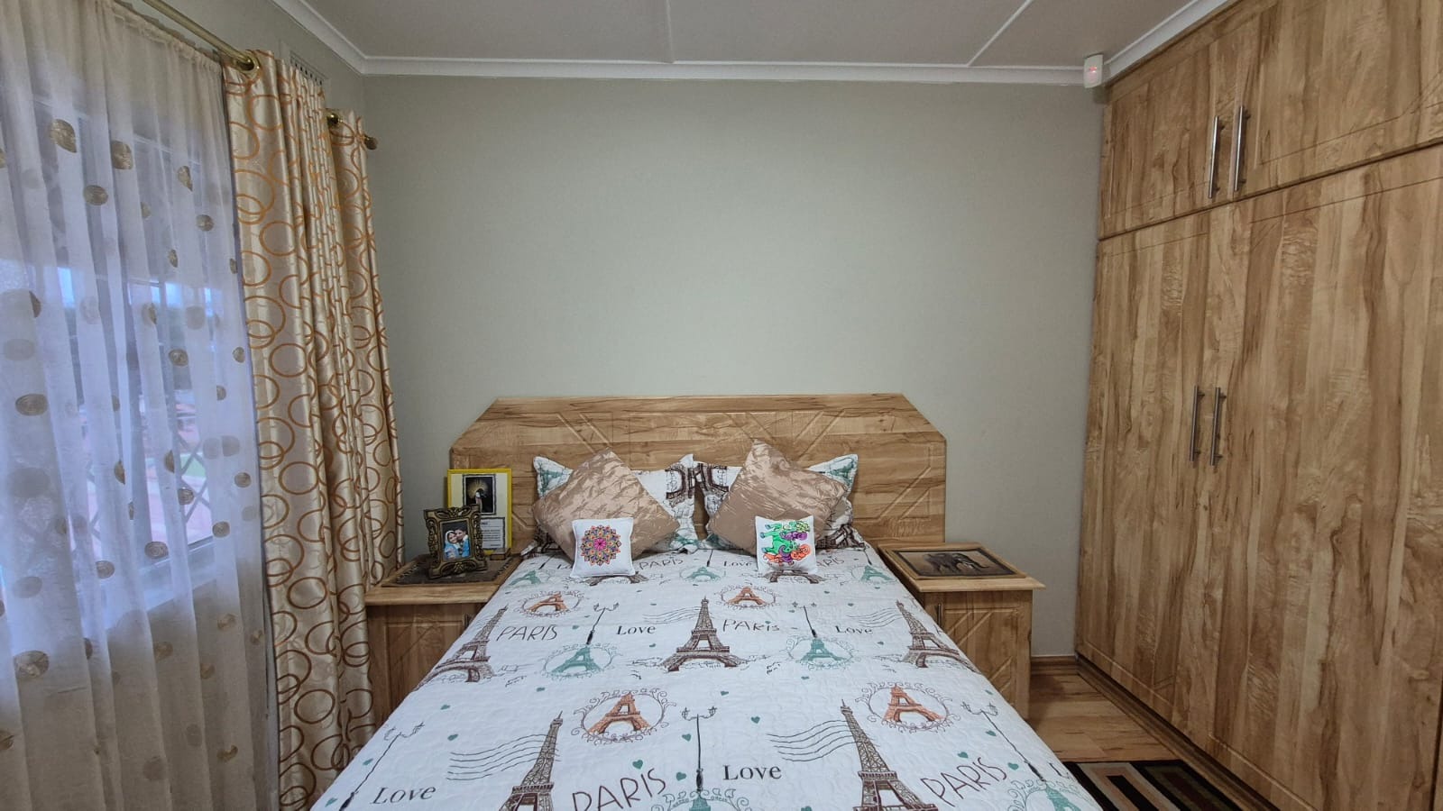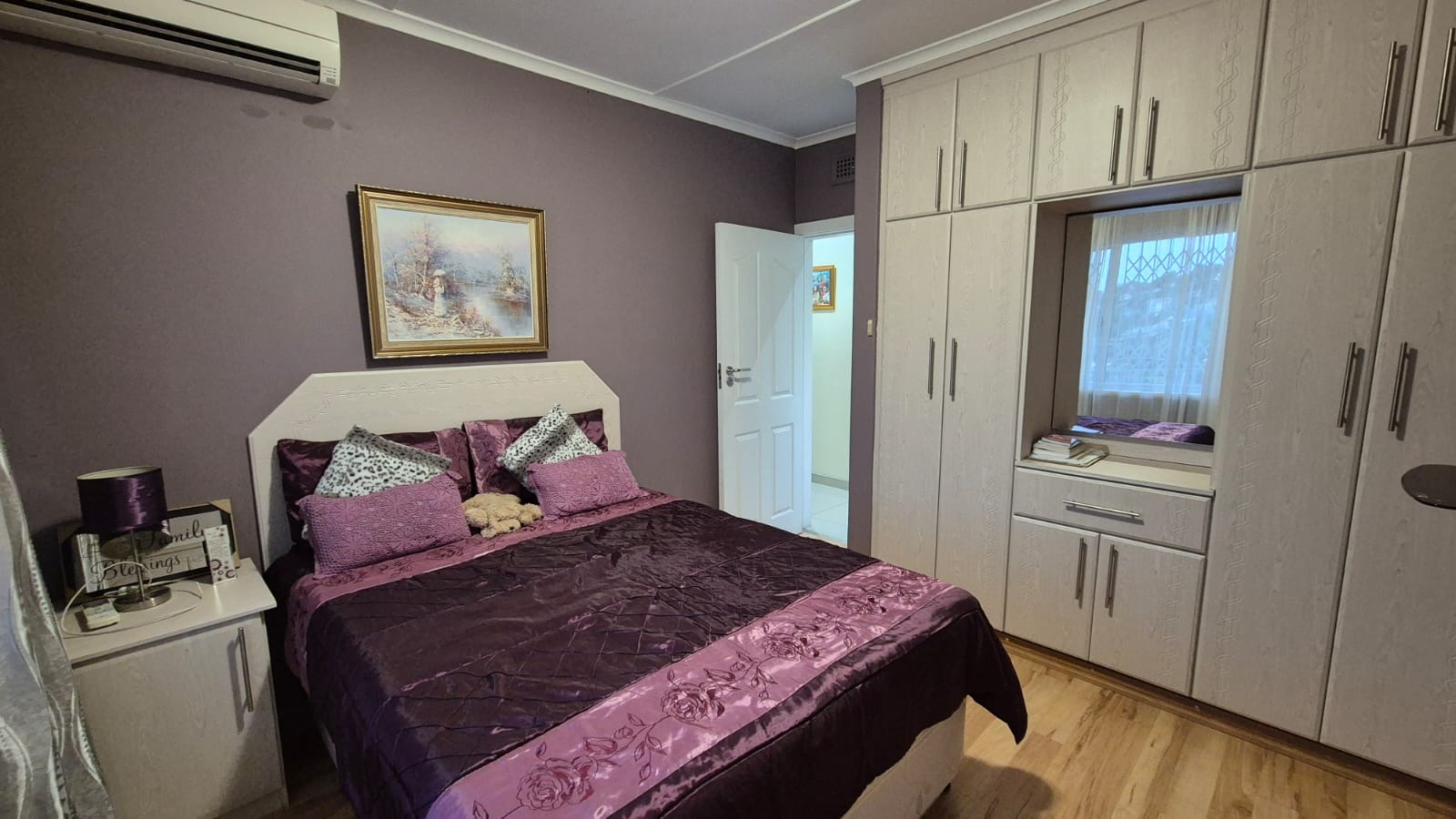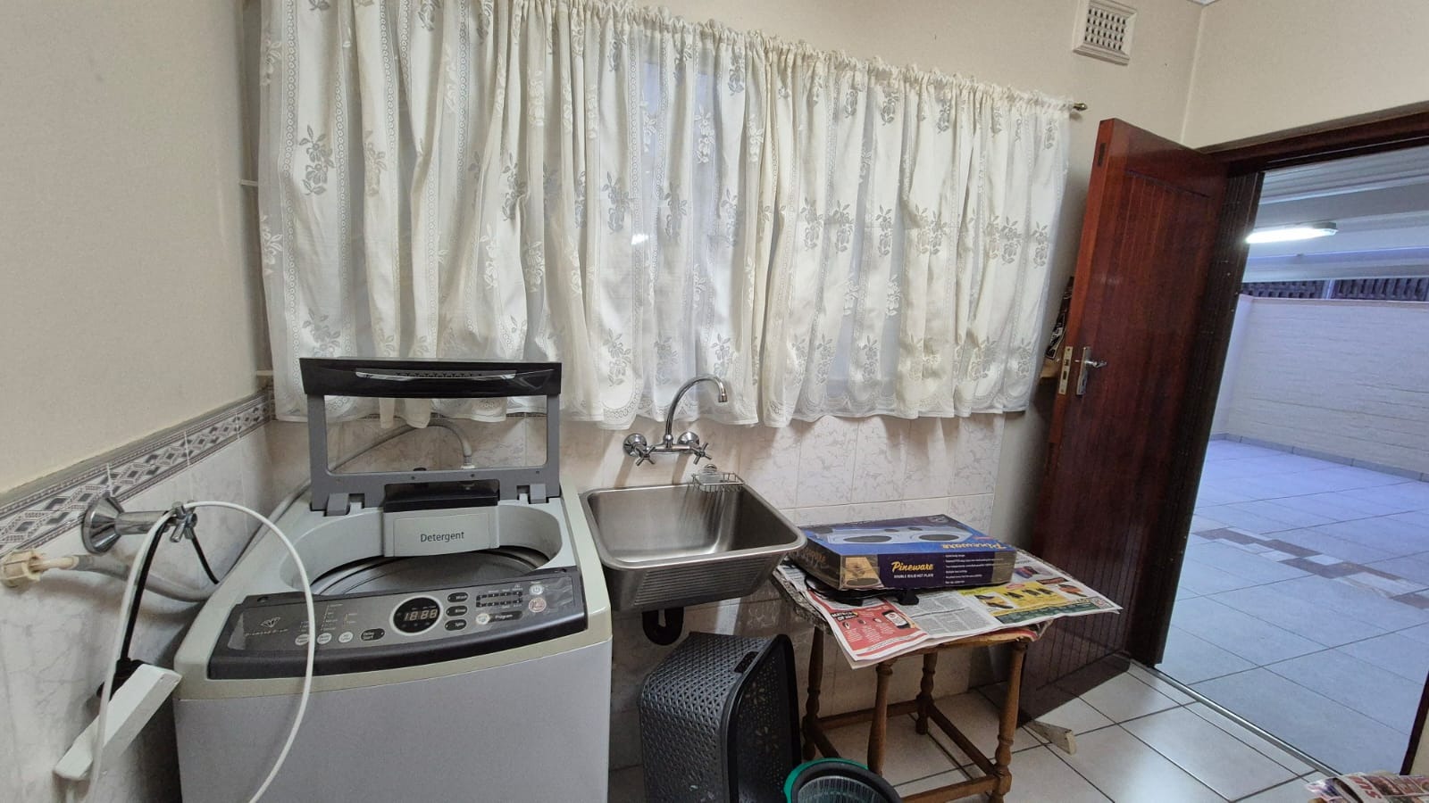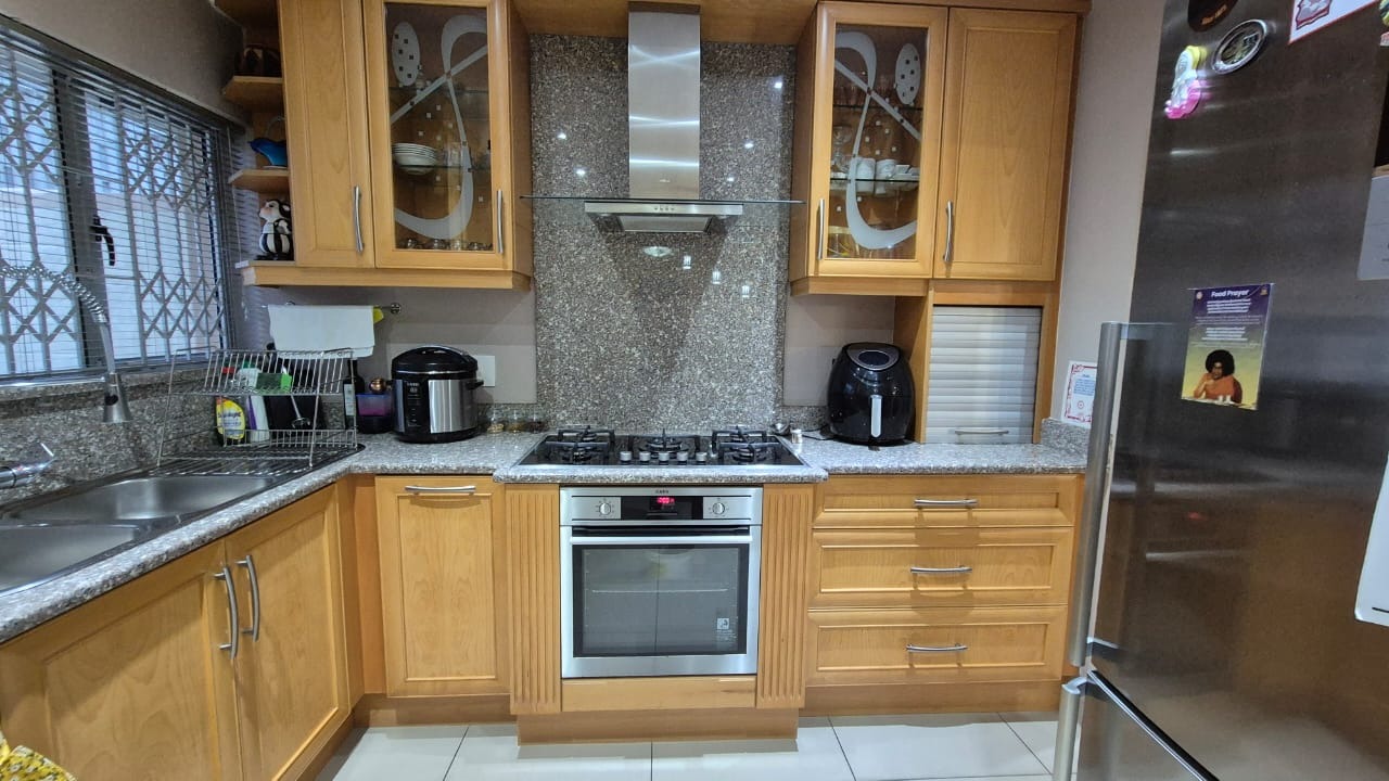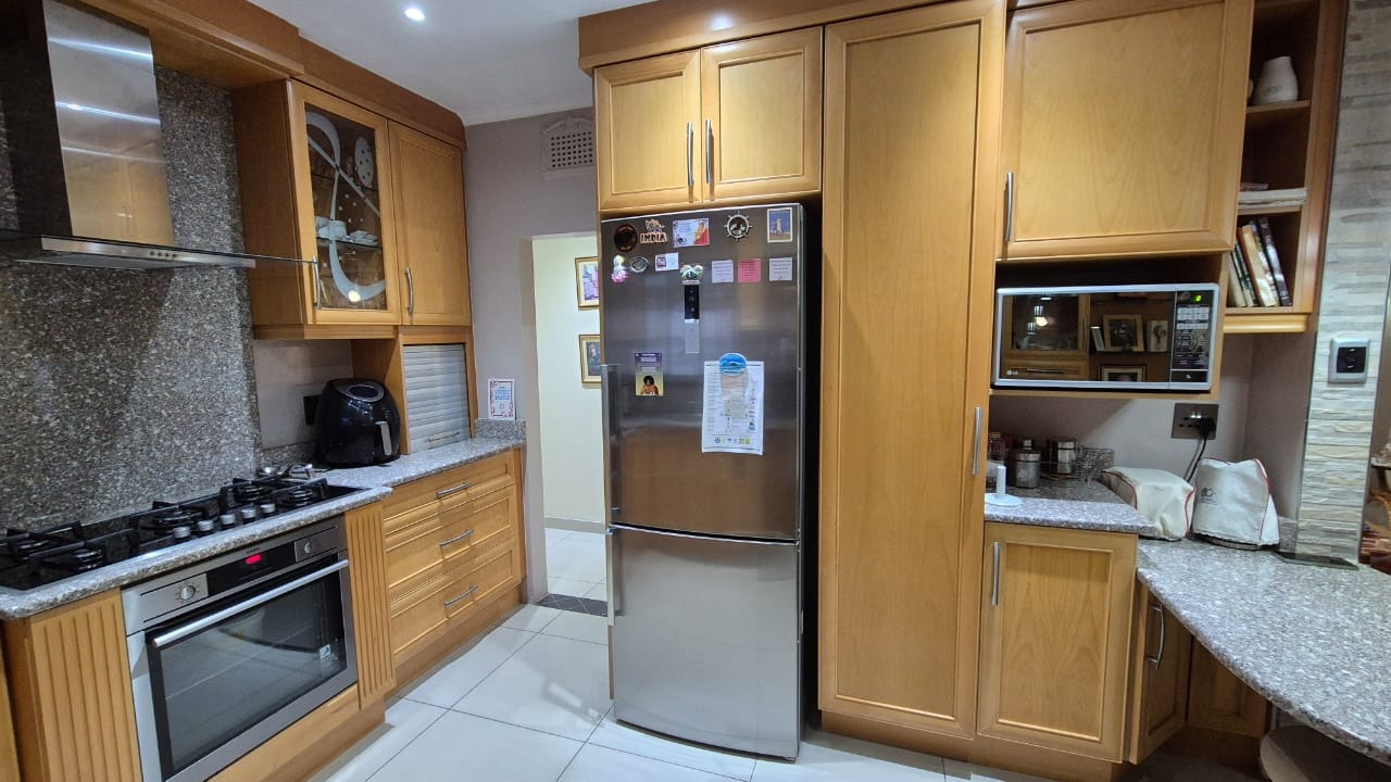 Set on a corner stand with elevated positioning, the home not only offers panoramic outlooks but also excellent security. With an alarm system, surveillance cameras, and full burglar guarding, peace of mind comes standard. A double garage with automated doors provides secure parking and added convenience. Parking will never be an issue here. There is more than enough parking for guests and family too. The bonus is a separate laundry room with plumbing for your appliances and a wash trough plus loads of cupboard space too. Interleading from the laundry is a bedroom and bathroom. This can double up as either staff accommodation or a self contained flatlet with its own separate entrance.