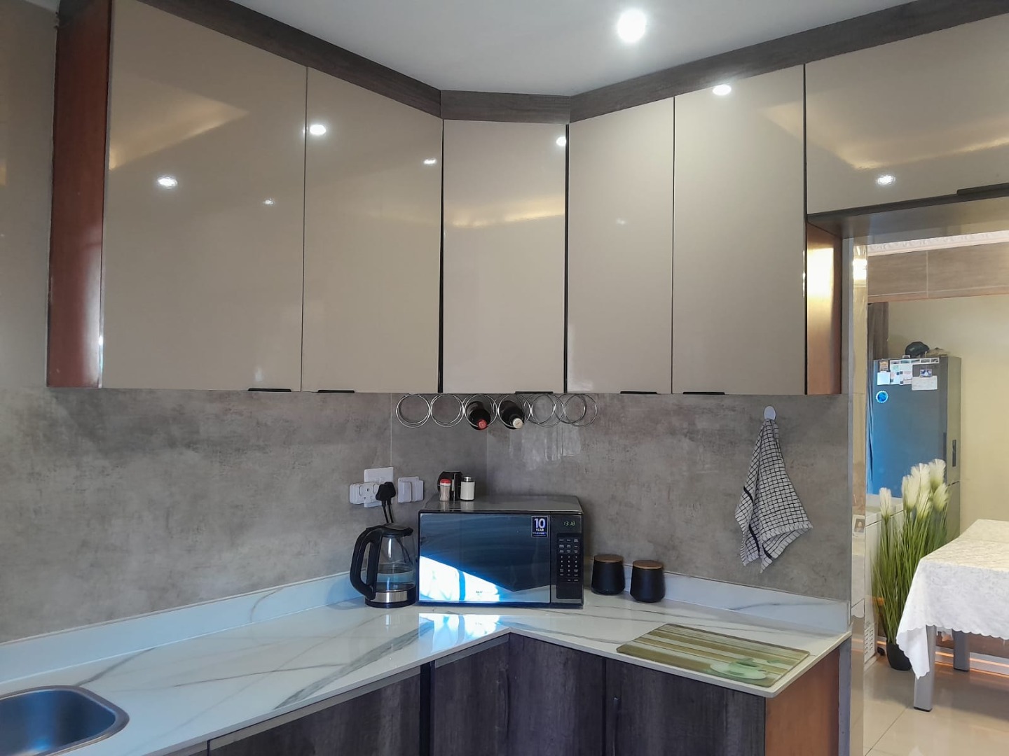 The floors throughout the house has polished porcelain tiles and also has aluminum doors and windows.