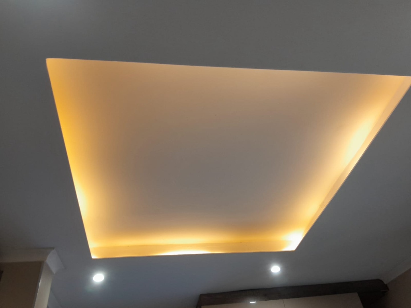 Downstairs has a fully fitted kitchen, open plan lounge and dining room and drop down ceilings with