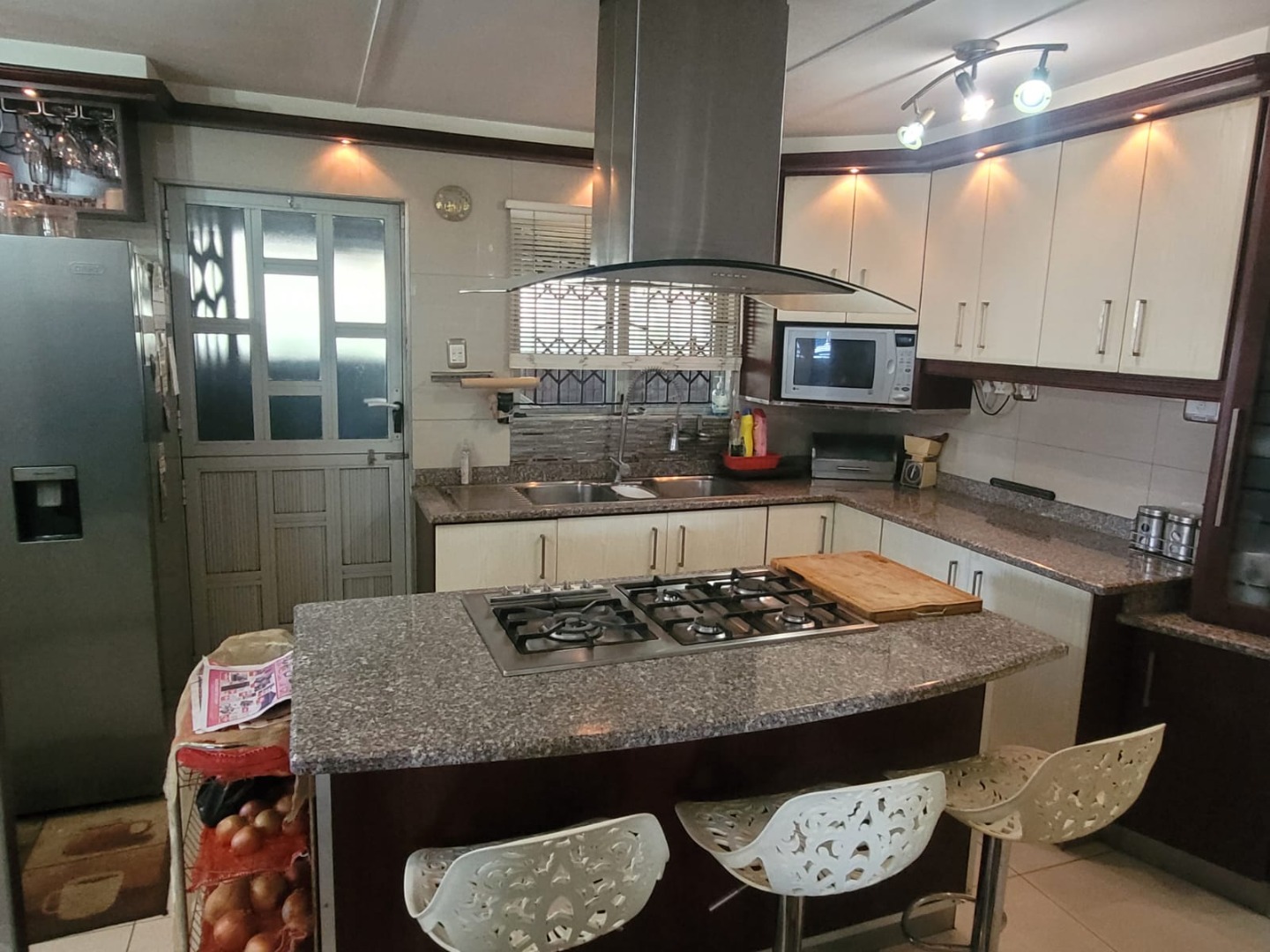 The kitchen is truly the heart of this home, designed for both functionality and style. It features a generous granite-topped island with an integrated gas hob, making meal prep a breeze. You'll love the ample cabinet storage and even a built-in wine rack for your favourite bottles. It’s a fantastic space for cooking up a storm or enjoying casual meals at the breakfast bar.