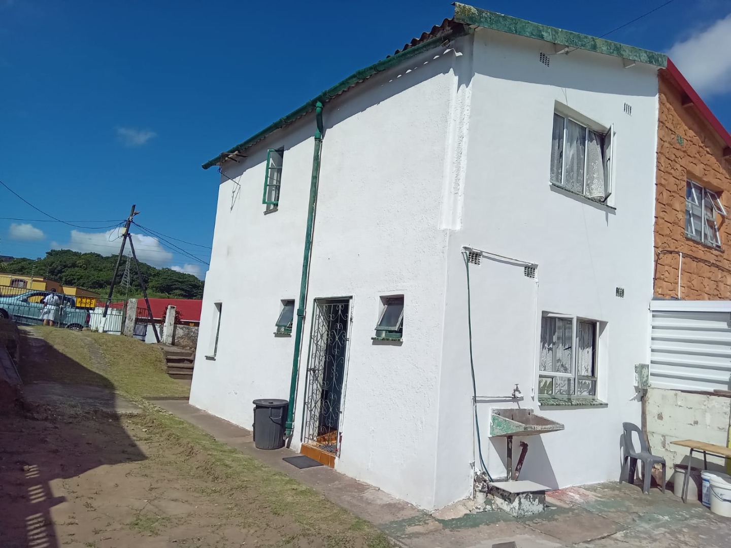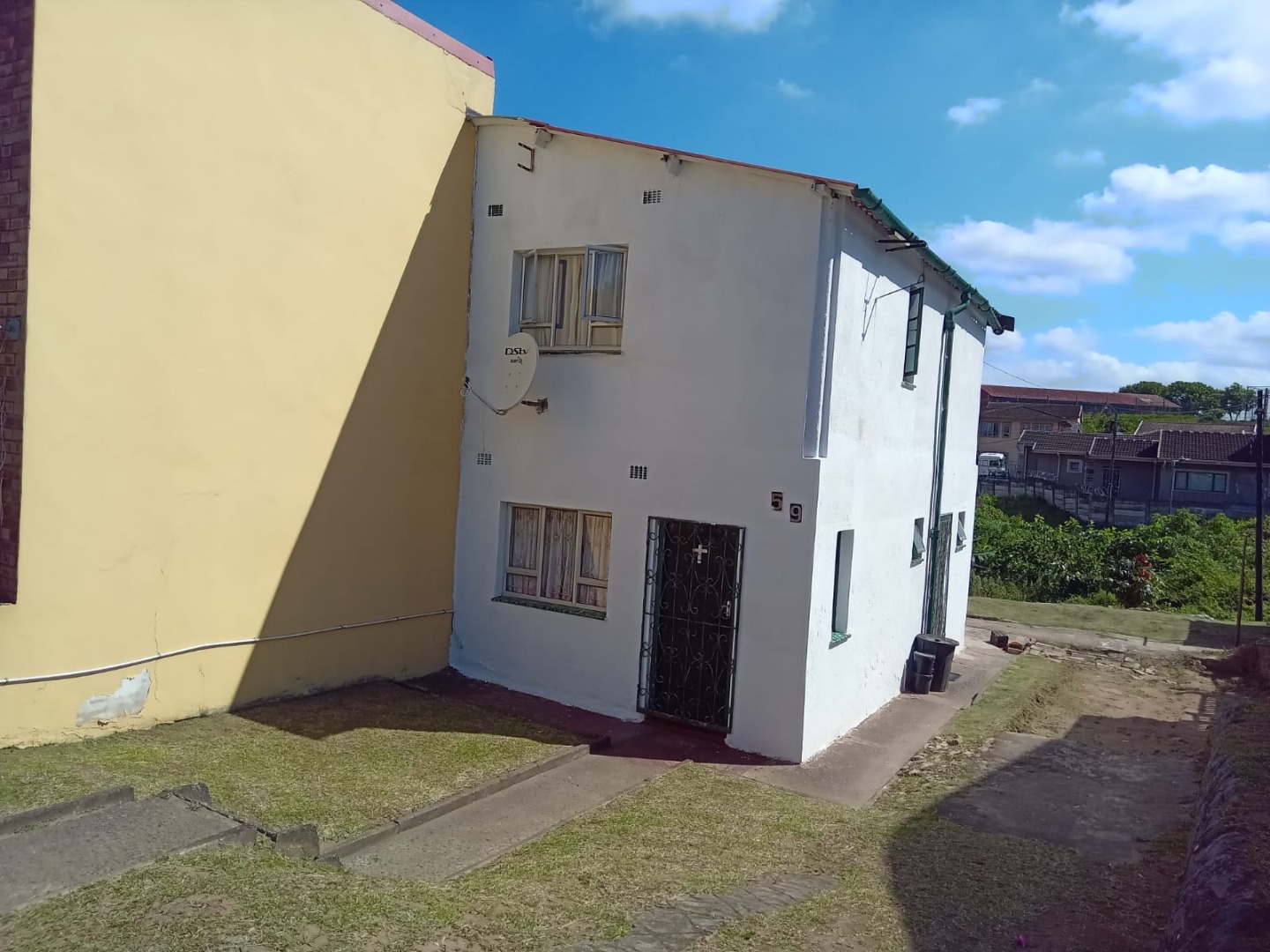Discover this cozy two-story home in Crossmoor, Chatsworth, boasting a fresh white exterior and green accents. You'll feel secure with a main entrance featuring burglar bars and a security gate, plus the property is totally walled. The 223 sqm erf includes a small front lawn and a driveway with ample parking for up to 5 vehicles.