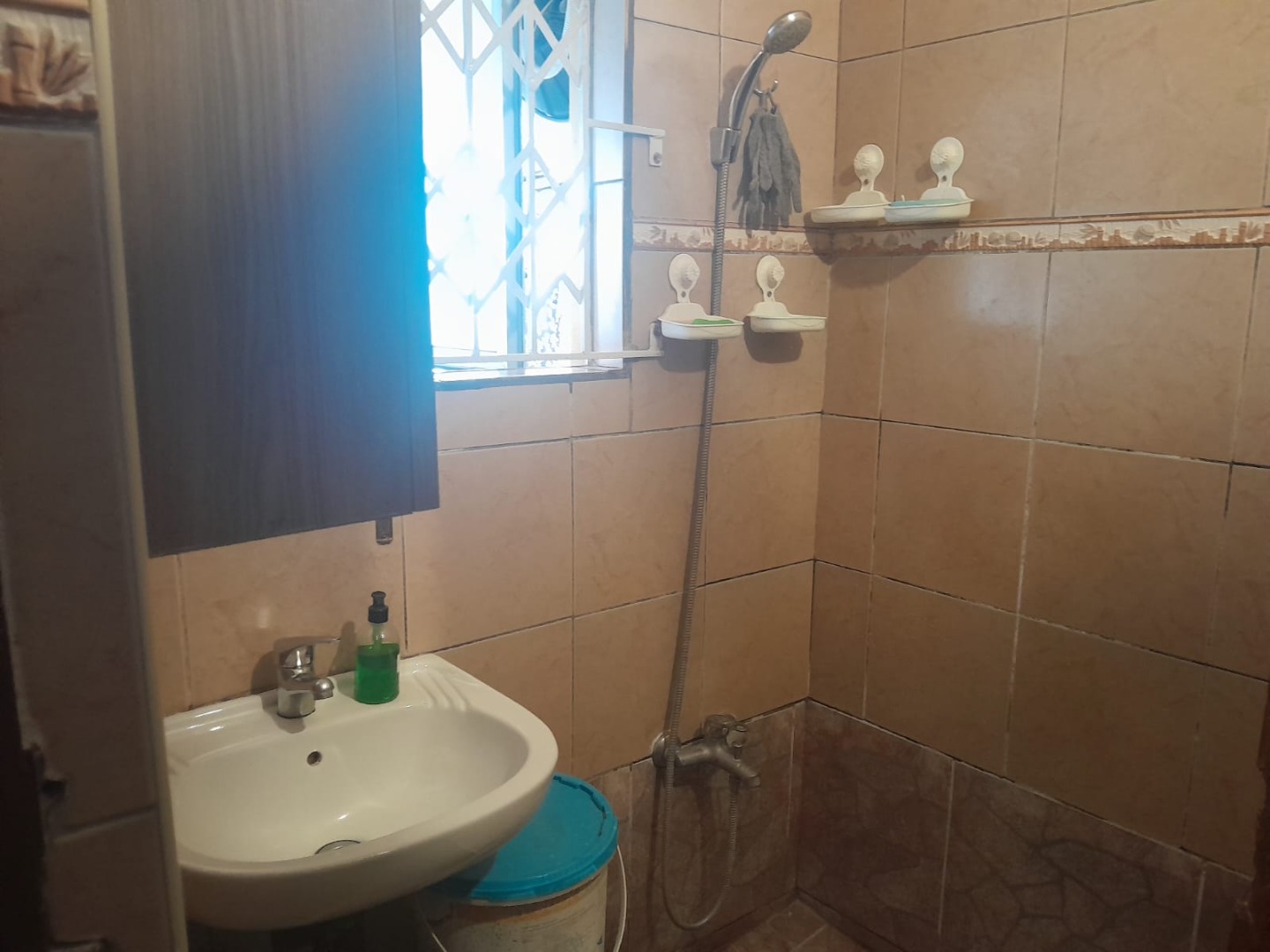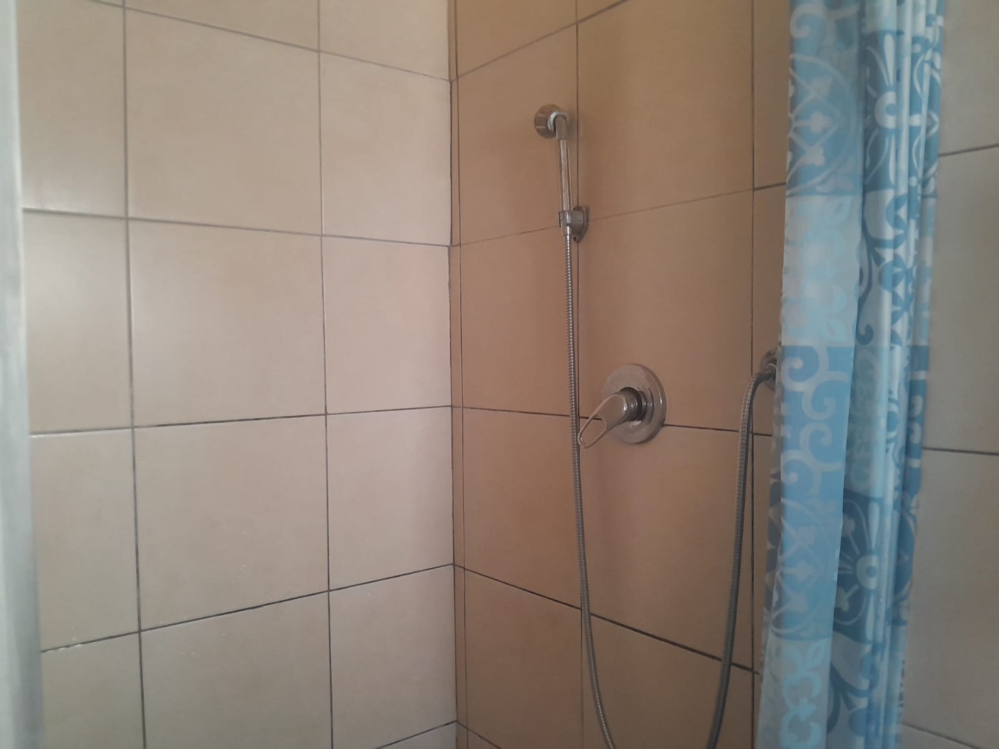 The bathroom is fitted with a shower, with a separate toilet located outside the main building.