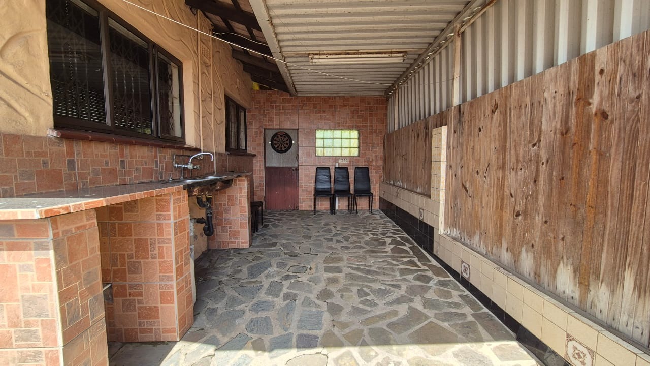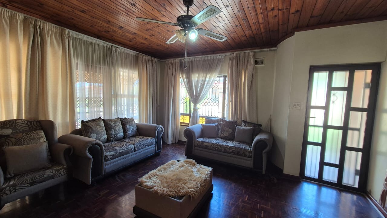Situated in the established suburb of Umhlatuzana, Chatsworth, this substantial residence offers a compelling opportunity within a vibrant community. Upon entry, the property reveals a spacious lounge and dining area, characterised by rich wooden parquet flooring and distinctive wooden paneled ceilings. Large windows ensure abundant natural light, enhancing the inviting atmosphere. The modern kitchen is meticulously appointed with two-tone cabinetry, sleek black granite countertops, an integrated hob and oven, and a contemporary extractor fan. This functional space also features a convenient breakfast bar and tiled flooring, catering to both culinary skills and casual dining.