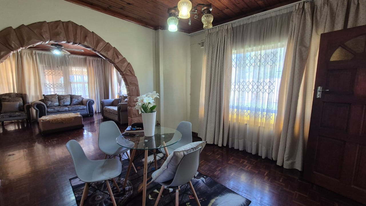 Externally, the expansive 2388 sqm erf provides considerable potential for outdoor development or landscaping. The property benefits from two dedicated garages and additional parking spaces, accommodating multiple vehicles. A balcony offers an elevated vantage point, while the inclusion three separate flatlets presents versatile living arrangements or potential rental income opportunities. Currently two of the flatlets are rented out. Security is comprehensively addressed with an alarm system, CCTV surveillance, robust burglar bars, and a secure access gate, ensuring peace of mind for residents. The architectural design, featuring classic wooden elements and a substantial footprint, contributes to a distinguished kerb appeal.