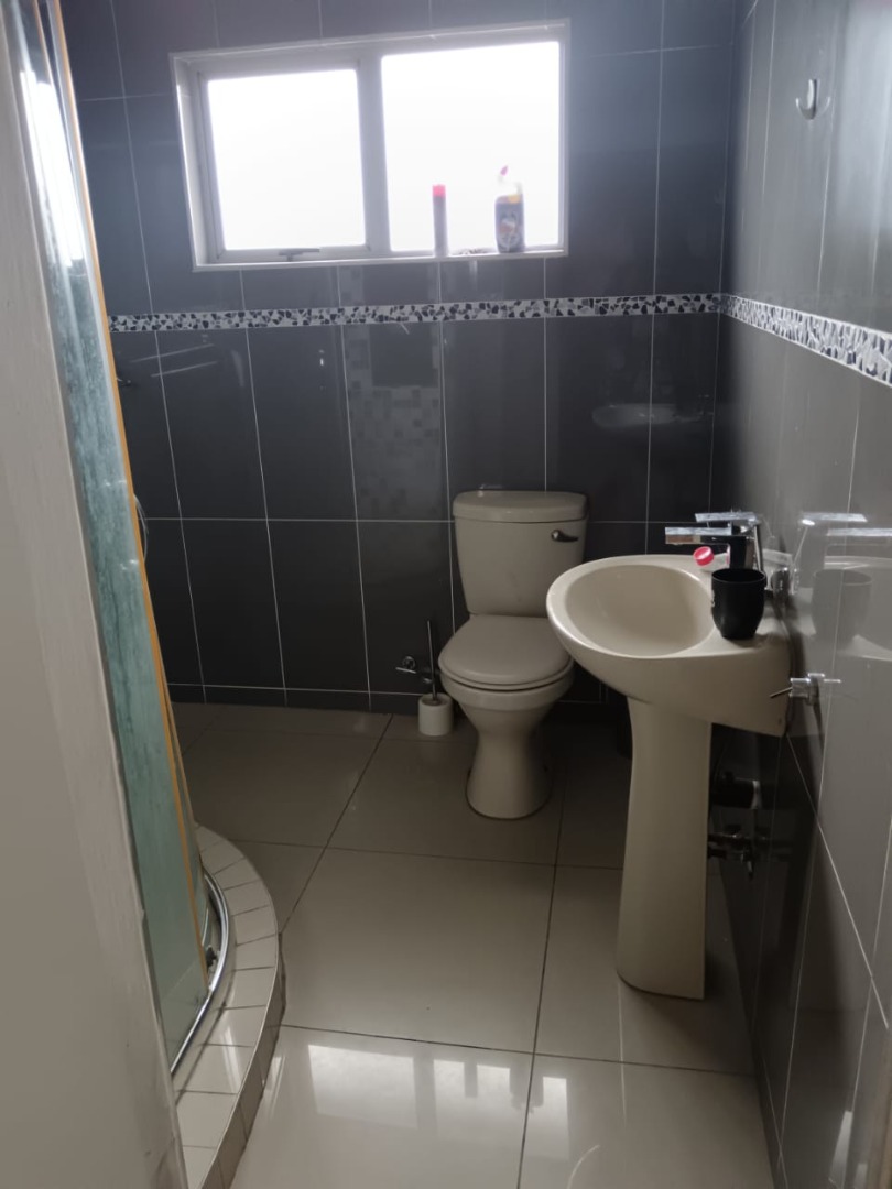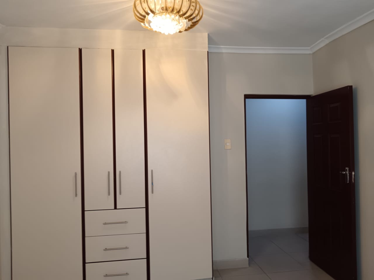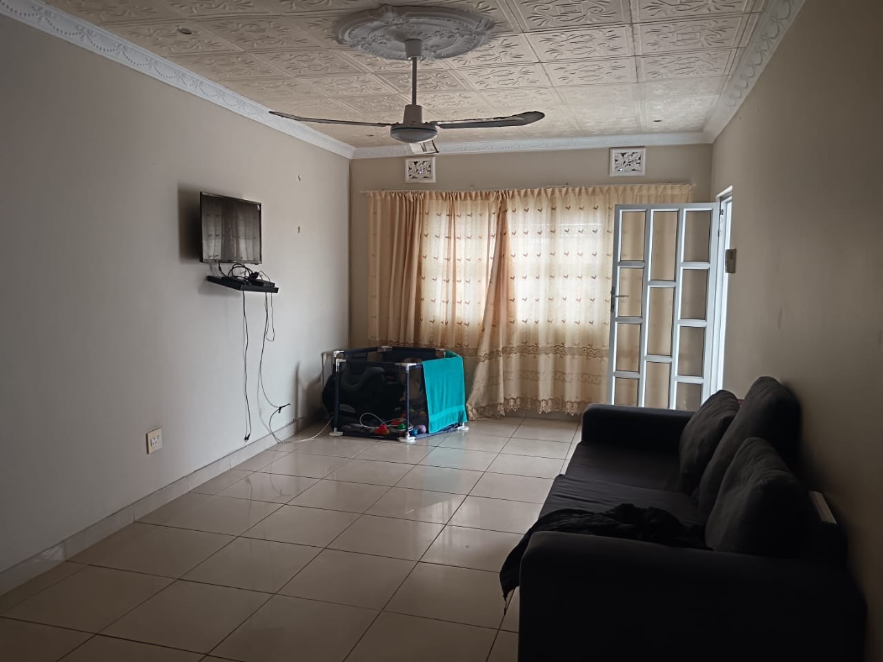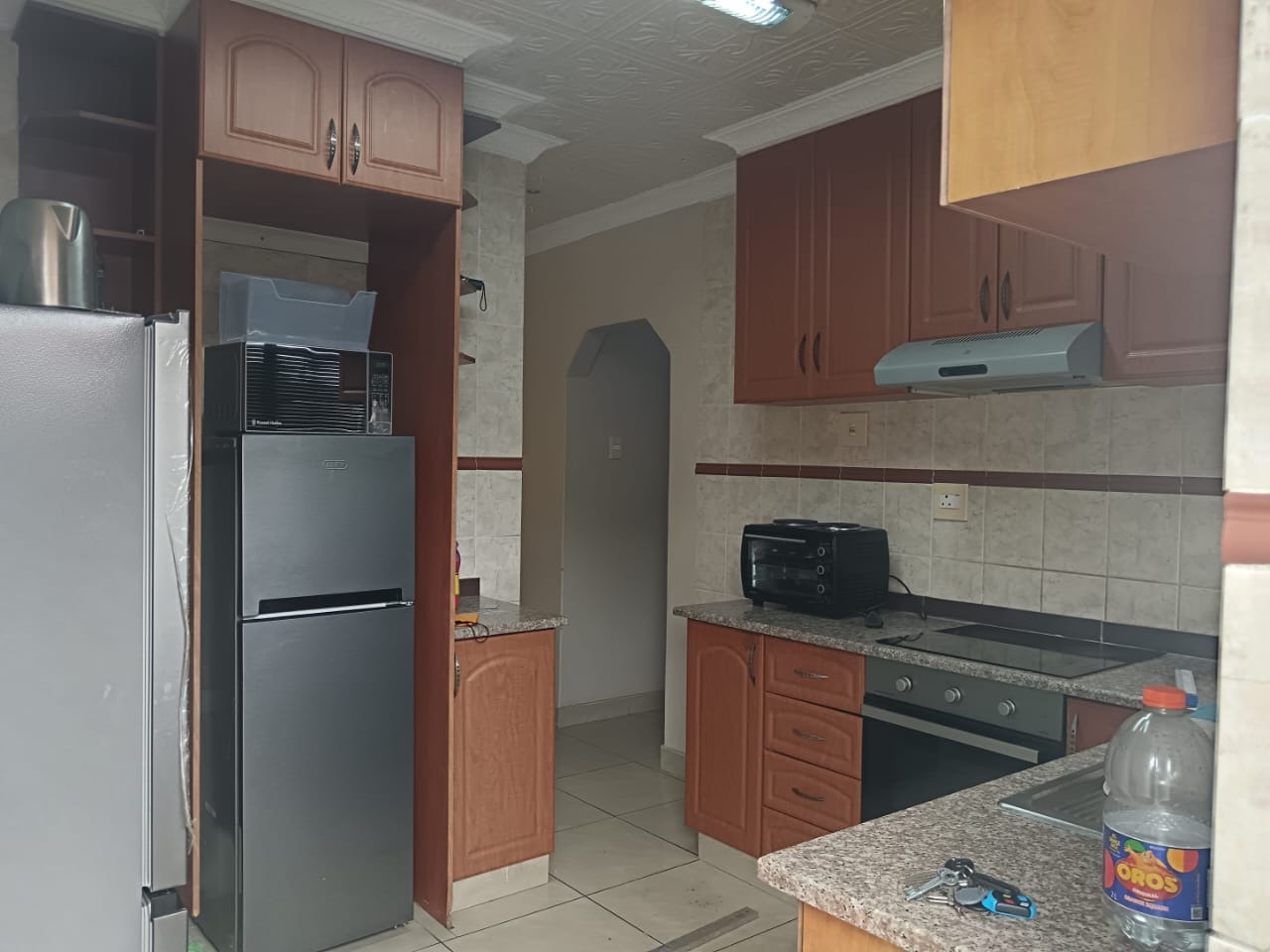 Step inside and you'll find a comfy lounge area with tiled flooring, a ceiling fan to keep things breezy, and a nice big window letting in plenty of sunshine. The kitchen is a real winner, boasting modern built-in hob and oven, a range hood, and loads of cabinet space. Plus, those granite-look countertops and tiled backsplash give it a neat, clean feel. There's even a dedicated dining room for those family meals.