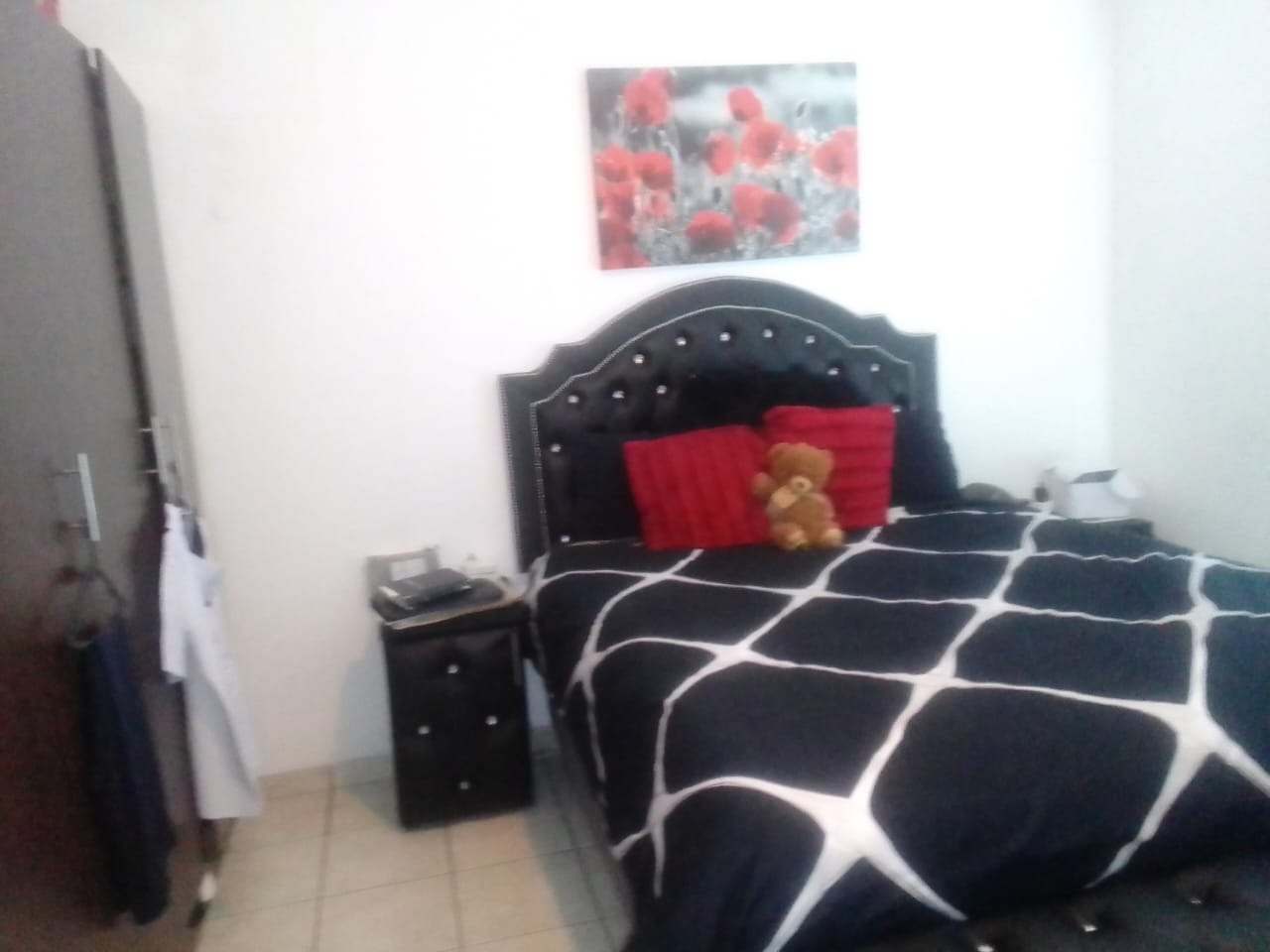 This apartment offers two cozy bedrooms, each with tiled floors and a wardrobe for your things. There's one well-appointed bathroom to share, ensuring convenience for residents.