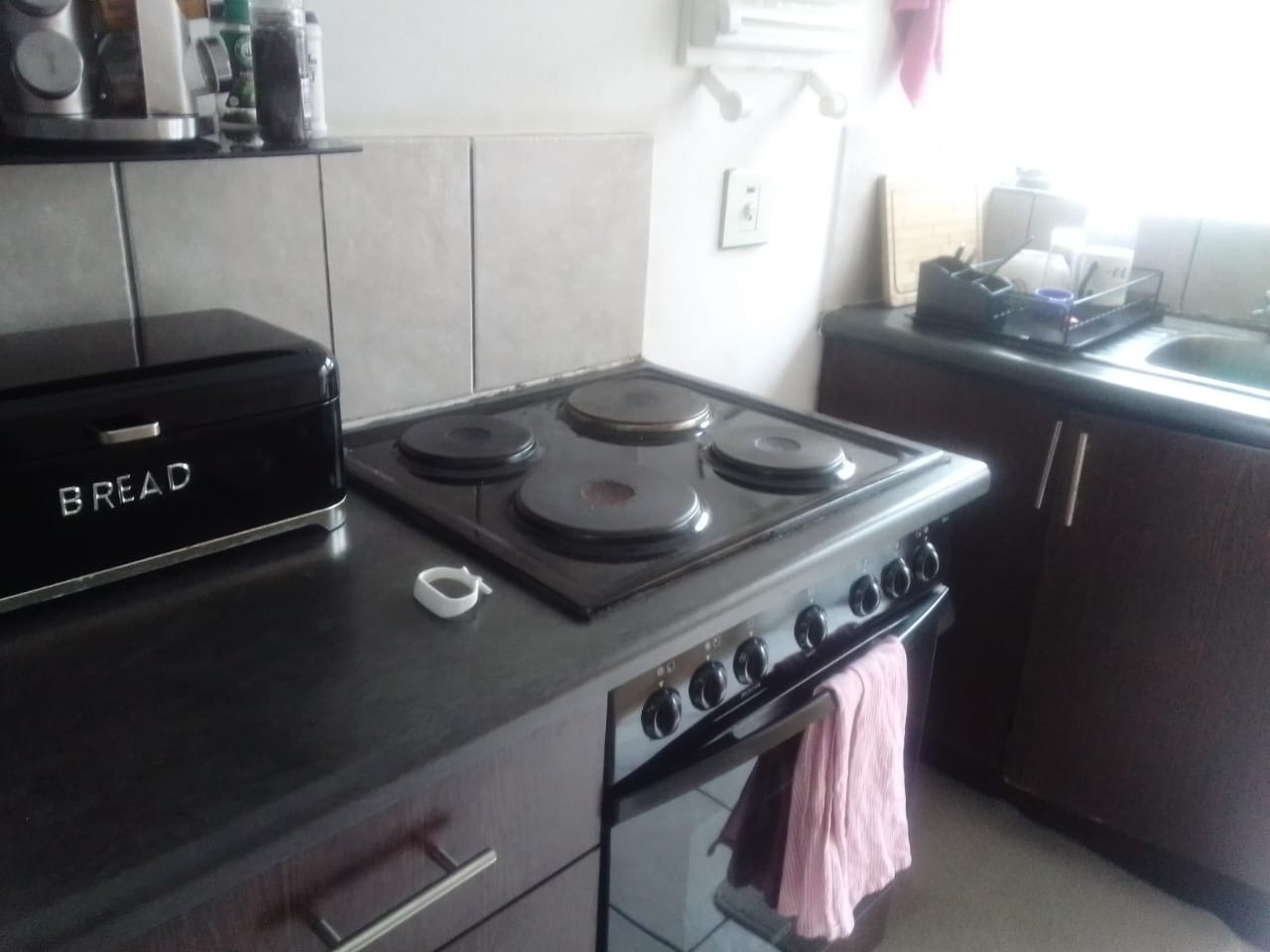 Inside, you'll find a neat open-plan living and kitchen area that feels really welcoming with a cosy living area. The kitchen is compact but super functional. You'll also appreciate the granite-look countertops and dark cabinetry, plus a handy breakfast bar for quick meals or entertaining. Tiled flooring throughout makes cleaning a breeze.