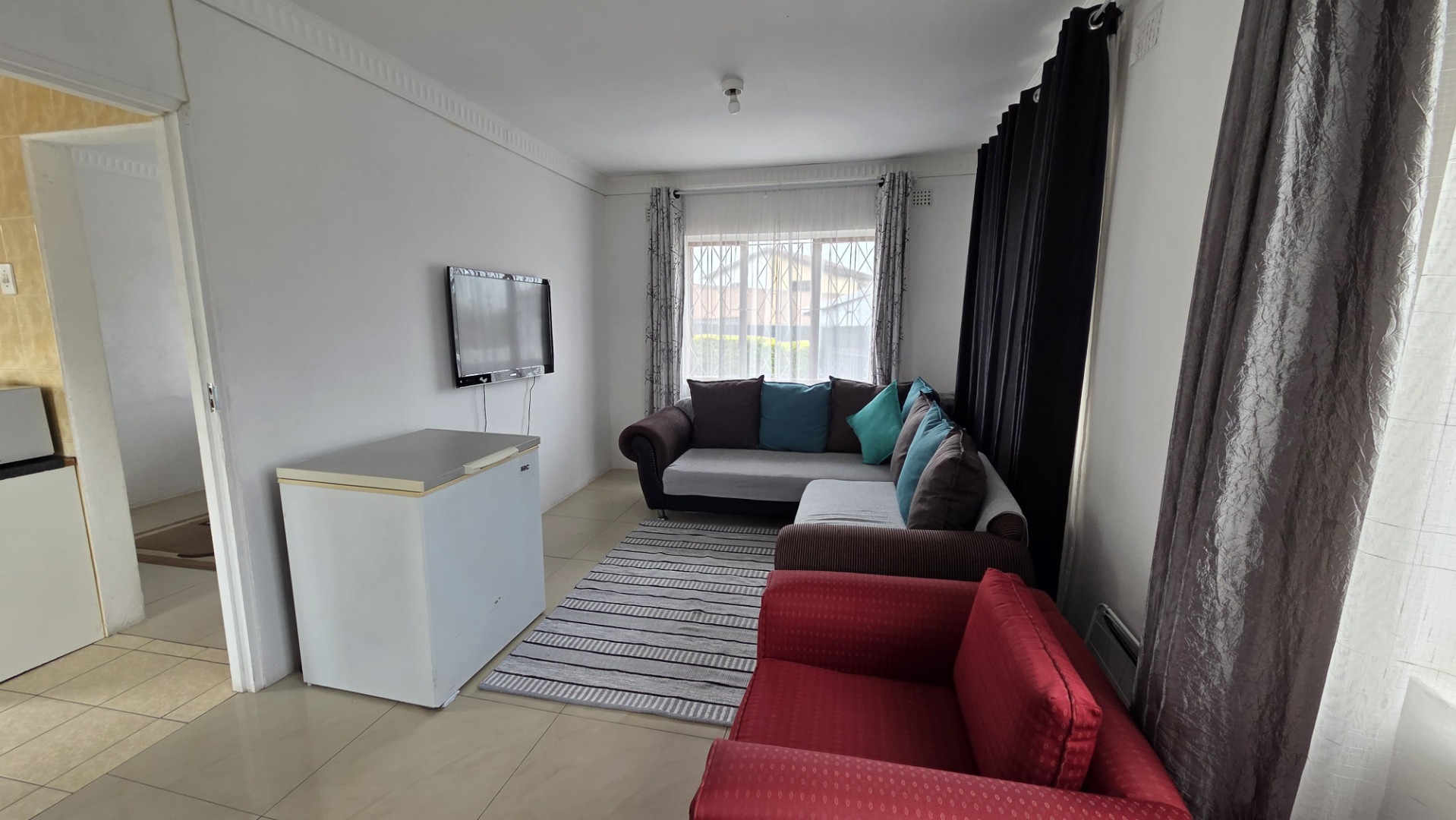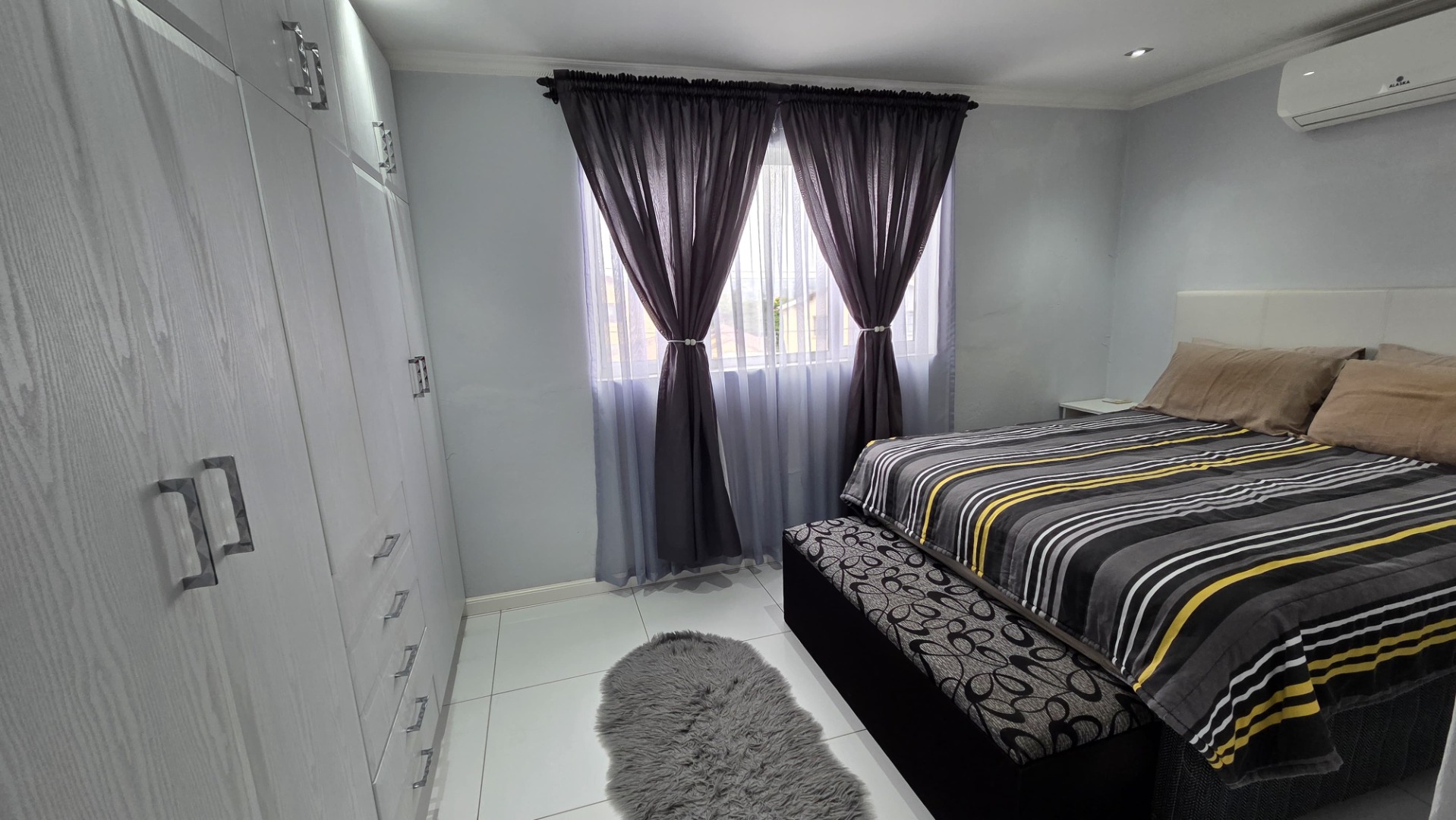 Discover this inviting three-bedroom, one-bathroom residence located in the established suburb of Woodhurst, Chatsworth. This property is designed with comfort, convenience and technology in mind, it has Google Home Integration allowing you to control the Tv Set and lighting effortlessly( Siri). The property presents a well-maintained exterior with a light grey facade, complemented by a paved forecourt and a neatly kept lawn with dark grey retaining walls. Security is a key feature, evident from the window bars, perimeter wall with security spikes, and a visible camera, ensuring peace of mind for residents. Ample paved area provides generous parking for up to 15 vehicles, alongside a convenient covered entrance.