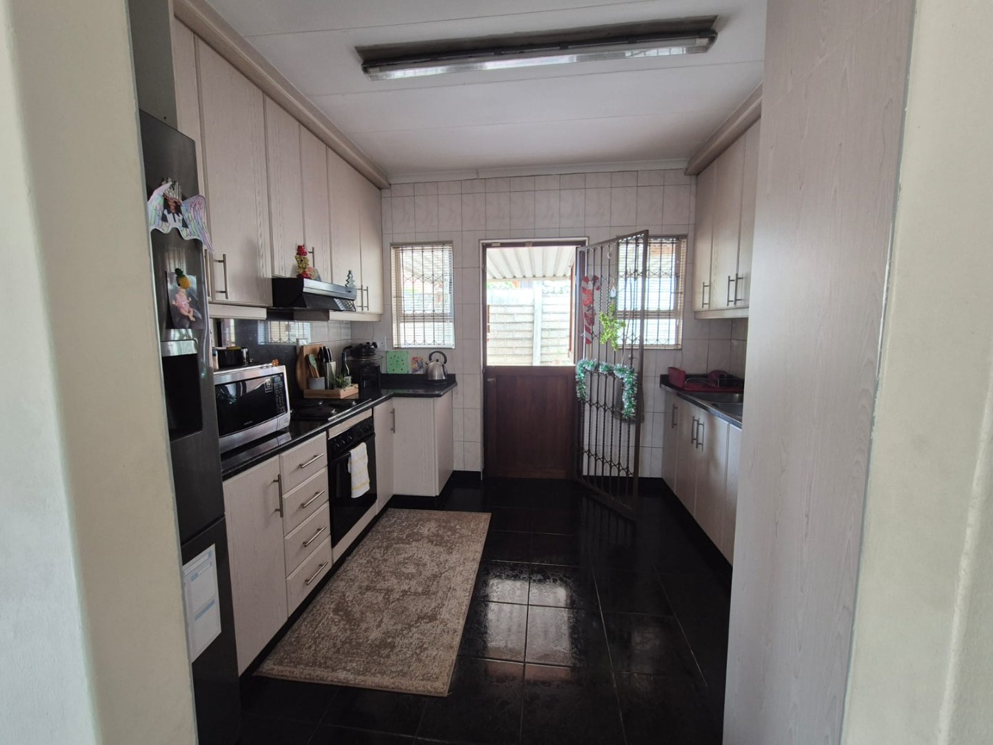 Step inside and you’ll find a comfortable, open-plan living and dining area that’s just perfect for chilling out or having friends over. The tiled flooring throughout makes for easy living, and there’s plenty of natural light streaming in. Plus, with air conditioning in the main living space and some bedrooms, you’ll stay cool and comfy all year round. The kitchen is a functional galley style, featuring light-toned cabinetry, dark countertops, making meal prep a breeze.