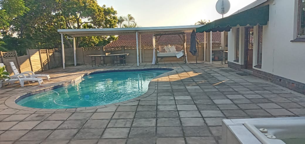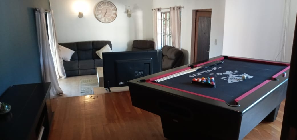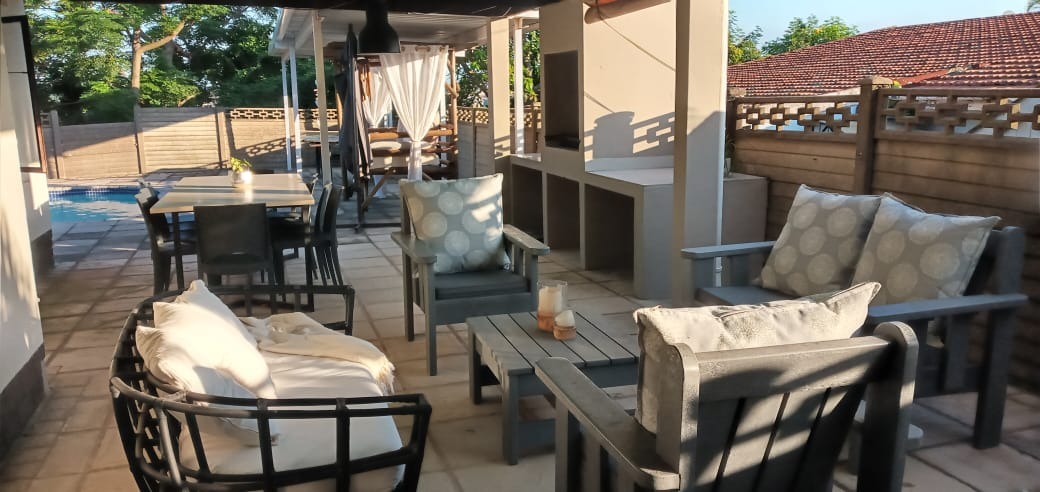 Step outside and enjoy a stunning entertainment area complete with a sparkling pool, jacuzzi, built-in braai, and a cozy fire pit with surrounding seating—perfect for hosting family and friends. The indoor bar flows seamlessly through French doors onto the pool area, enhancing the home’s entertainment appeal.