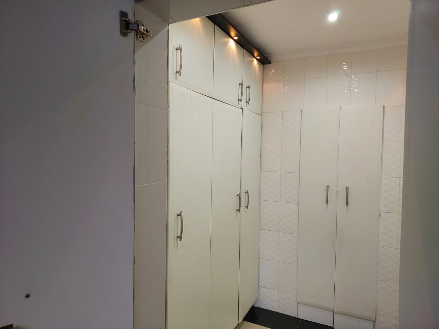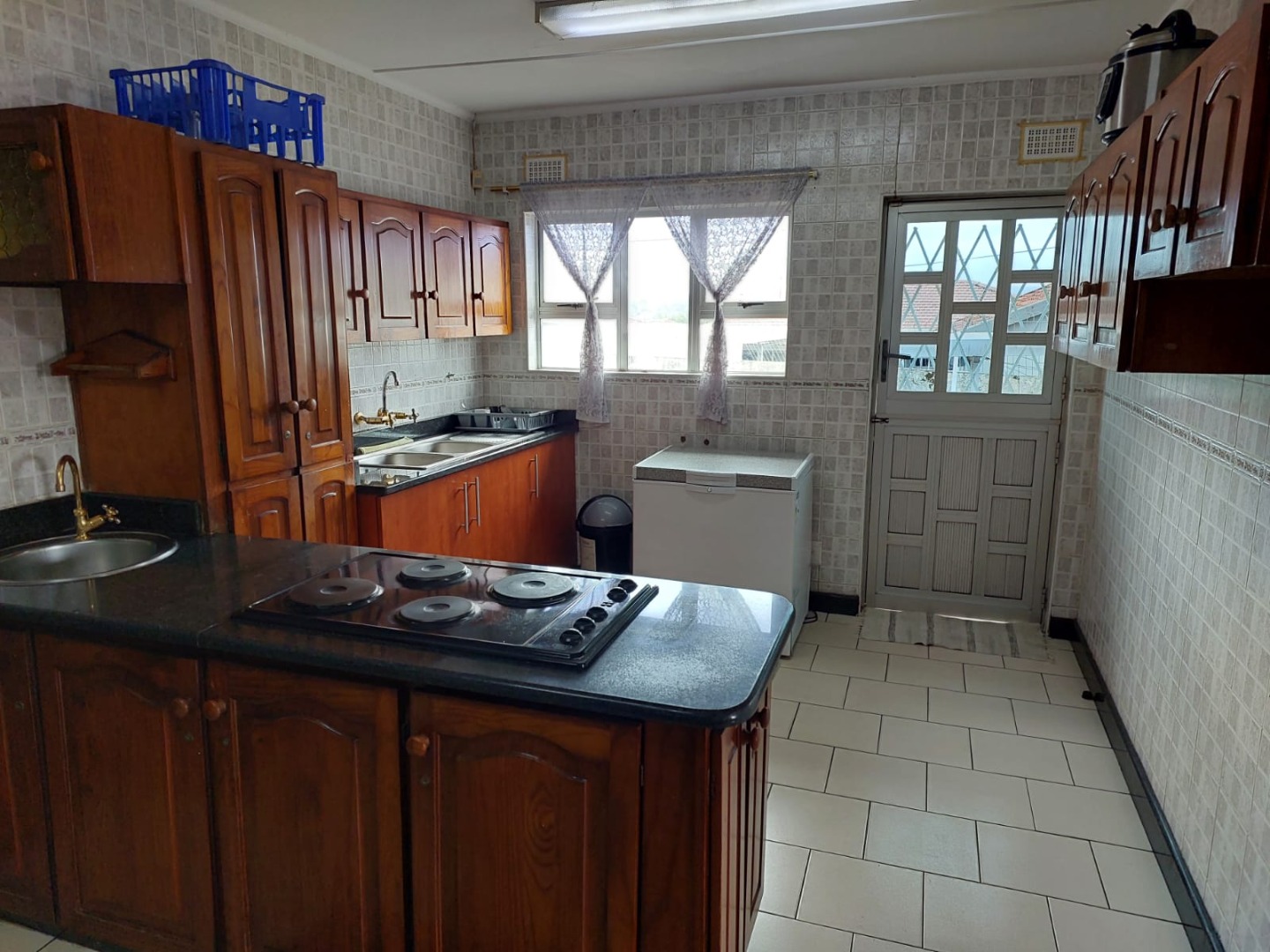 The fully fitted kitchen features ample cupboard space, flowing seamlessly into a spacious open-plan lounge and dining area — the ideal space for family gatherings. From your lounge, enjoy beautiful views overlooking the massive sparkling swimming pool, perfect for summer days in Durban.