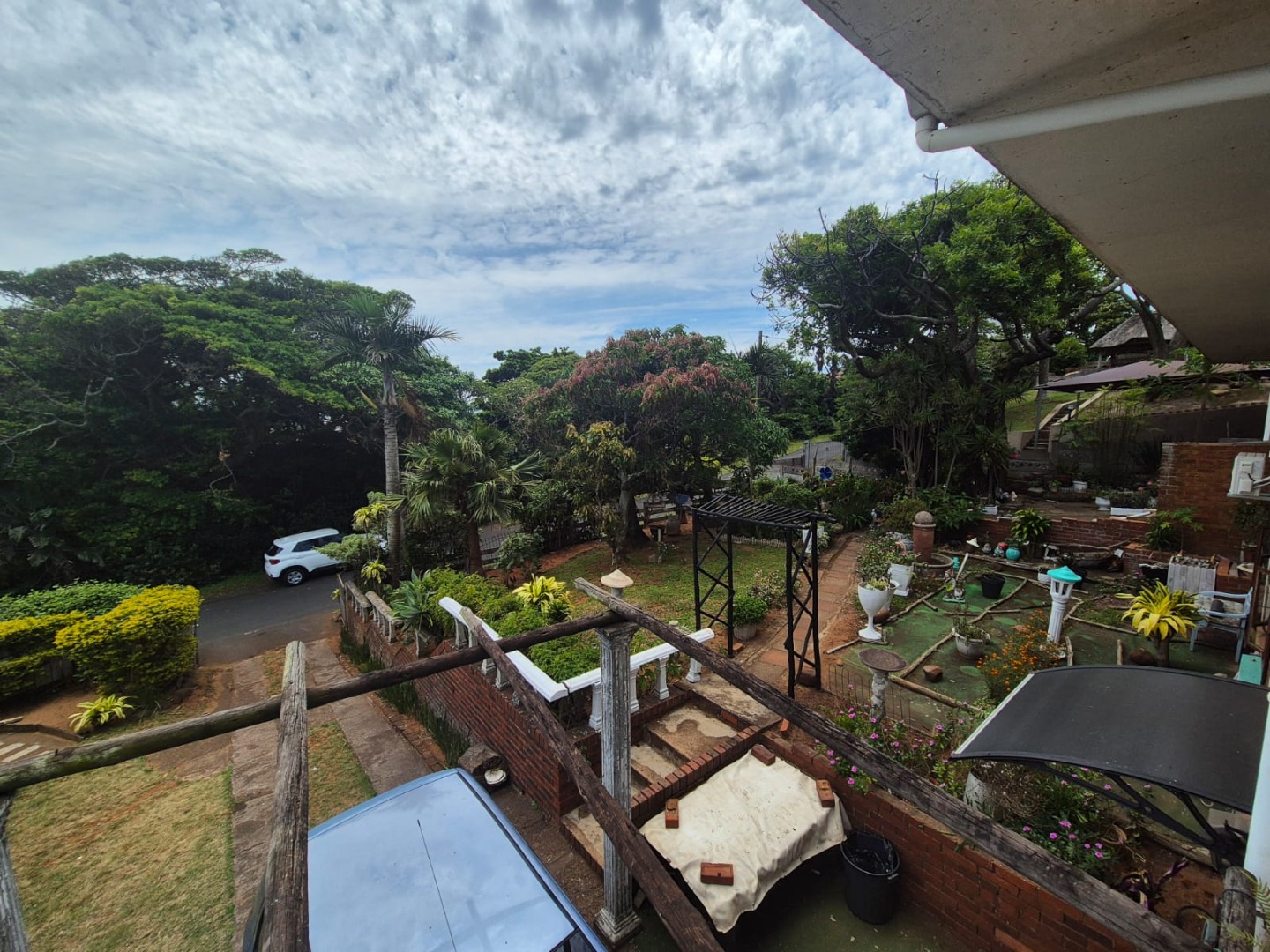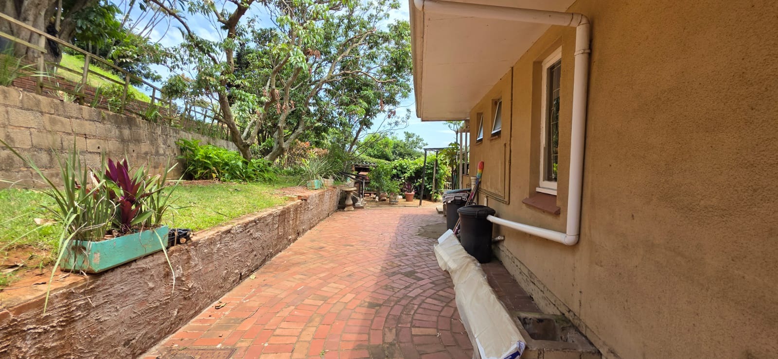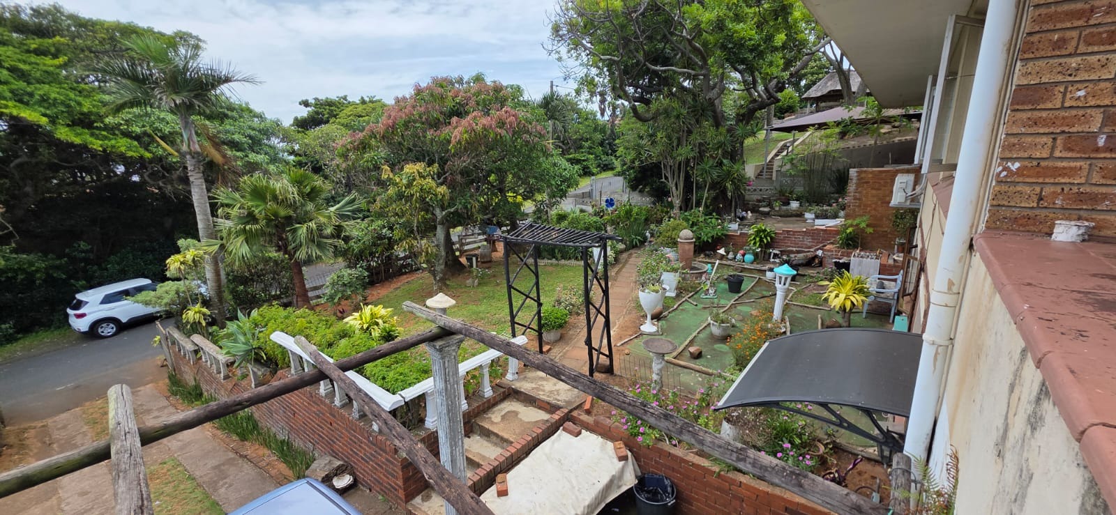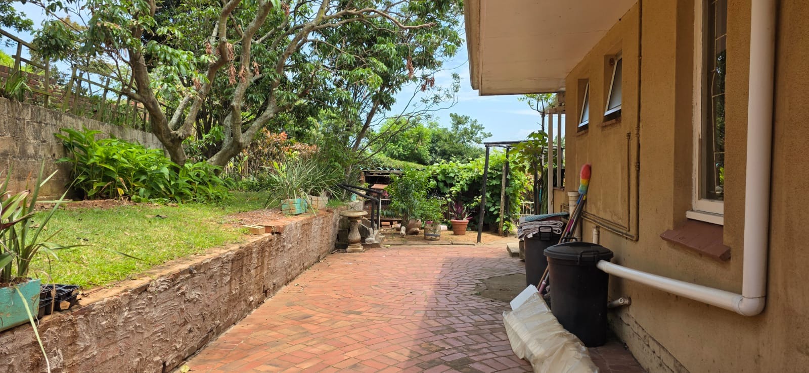 This two-story residential property in Bluff, Durban, presents a compelling opportunity for those seeking a family home with significant potential for modernisation. The exterior features a classic brick and light-colored facade, complemented by an established garden and an outdoor pergola structure, offering a solid foundation for aesthetic enhancements. While the current appearance suggests a need for updates, the property's inherent structure and generous layout provide a blank canvas for renovation.