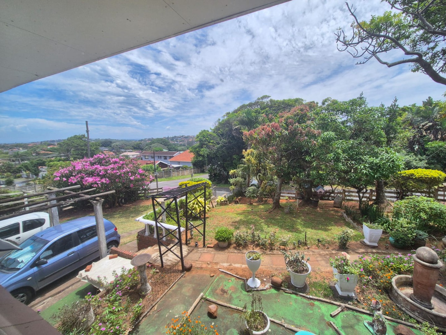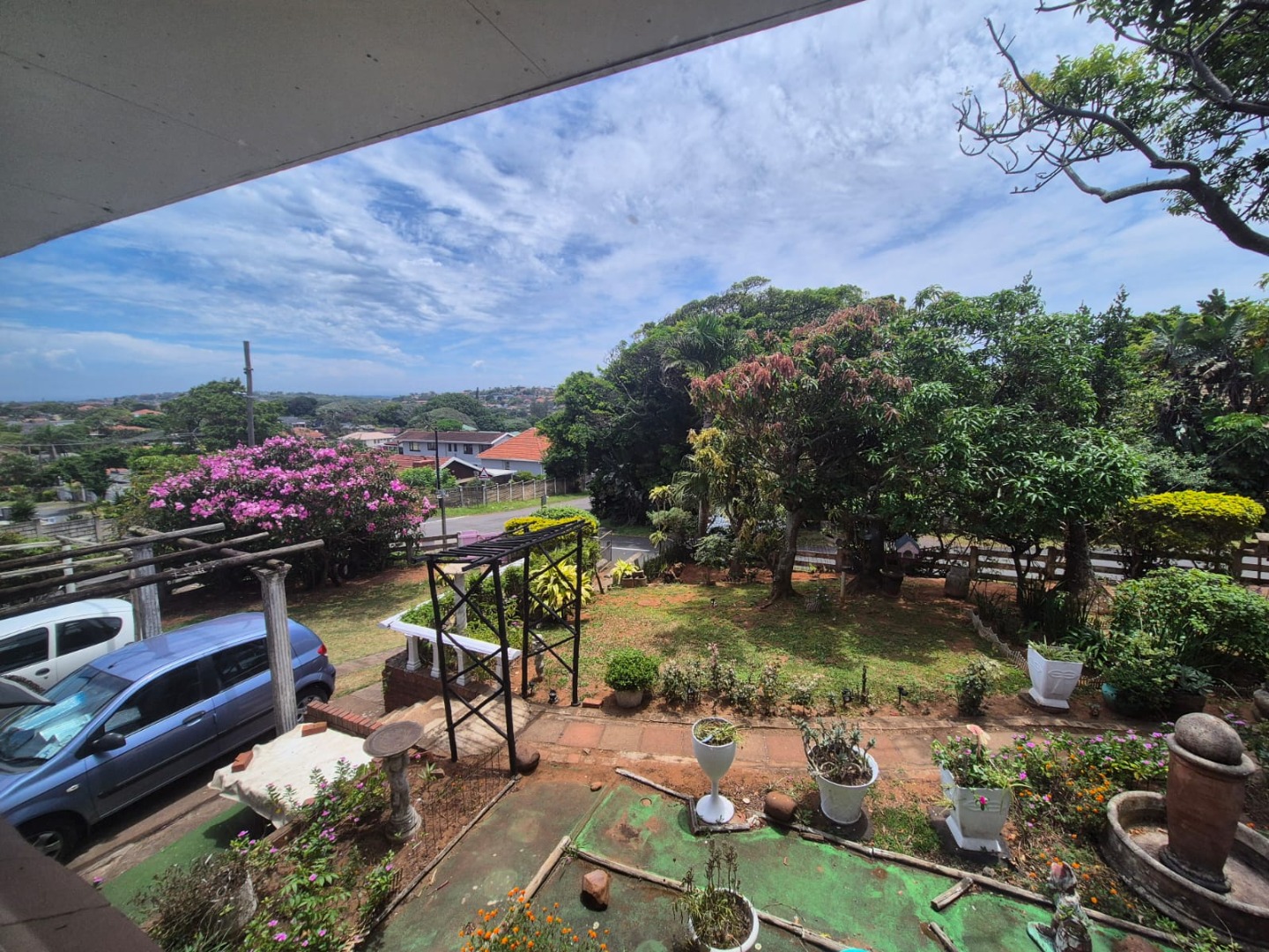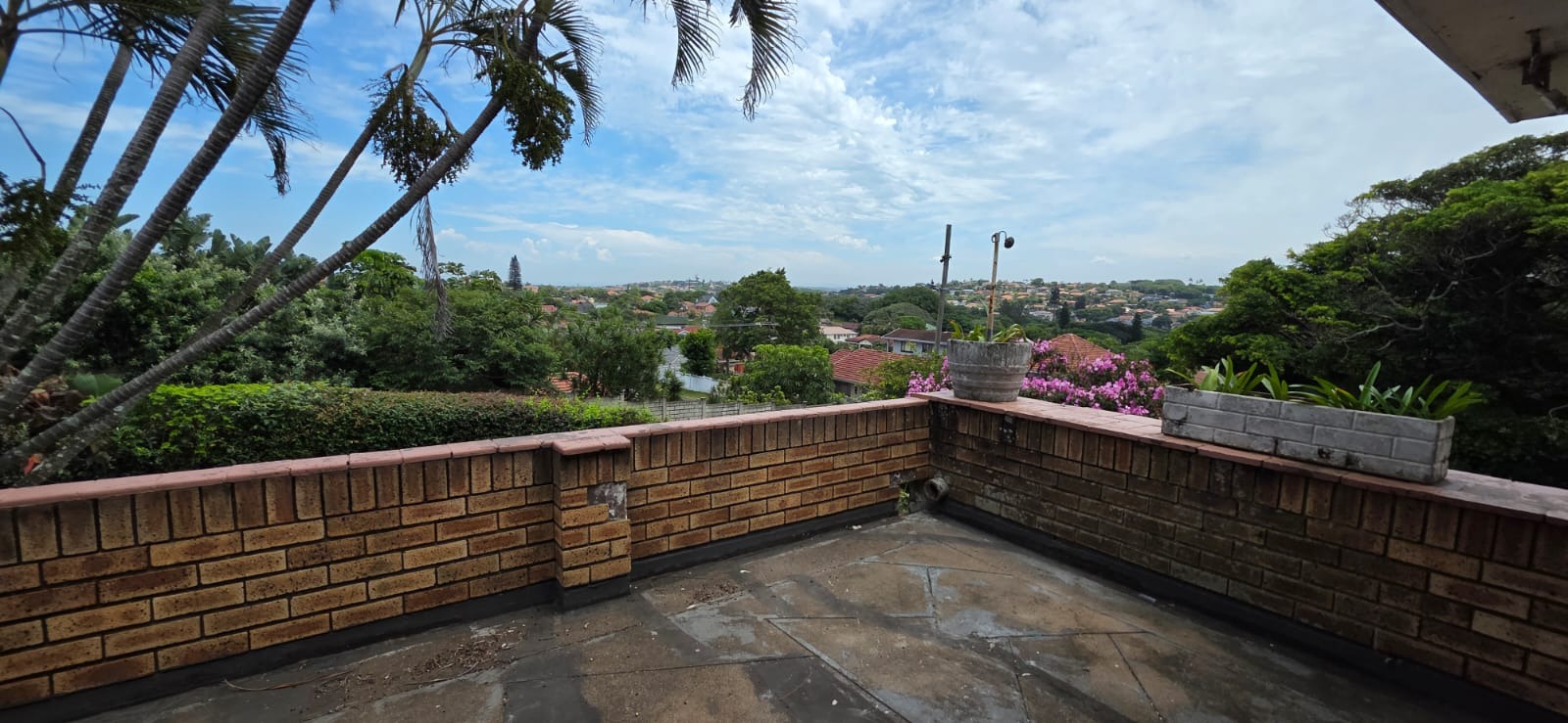 This two-story residential property in Bluff, Durban, presents a compelling opportunity for those seeking a family home with significant potential for modernisation. The exterior features a classic brick and light-colored facade, complemented by an established garden and an outdoor pergola structure, offering a solid foundation for aesthetic enhancements. While the current appearance suggests a need for updates, the property's inherent structure and generous layout provide a blank canvas for renovation.