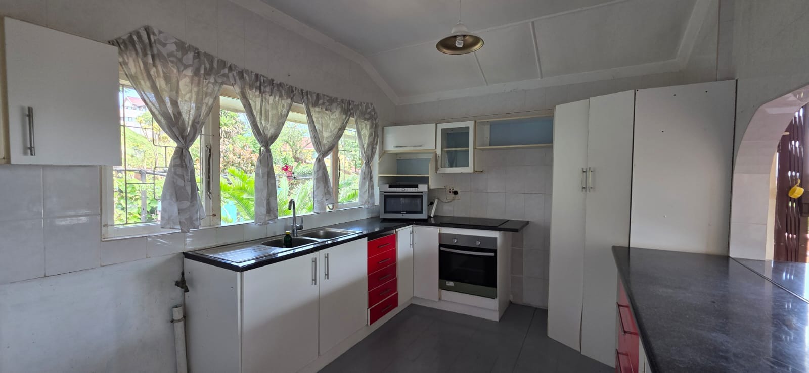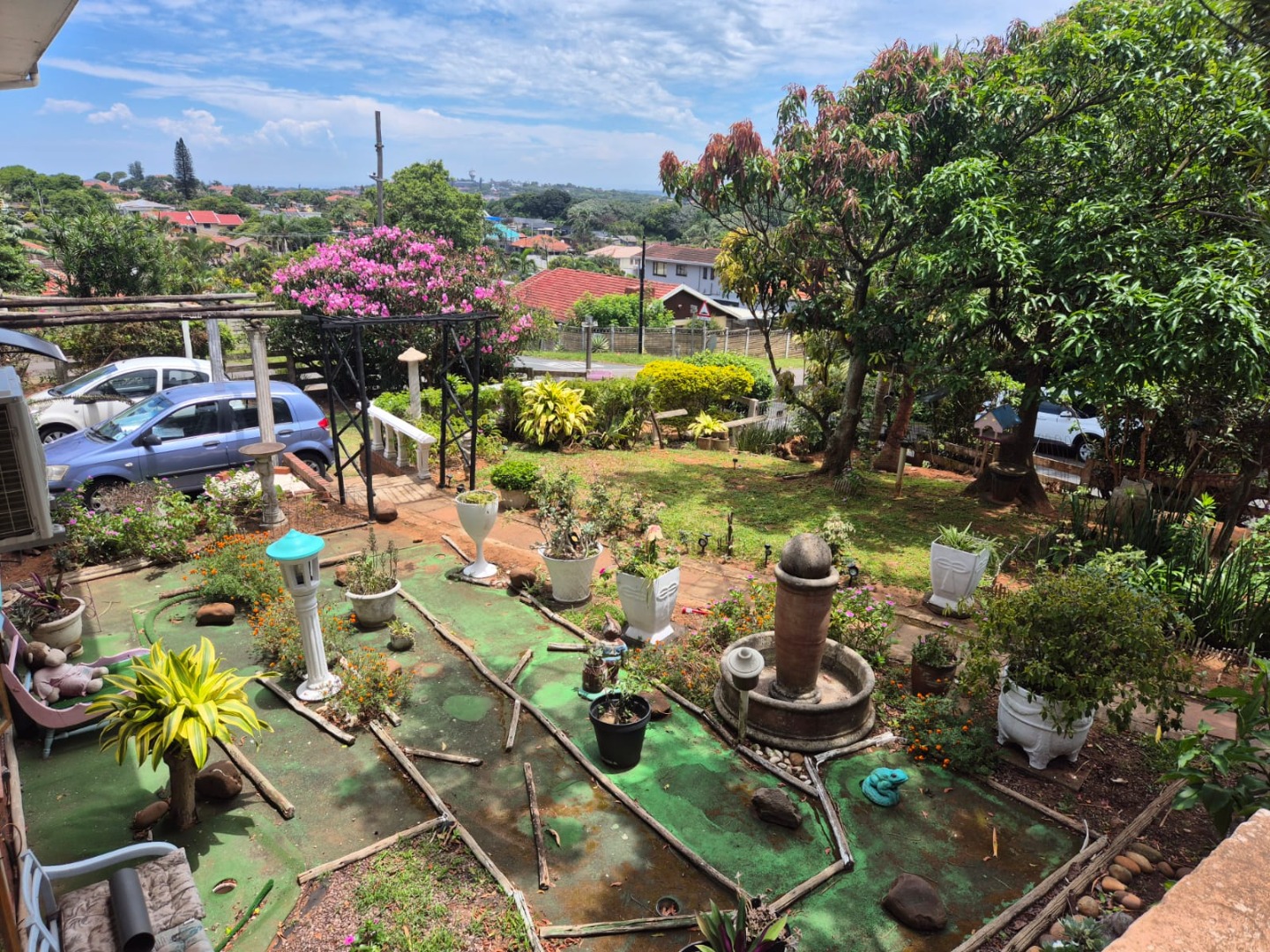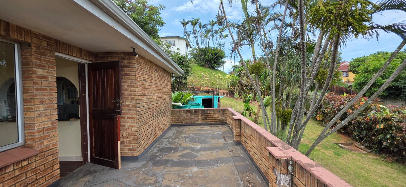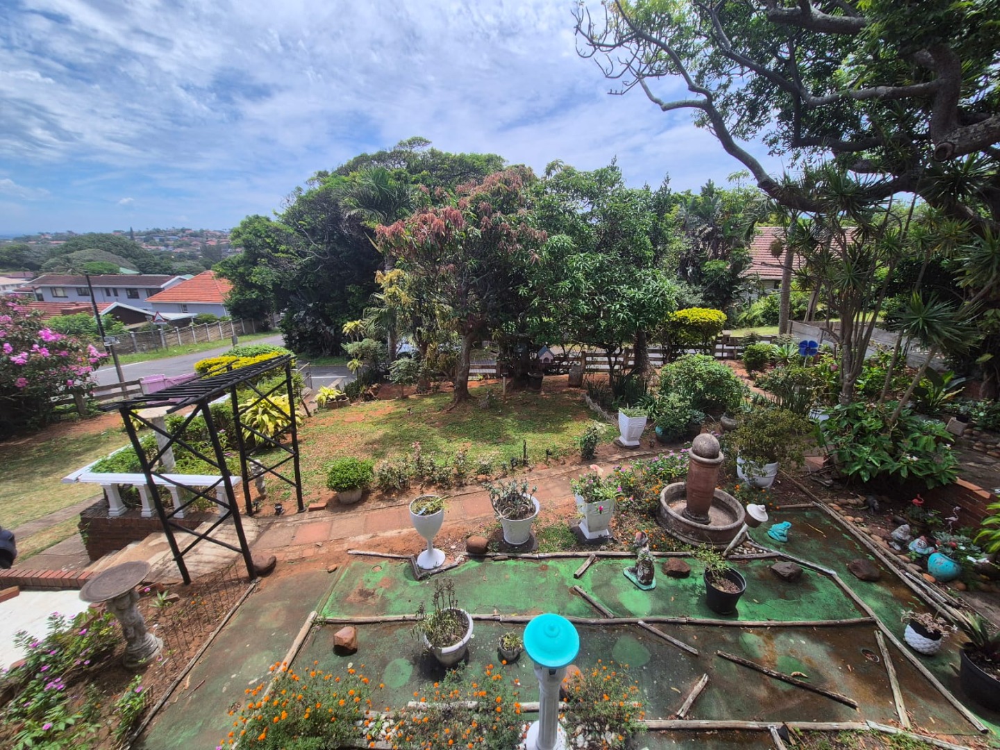 This two-story residential property in Bluff, Durban, presents a compelling opportunity for those seeking a family home with significant potential for modernisation. The exterior features a classic brick and light-colored facade, complemented by an established garden and an outdoor pergola structure, offering a solid foundation for aesthetic enhancements. While the current appearance suggests a need for updates, the property's inherent structure and generous layout provide a blank canvas for renovation.