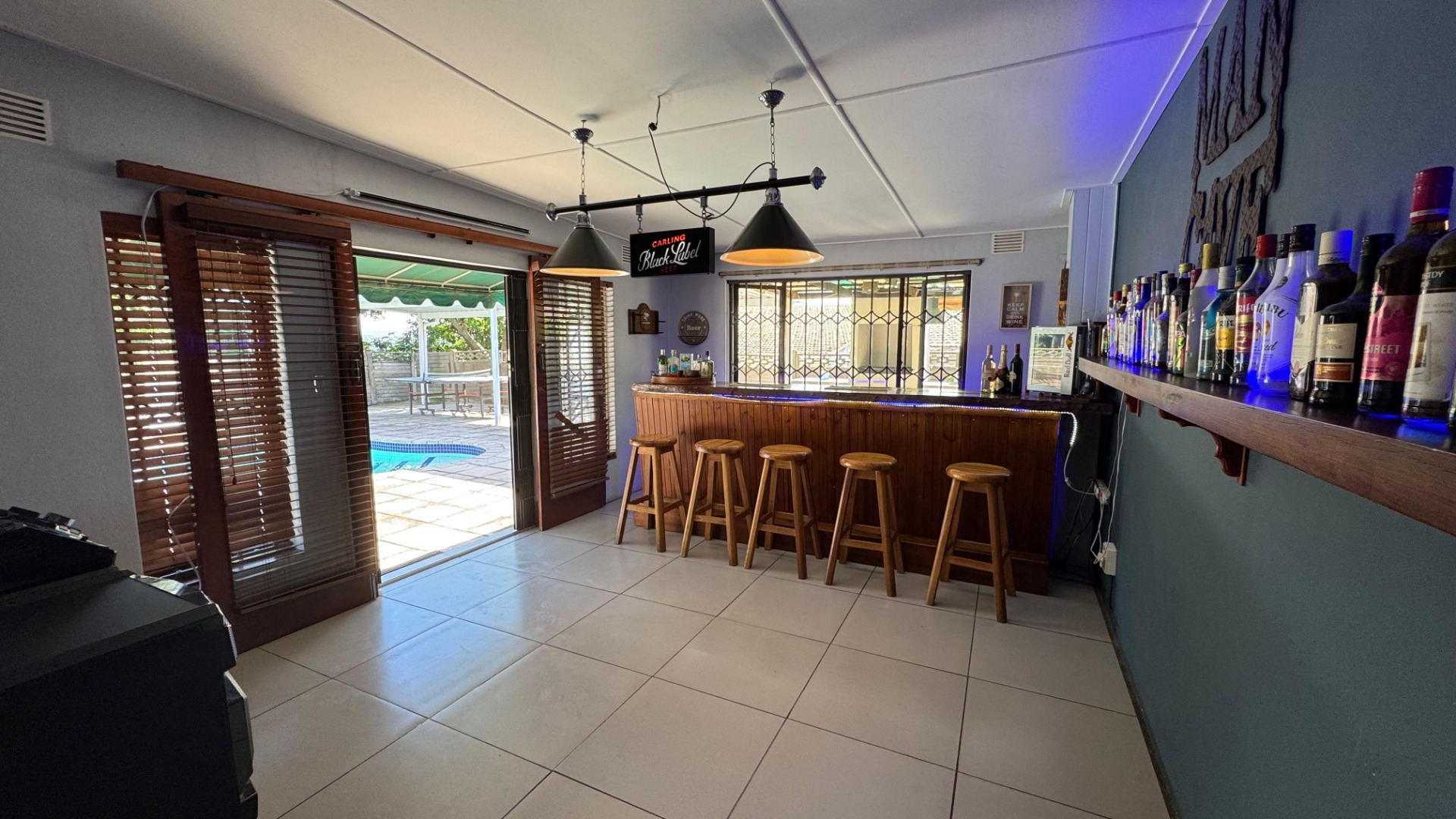 Step outside and enjoy a stunning entertainment area complete with a sparkling pool, jacuzzi, built-in braai, and a cozy fire pit with surrounding seating—perfect for hosting family and friends. The indoor bar flows seamlessly through French doors onto the pool area, enhancing the home’s entertainment appeal.