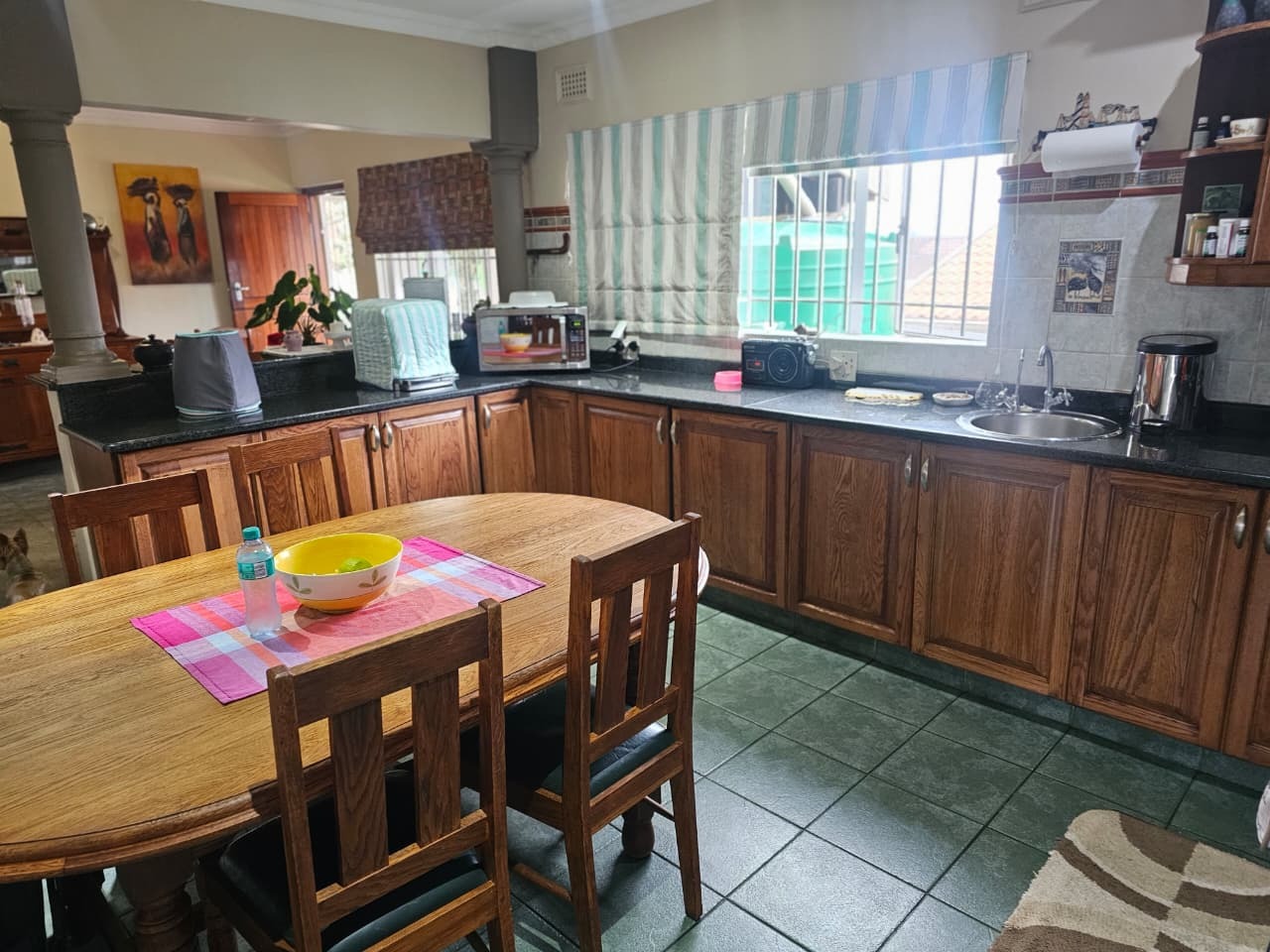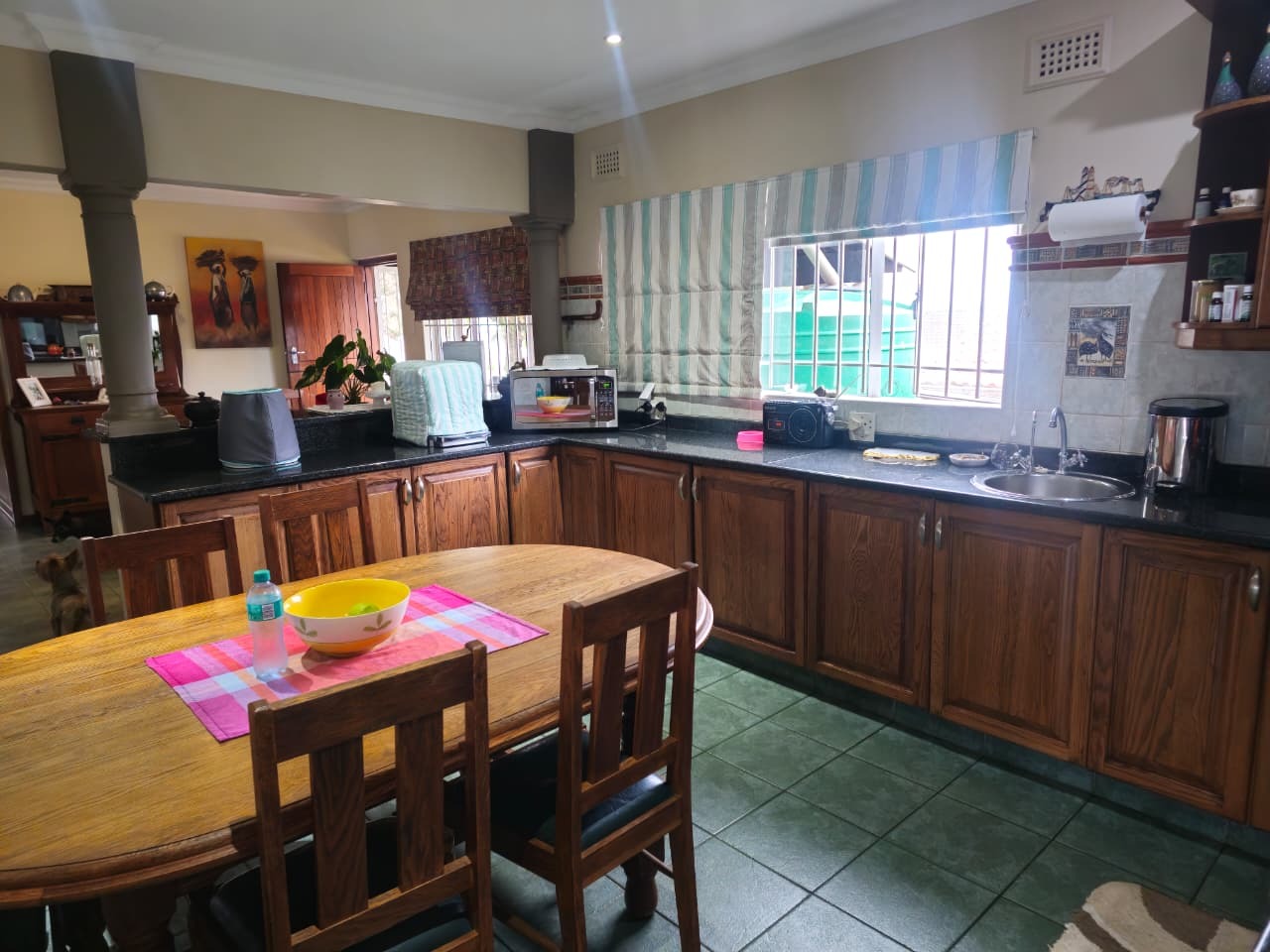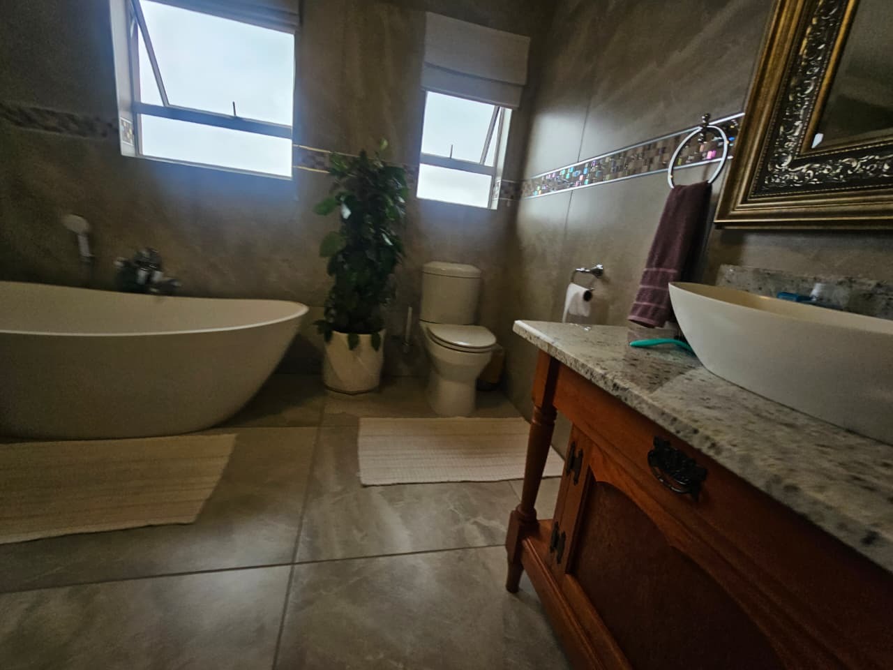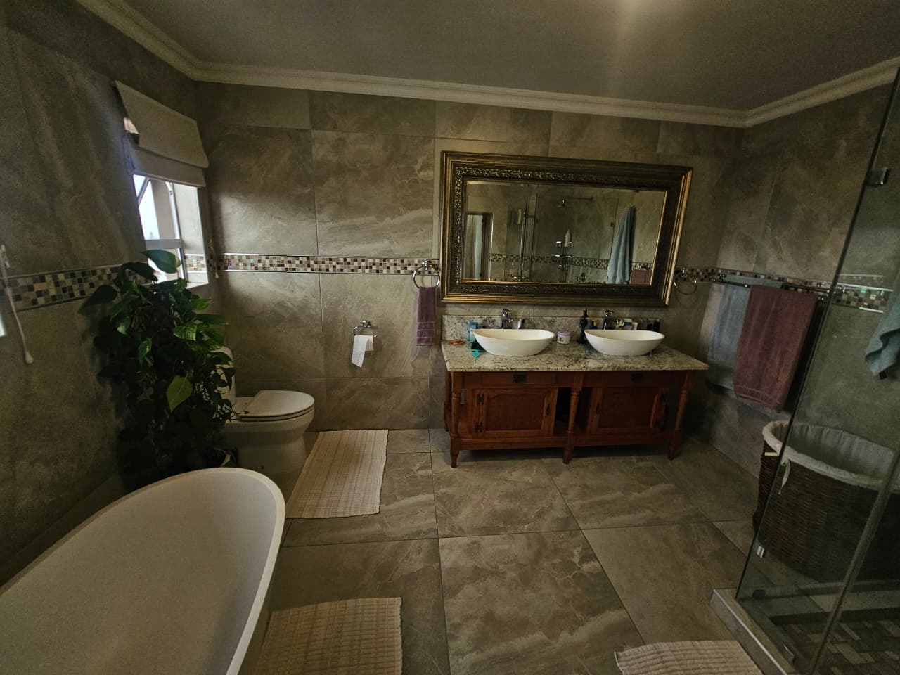 The ground floor features two relaxing lounges—one with a cosy built-in braai—opening onto a covered patio, manicured garden, and sparkling pool framed by lovely sea views. The dining area also opens outdoors, while the well-equipped kitchen with gas hob, oven, extractor, plenty of storage, and a scullery makes everyday living wonderfully convenient. Three bright bedrooms and a full family bathroom complete the downstairs.