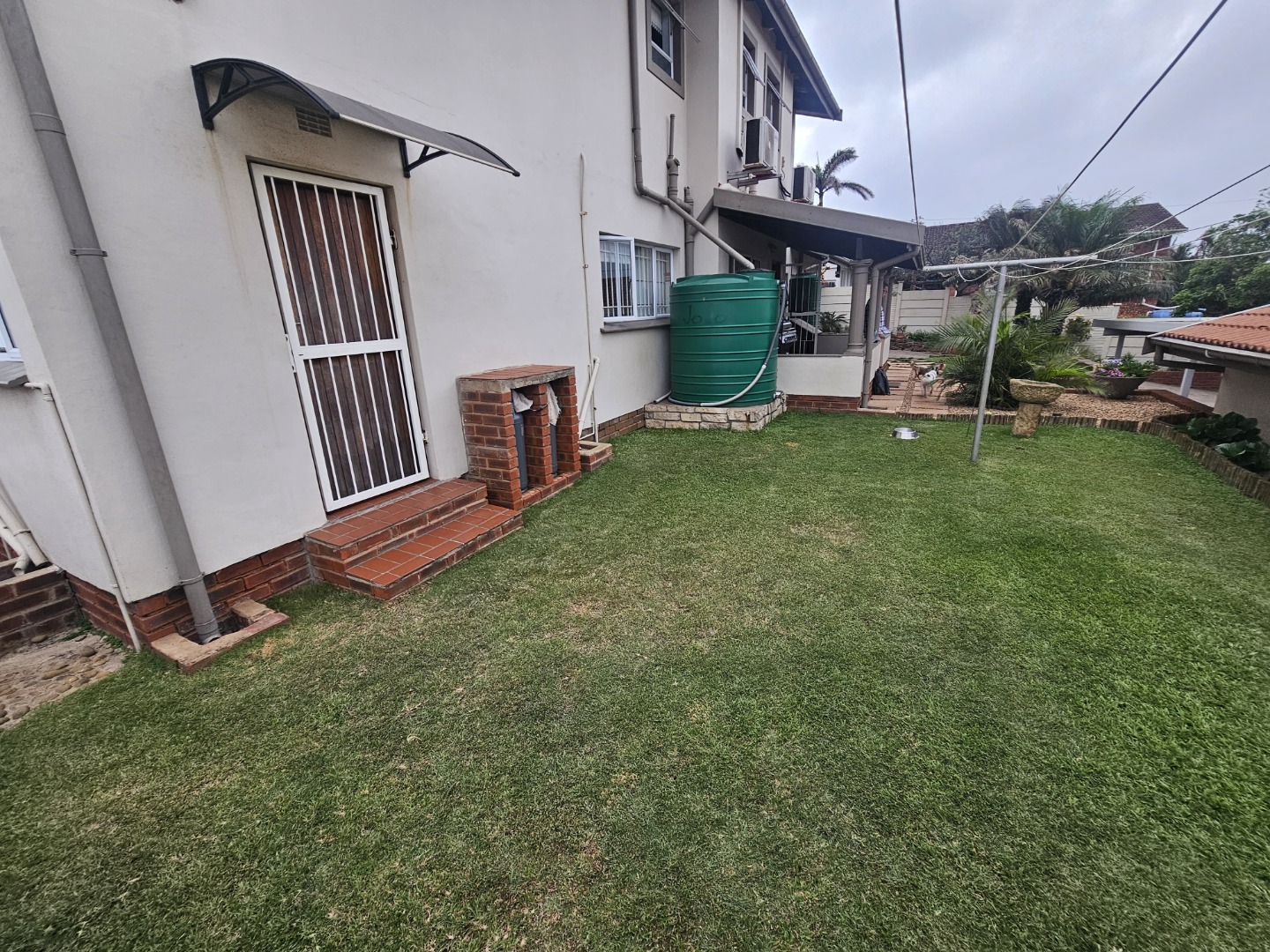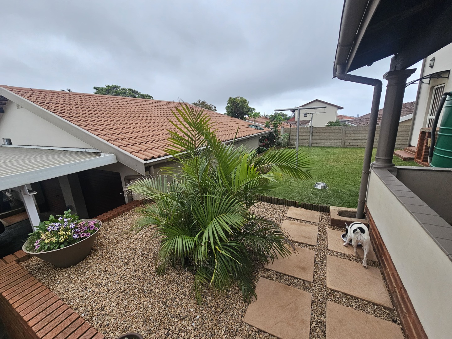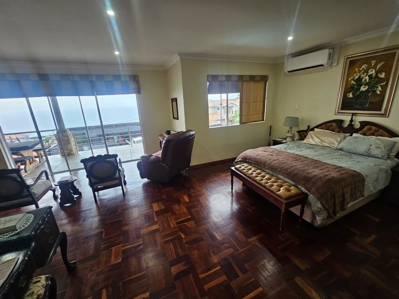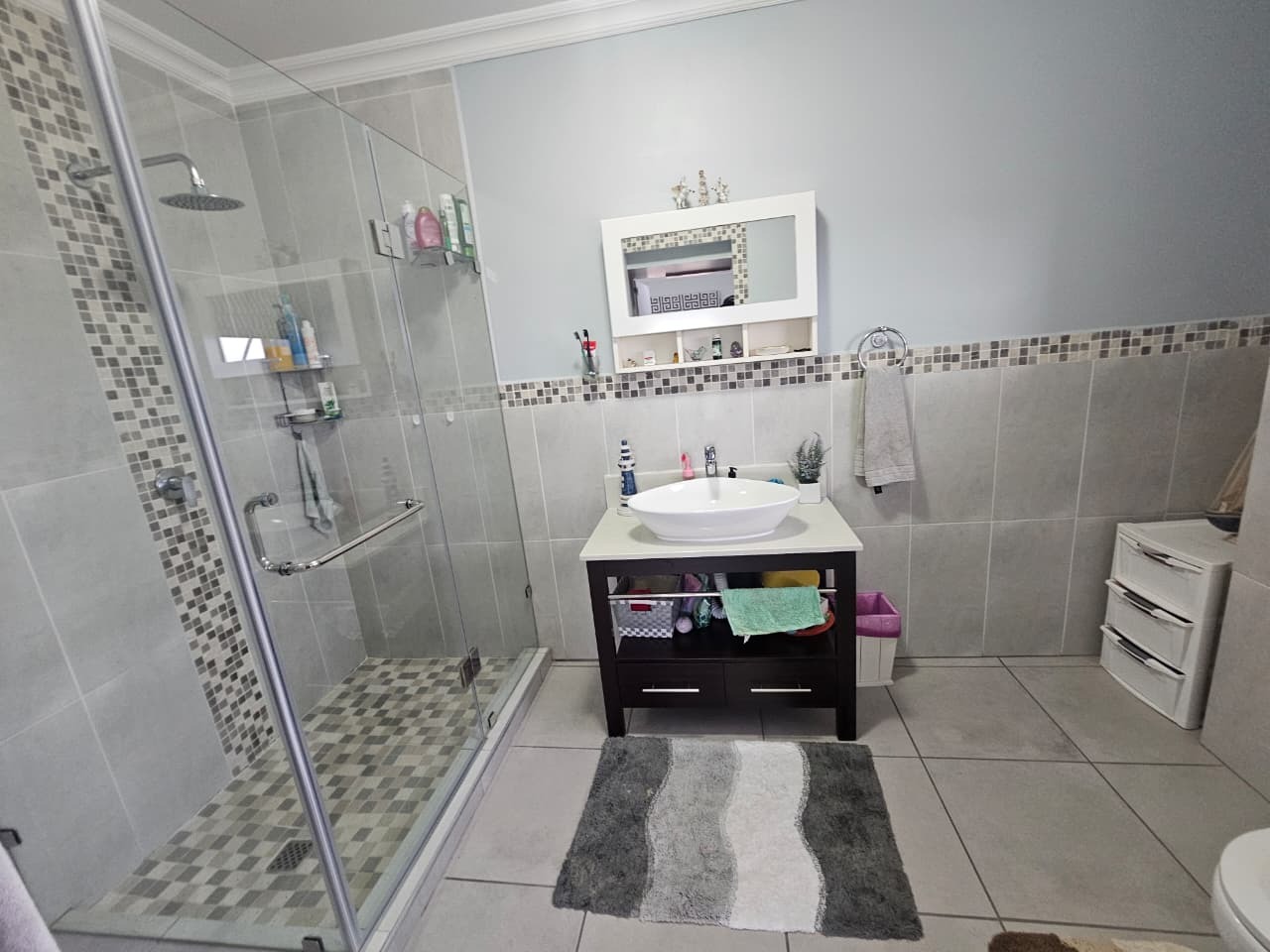 The ground floor features two relaxing lounges—one with a cosy built-in braai—opening onto a covered patio, manicured garden, and sparkling pool framed by lovely sea views. The dining area also opens outdoors, while the well-equipped kitchen with gas hob, oven, extractor, plenty of storage, and a scullery makes everyday living wonderfully convenient. Three bright bedrooms and a full family bathroom complete the downstairs.