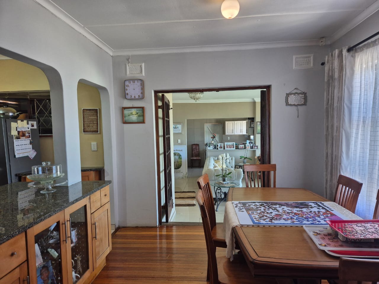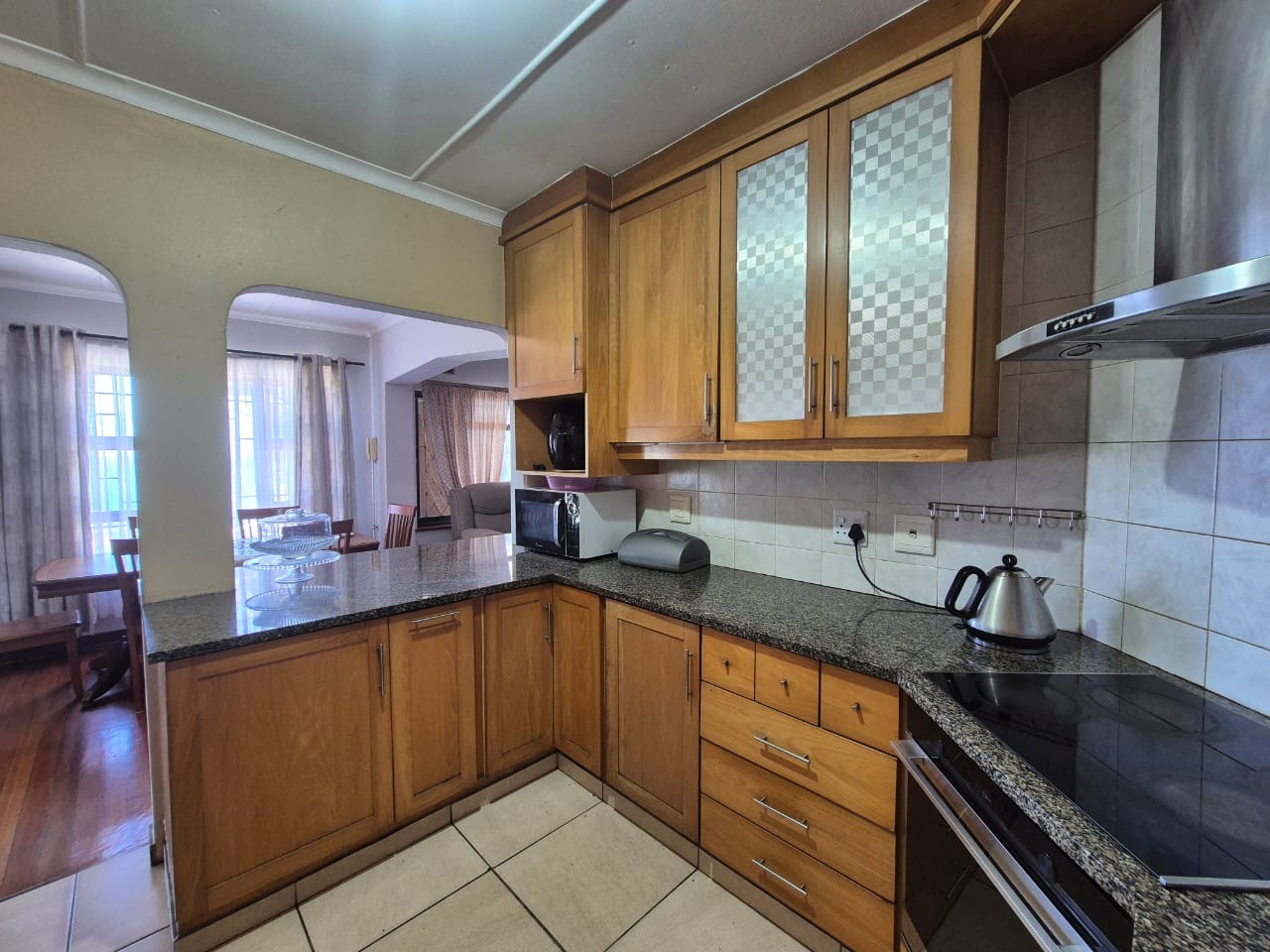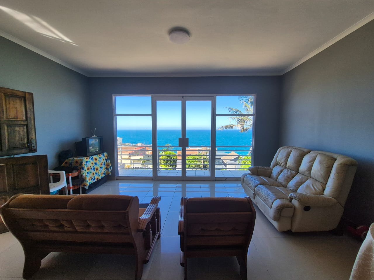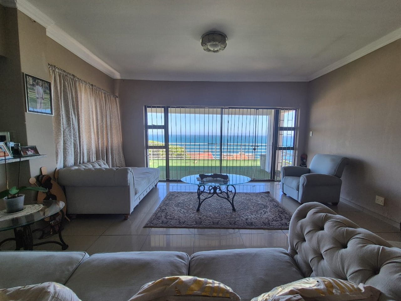 Bluff, a sought-after coastal suburb in Durban, South Africa, offers a desirable lifestyle with convenient access to amenities and the ocean. This property boasts a modern exterior with a fresh grey paint scheme and white trim. A bright tiled outdoor terrace, complete with a sturdy metal railing, provides an inviting space to enjoy clear skies and tropical landscaping. Step inside to discover a spacious lounge, bathed in natural light and offering breathtaking panoramic ocean views through expansive openings and large sliding glass doors. Tiled flooring flows throughout, leading to an open-plan dining area. The functional kitchen features ample wooden cabinetry, durable granite countertops, a built-in hob and oven, plus a modern stainless steel extractor fan, connecting seamlessly to adjacent living spaces. The residence comprises four comfortable bedrooms and two well-appointed bathrooms. Several bedrooms offer direct outdoor access via large glass sliding doors. Some feature open-plan en-suite bathrooms, complete with a corner bathtub or a luxurious jacuzzi tub and separate shower, providing private retreats. The expansive outdoor patio is ideal for entertaining or unwinding while soaking in stunning ocean vistas. With an impressive six garages, this property provides abundant secure parking and extensive storage on its generous 1141 sqm erf. Pets are allowed, and the property is fenced. Key Features: * 4 Bedrooms, 2 Bathrooms * Panoramic Ocean Views * Spacious Lounge and Dining Areas * Functional Kitchen with Granite Countertops * Expansive Outdoor Patio * Six Garages * Generous 1141 sqm Erf * Pet-Friendly and Fenced Property
