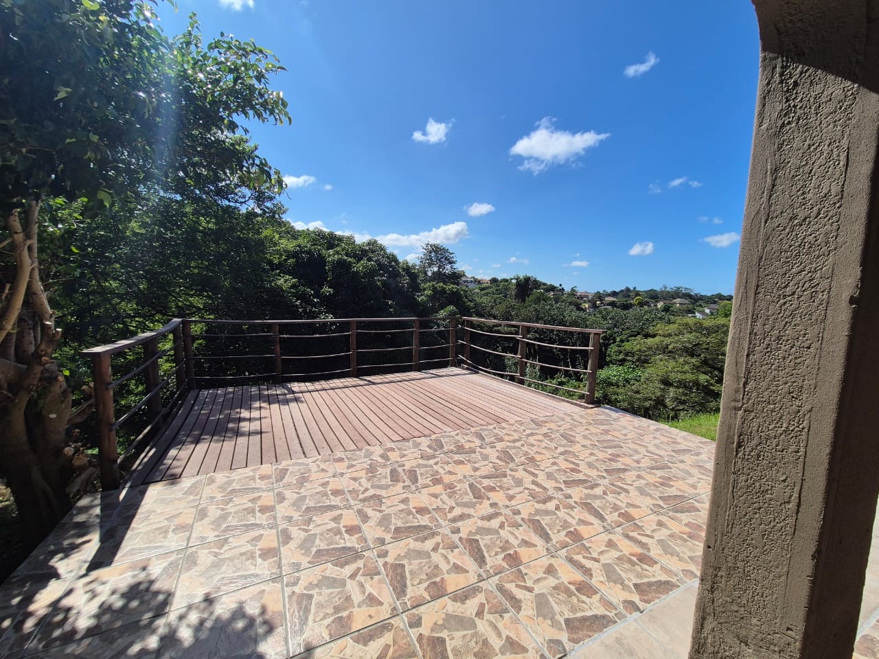 The well-designed kitchen offers ample cupboard space, a gas hob for efficient cooking, an extractor fan and plumbing in place for a dishwasher, making everyday living both practical and convenient. The open and welcoming lounge flows seamlessly onto a deck and braai area, creating the perfect space for entertaining or simply relaxing while enjoying the soothing sounds of birdlife and the tranquility of nature. Outside is a small laundry and shower .