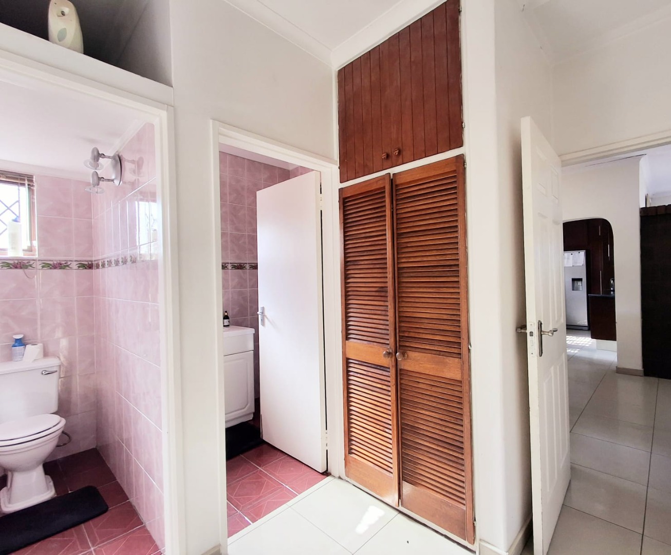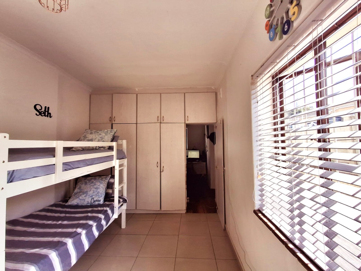 The second bedroom is strategically coordinated with matching blinds and cupboards and is directly across the family bathroom for ease of convenience. A separate guest toilet allows for privacy from the main bathroom. The third bedroom includes a walk-in study with sufficient cupboards and a fitted dressing table.