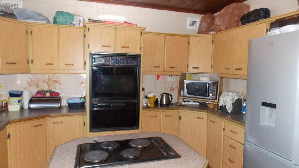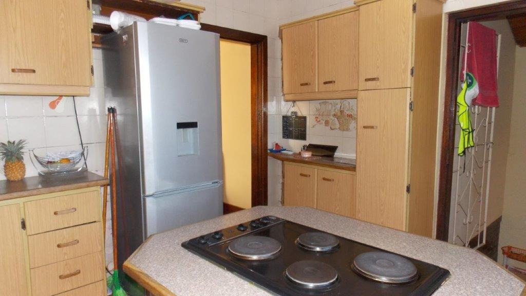 The upper level of this well-loved home features a thoughtfully designed layout with a prayer room, a welcoming lounge, and a dining room that flows into a fully fitted kitchen. At its heart, the kitchen boasts a center island hob and an eye-level oven, surrounded by ample cupboard space to satisfy the needs of any home chef. Discover two cozy bedrooms with built-in cupboards and a recently renovated bathroom adorned with contemporary fittings. With a mix of parquet and ceramic tiles, each room exudes warmth and style.