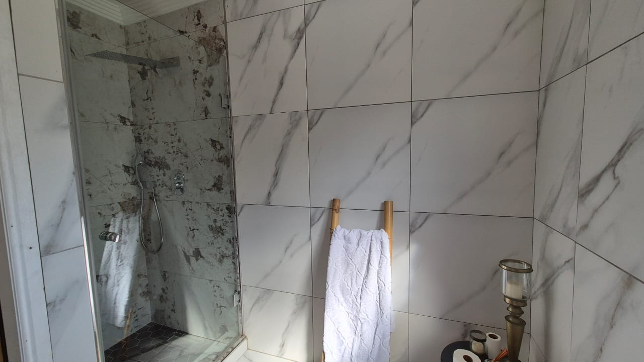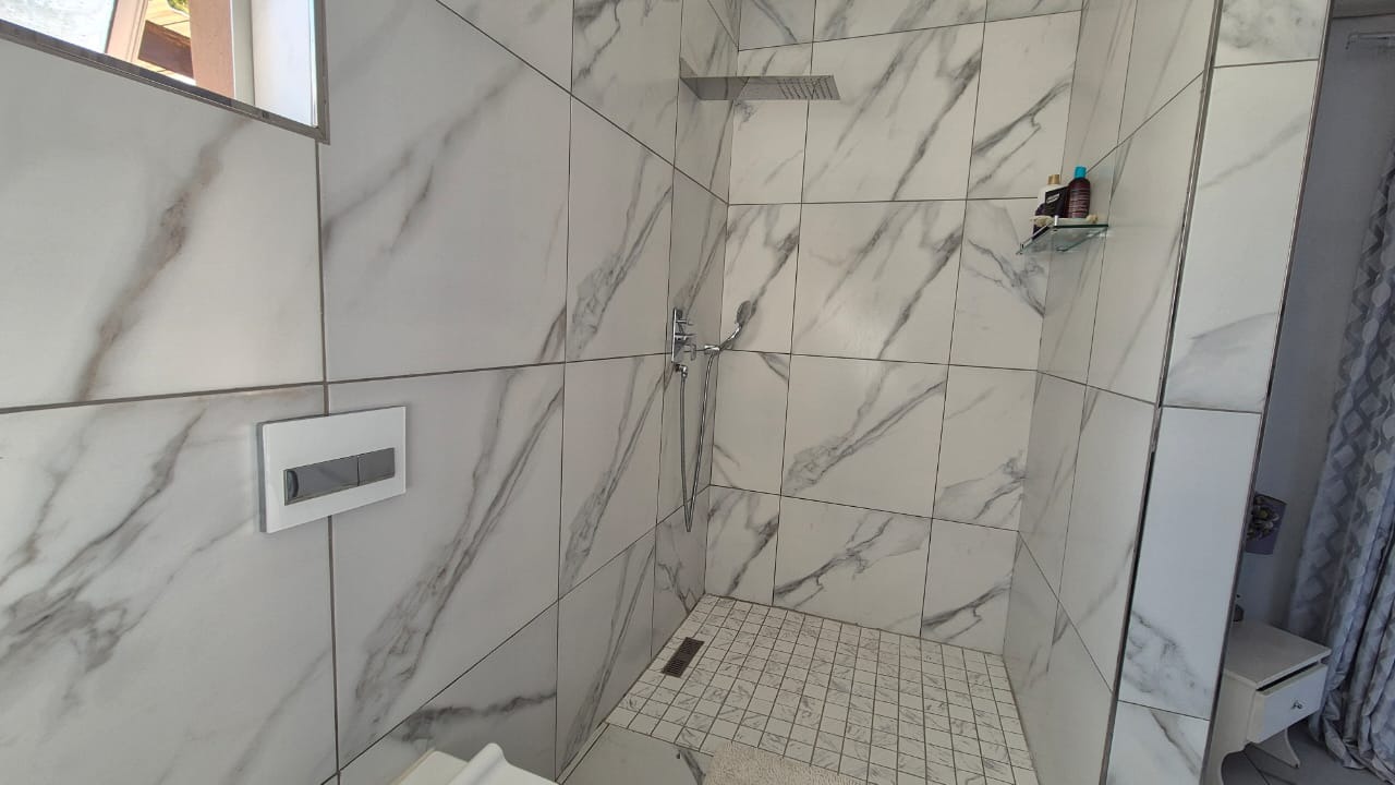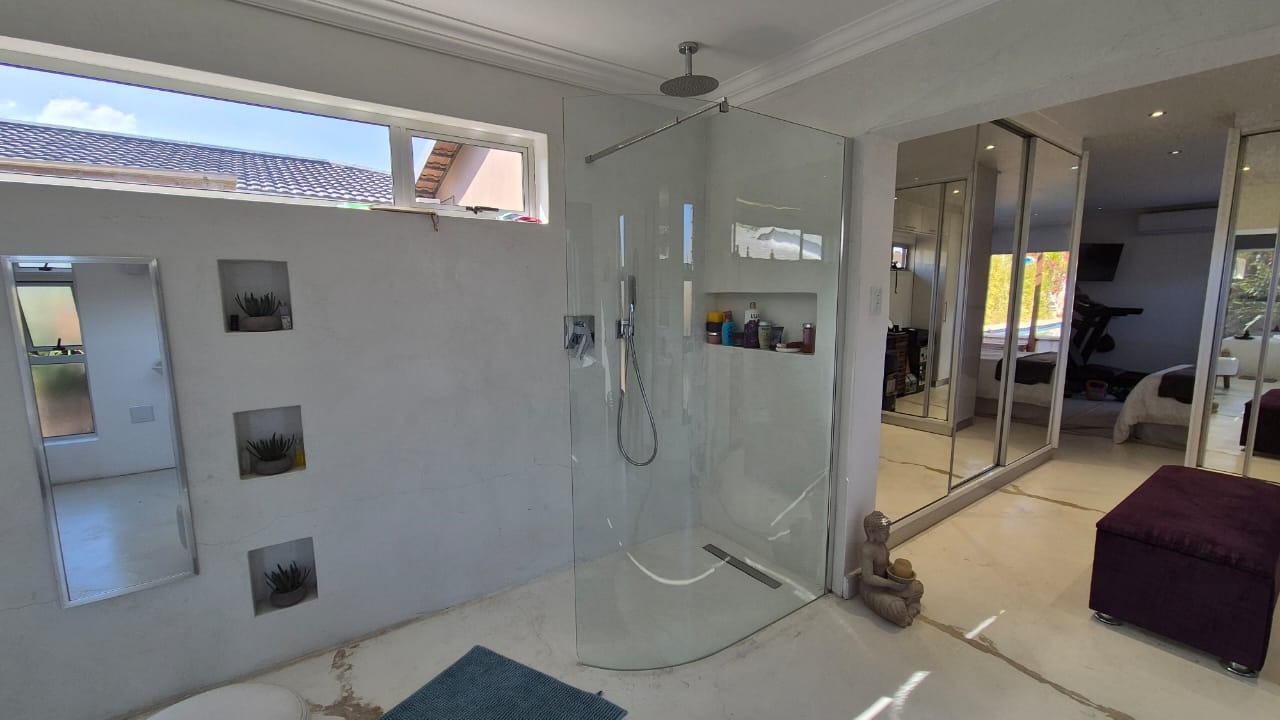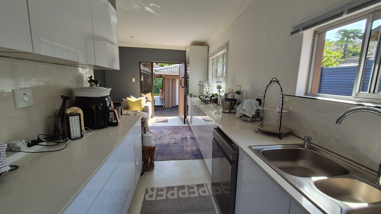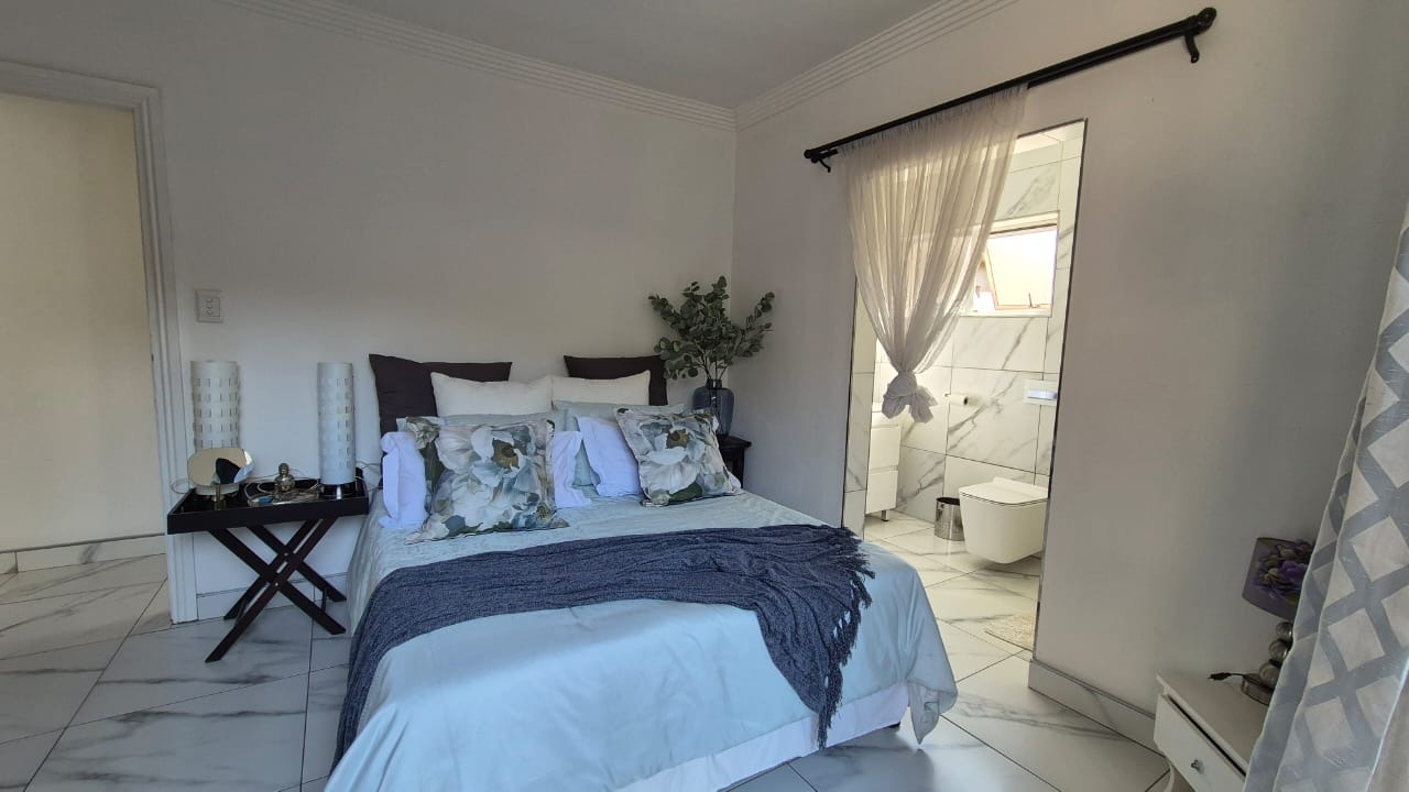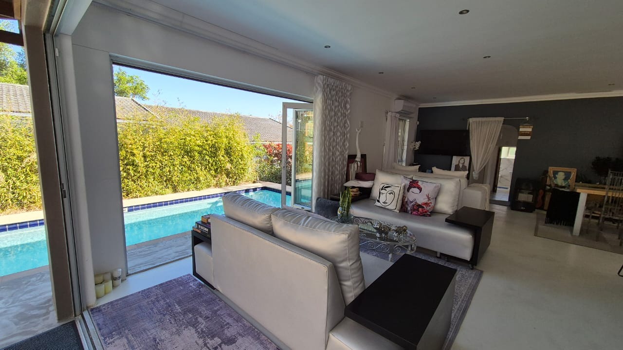 The double garage is an impressive 48sqm with automated door, plus a sliding door to the side opening onto a verandah — ideal for an entertainment room or easily converted into a flatlet. The back garden is level, perfect for green-fingered enthusiasts or a safe play haven for children.