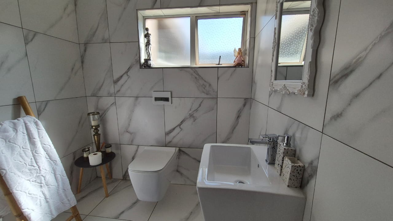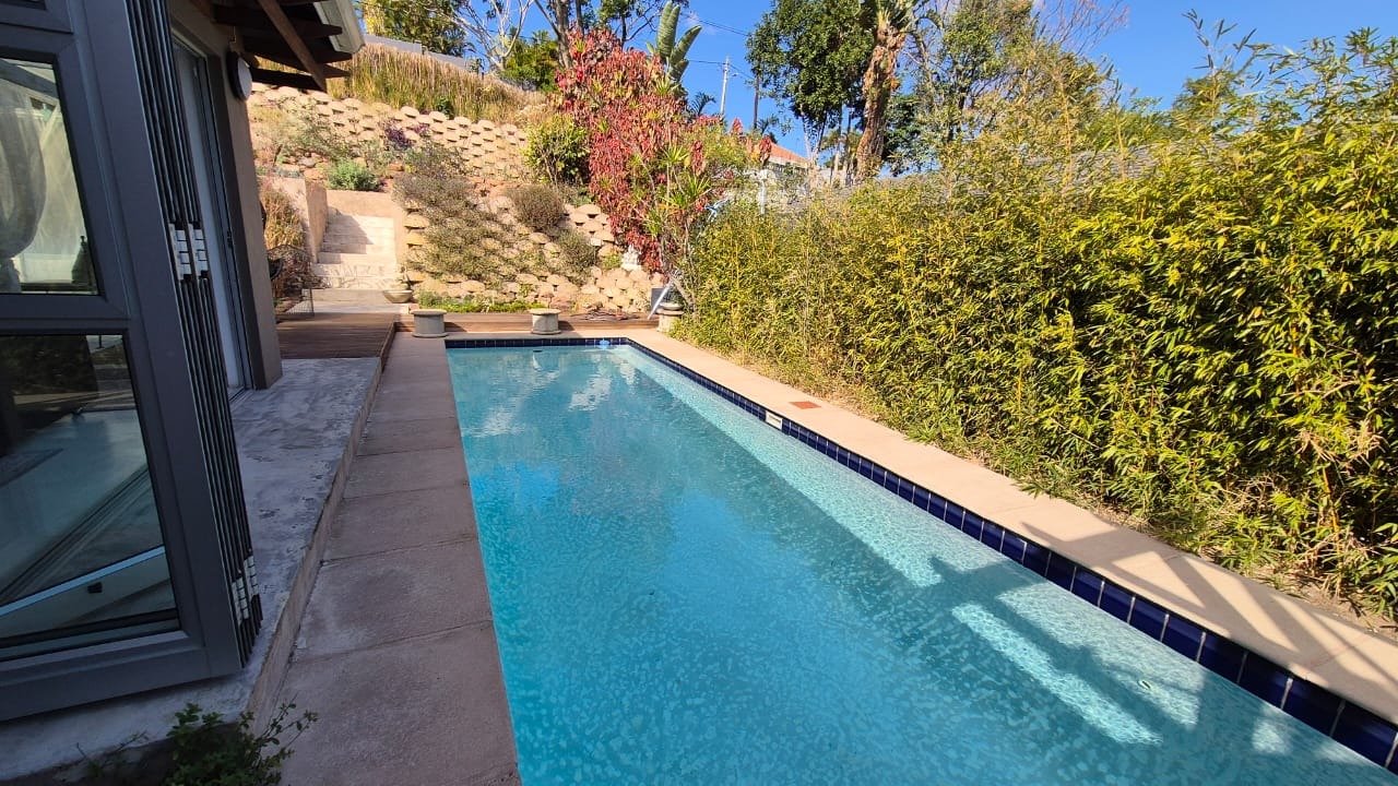 The double garage is an impressive 48sqm with automated door, plus a sliding door to the side opening onto a verandah — ideal for an entertainment room or easily converted into a flatlet. The back garden is level, perfect for green-fingered enthusiasts or a safe play haven for children.