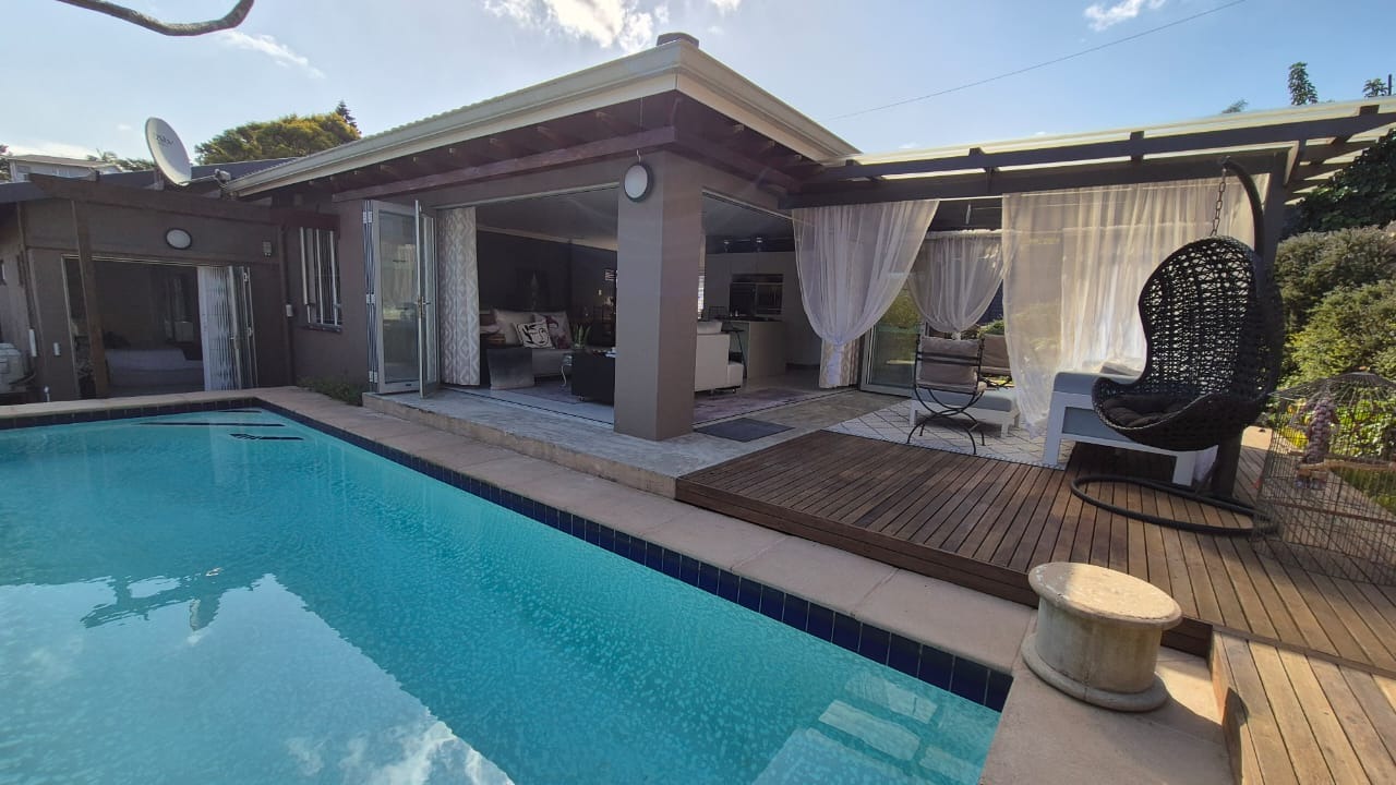 A home with a difference — and one that’s bound to steal your heart. From the moment you arrive, a charming pergola entrance sets the tone, leading you into a space where style and comfort meet. Step inside to a spacious open-plan lounge, TV area, and dining room where light streams in through stack doors on two sides, opening directly onto the sparkling pool — creating a seamless flow between indoors and out.