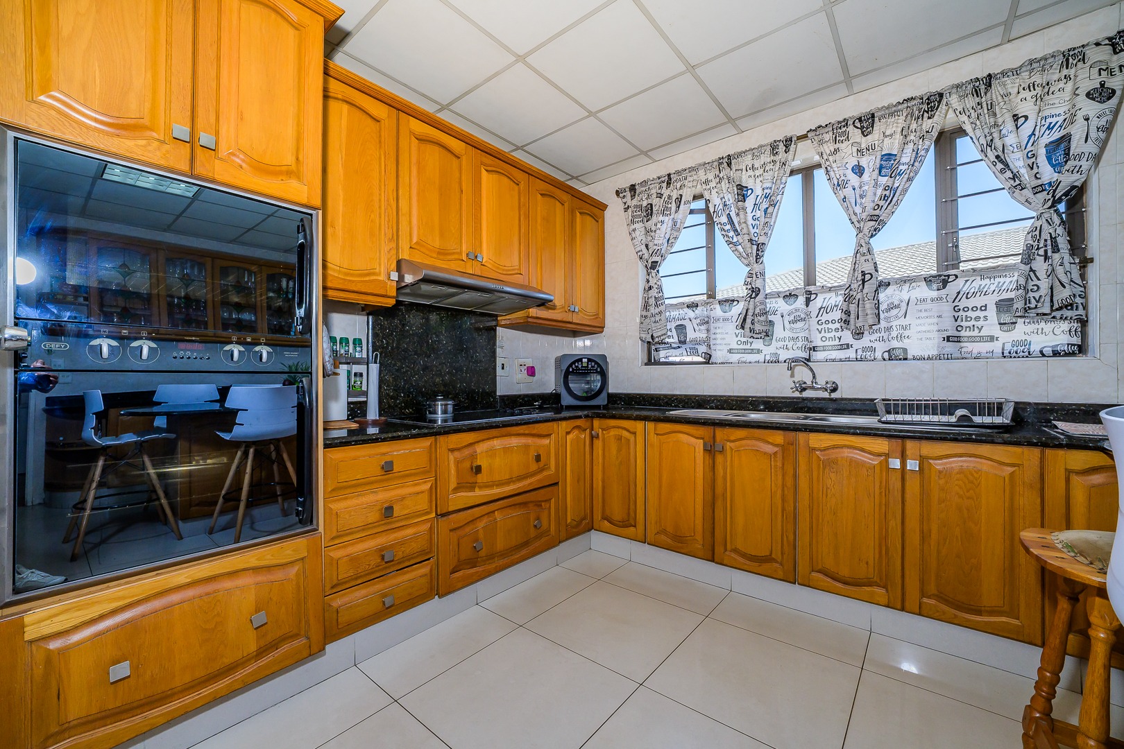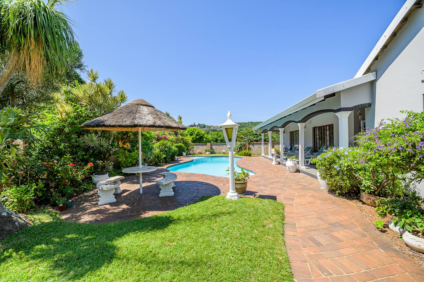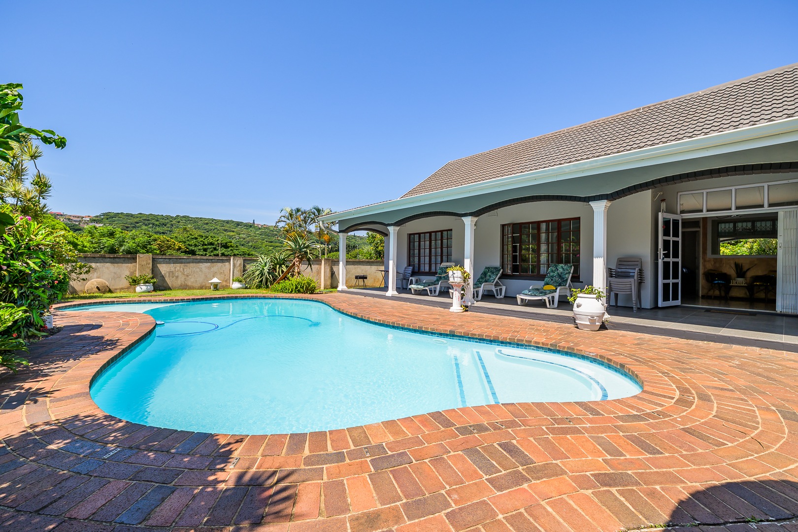One of the standout features of this property is the beautiful covered patio overlooking the sparkling swimming pool, offering the perfect place to relax while enjoying the tranquil garden setting. The lapa entertainment area further enhances the outdoor space, making it ideal for hosting family gatherings and weekend braais.