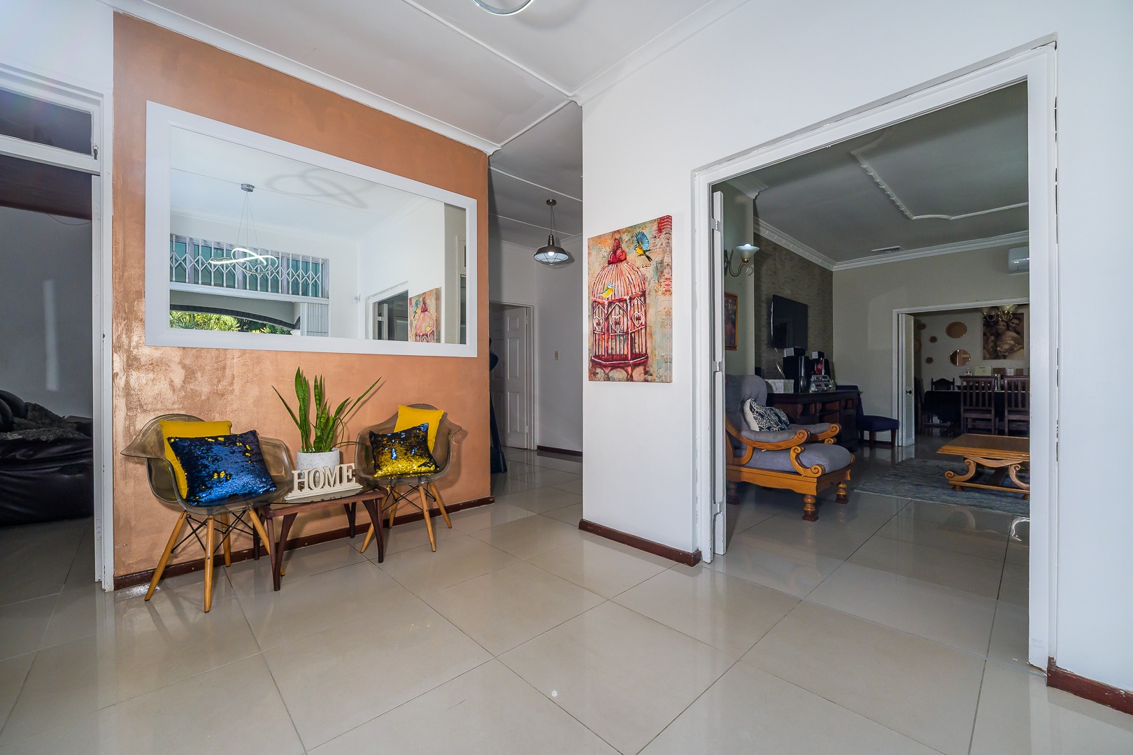 The home boasts four spacious bedrooms with ample built-in cupboard space. There are two bathrooms, with the main bedroom featuring a private en-suite bathroom, as well as a convenient guest toilet for visitors.