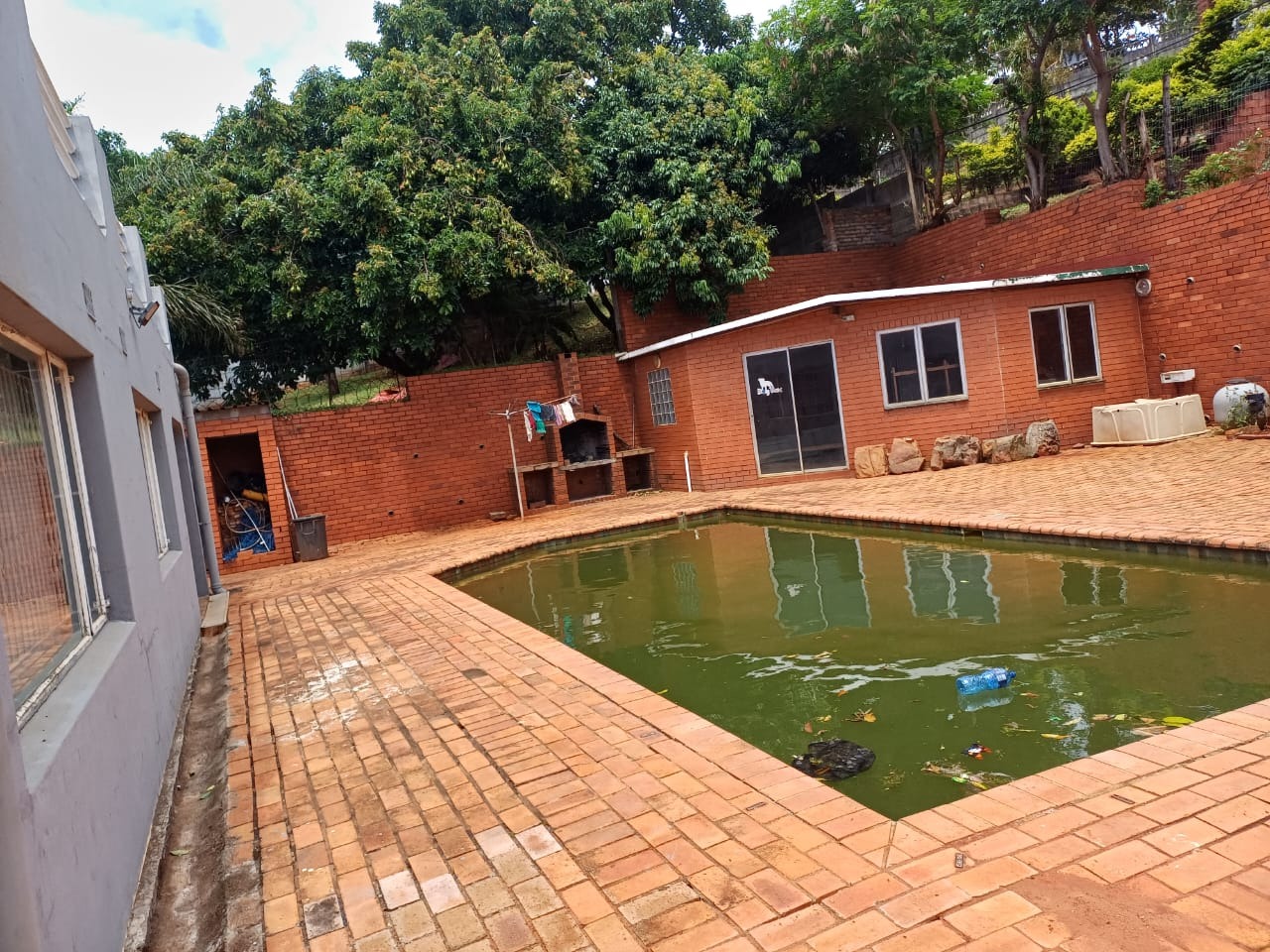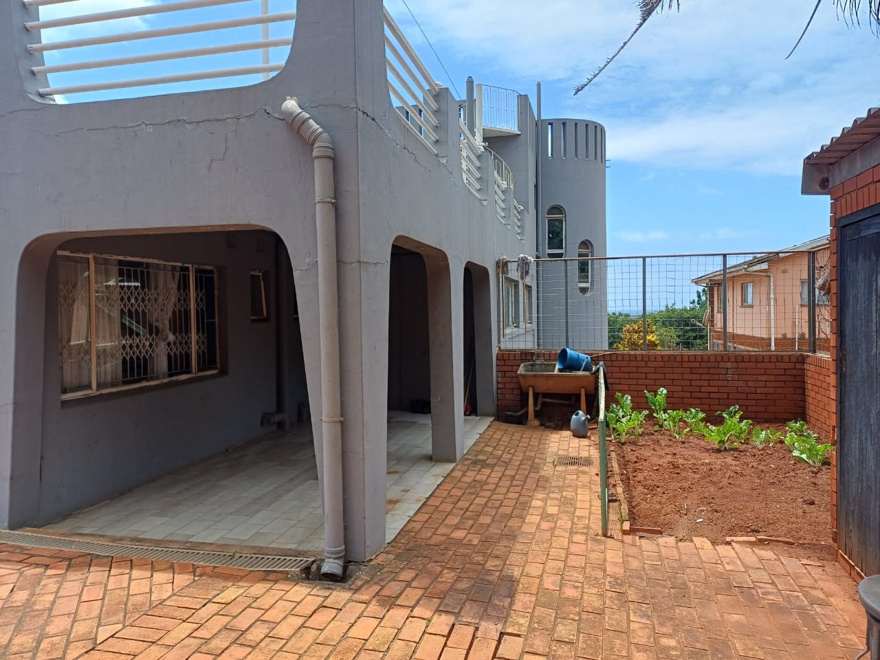 Hey there! Get ready to discover this truly unique home nestled in the lovely Malaba Hills, Isipingo. This multi-story property really stands out with its distinctive architectural design, featuring a cool cylindrical tower and multiple balconies where you can soak up those amazing sea views. It’s got fantastic bones and is just waiting for someone to come in and add their personal flair, turning it into a modern masterpiece. Step inside and you’ll find spacious living areas, including a comfy lounge and a dedicated dining room, perfect for family gatherings. The multi-level layout adds a touch of character, and with plenty of natural light streaming in, it feels bright and welcoming. The kitchen is ready for your culinary adventures, boasting ample storage, a pantry, and even an integrated bar area – great for entertaining! With 5 bedrooms and 4 bathrooms, including two ensuites, there’s loads of space for everyone to have their own private retreat. Outside, you’ve got a generous 1040 sqm erf to play with. Imagine chilling by the pool, hosting a braai under the lapa, or simply enjoying the garden. There’s also a large paved area, perfect for outdoor fun. And don't forget the rooftop – it offers incredible panoramic views, just begging to be transformed into an epic entertainment spot. Parking is a breeze with 2 garages and an additional 4 parking spaces. Plus, you’ll feel secure with features like an alarm system, access gate, fencing, intercom, and burglar bars. This home is a fantastic opportunity to create your dream space in a suburban setting, with the added bonus of those beautiful sea views. Pets are welcome too! Key Features: * 5 Bedrooms, 4 Bathrooms (2 Ensuites) * Spacious Lounge & Dining Room * Kitchen with Pantry & Built-in Bar * Private Pool & Lapa * Generous 1040 sqm Erf * 2 Garages & 4 Parking Spaces * Balconies with Sea Views * Alarm System & Burglar Bars