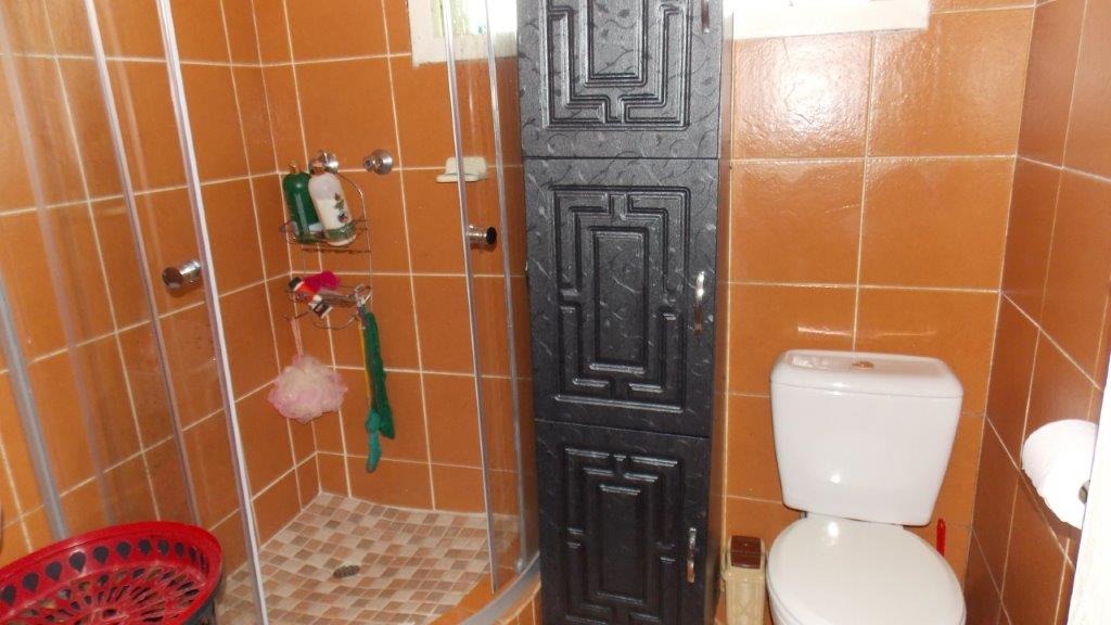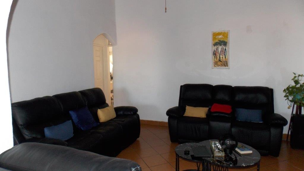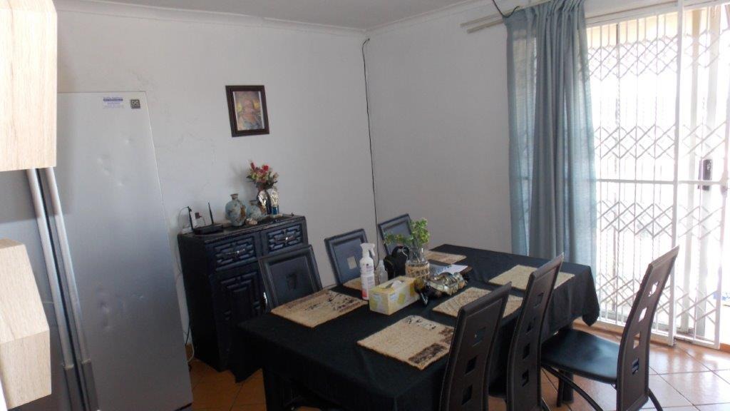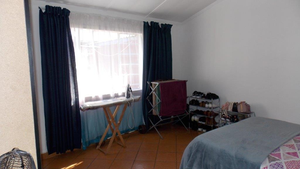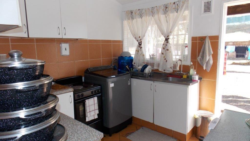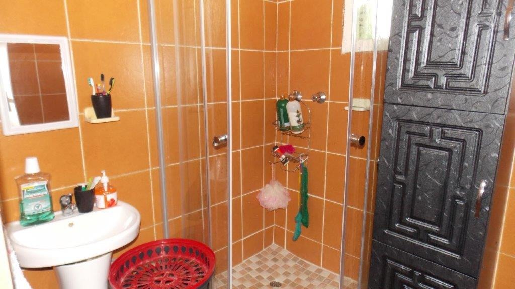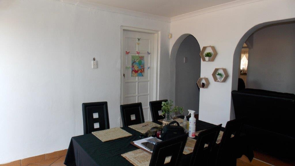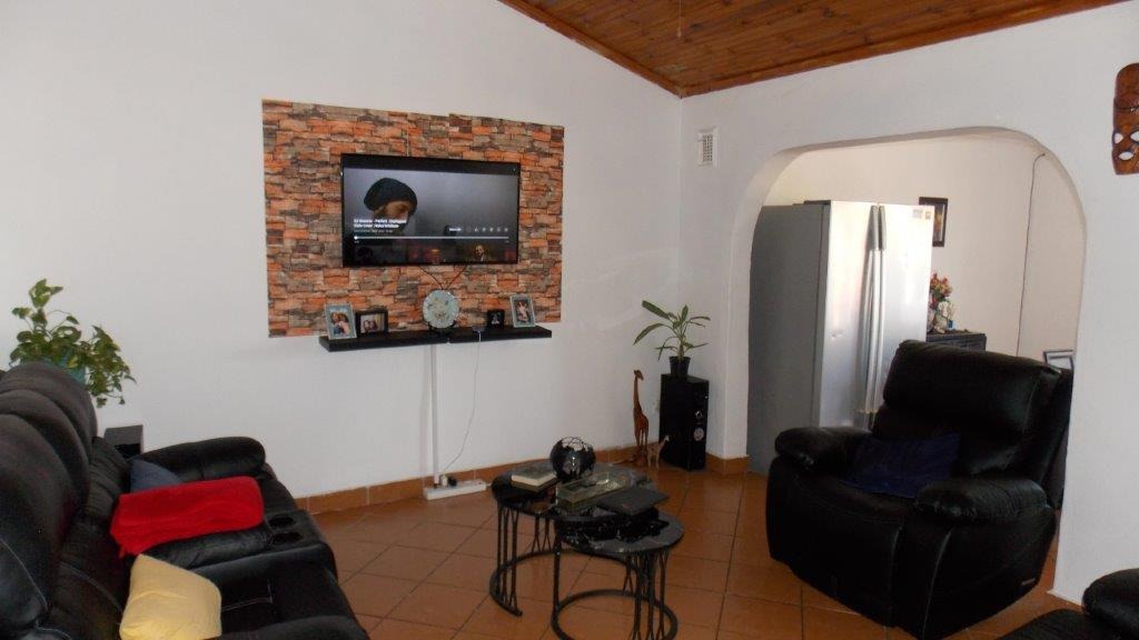 Come view this Three bedroom- house with lounge and open plan dining room with sliding door to the decking above the double garage, the decked area can be used for entertainment purposes, kitchen with built-in cupboards, fully tiled bathroom, floors are all tiled, ceilings with mixture of knotty pine and white rhino boards, very spacious double garage with a side door, large back yard with loads of space for expansion. Full burglar proofing on all windows and doors.