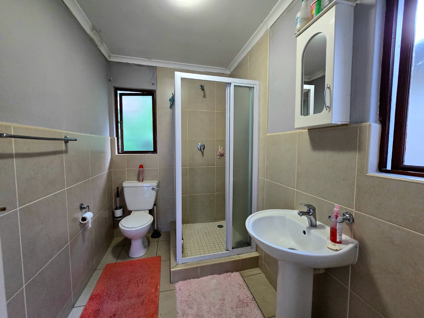 This home offers three comfortable bedrooms, providing plenty of space for everyone. There are two bathrooms in total, with one being an ensuite for added privacy and convenience. The main bathroom is functional and bright, featuring a bathtub and natural light from the window.