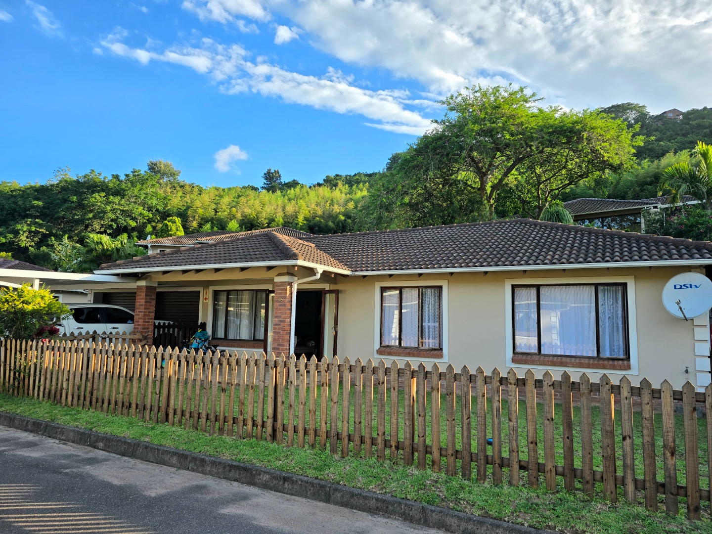 Come and discover this lovely 3-bedroom home nestled in a friendly complex in Moseley Park, Pinetown. You'll immediately notice its inviting curb appeal, featuring a well-maintained exterior, a charming picket fence, and a lush green hilly backdrop that gives it a natural, serene feel. This spot offers a wonderful blend of comfort and convenience, perfect for anyone looking for a relaxed lifestyle.
