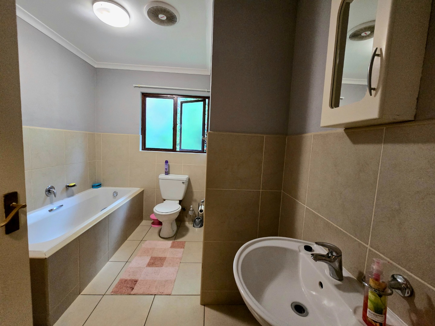 This home offers three comfortable bedrooms, providing plenty of space for everyone. There are two bathrooms in total, with one being an ensuite for added privacy and convenience. The main bathroom is functional and bright, featuring a bathtub and natural light from the window.