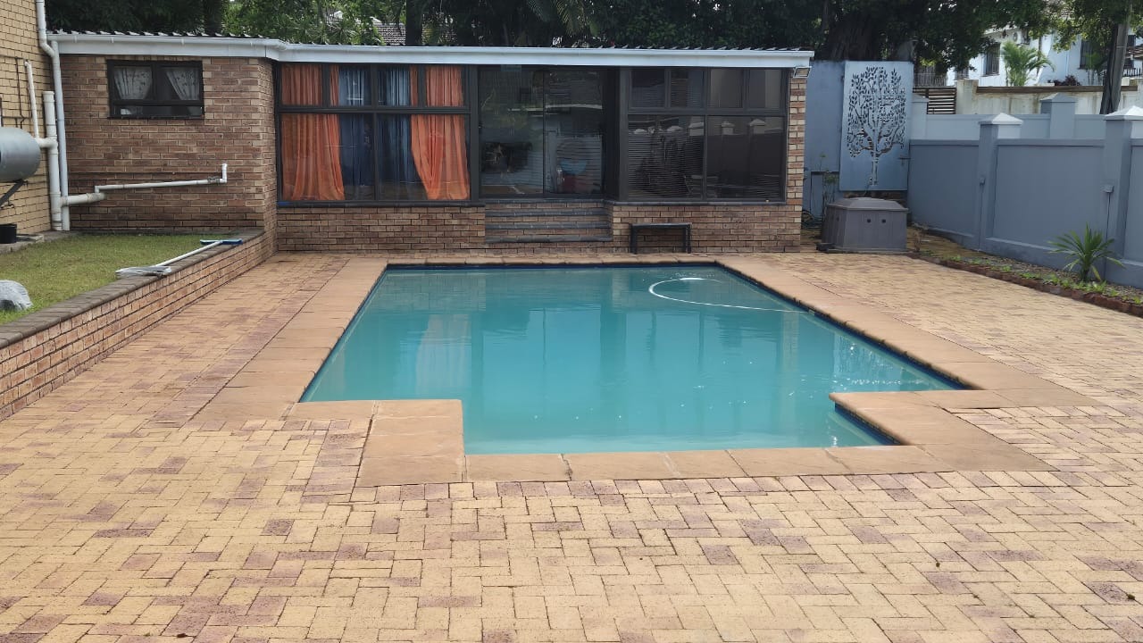 This distinguished single-story residence in Escombe, Queensburgh, presents a compelling blend of comfort and security. The property boasts a well-maintained brick exterior, complemented by an established garden and recent landscaping. Enhanced security is evident through perimeter fencing, double driveway gates and robust burglar bars. A covered carport and paved driveway provide ample parking for up to six vehicles or more alongside a single garage