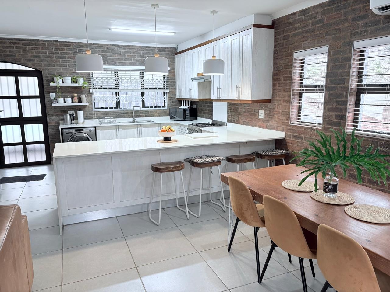Outside, the fun continues with a sparkling swimming pool, ideal for those hot South African days. There's a covered patio area right next to it, perfect for braais and entertaining friends and family. With a generous 1584 sqm erf and ample paved areas, you'll find plenty of space for outdoor activities and parking for up to 10 vehicles. Plus, your furry friends are welcome here!