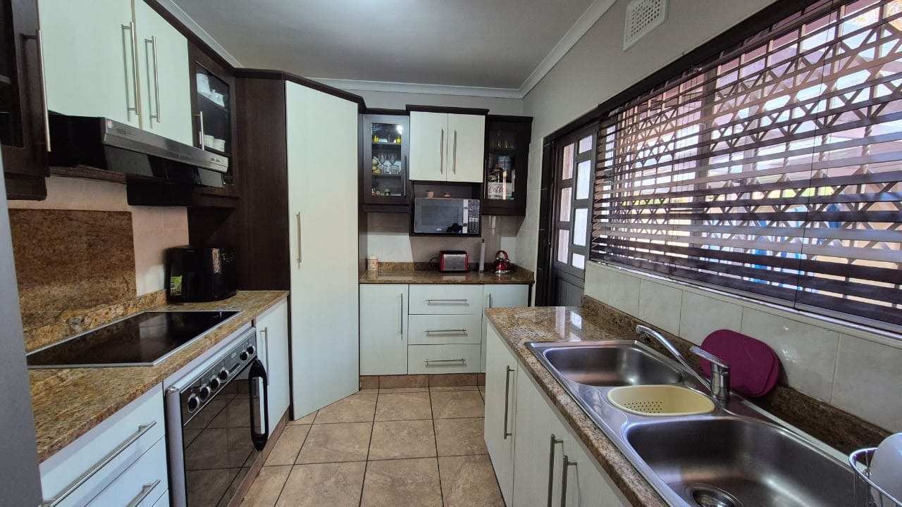 The residence comprises three well-proportioned bedrooms and two bathrooms, including a private en-suite with a shower.. Outdoor amenities feature a refreshing swimming pool, a neatly paved area, and a well-maintained garden, offering versatile spaces for relaxation. Comprehensive security is ensured with an alarm system, burglar bars, security gates, and a fully walled perimeter. This wheelchair-friendly and pet-accommodating property is situated in the established suburb of Escombe, Queensburgh, providing convenient access to local amenities. Easy access to Escombe Primary School.