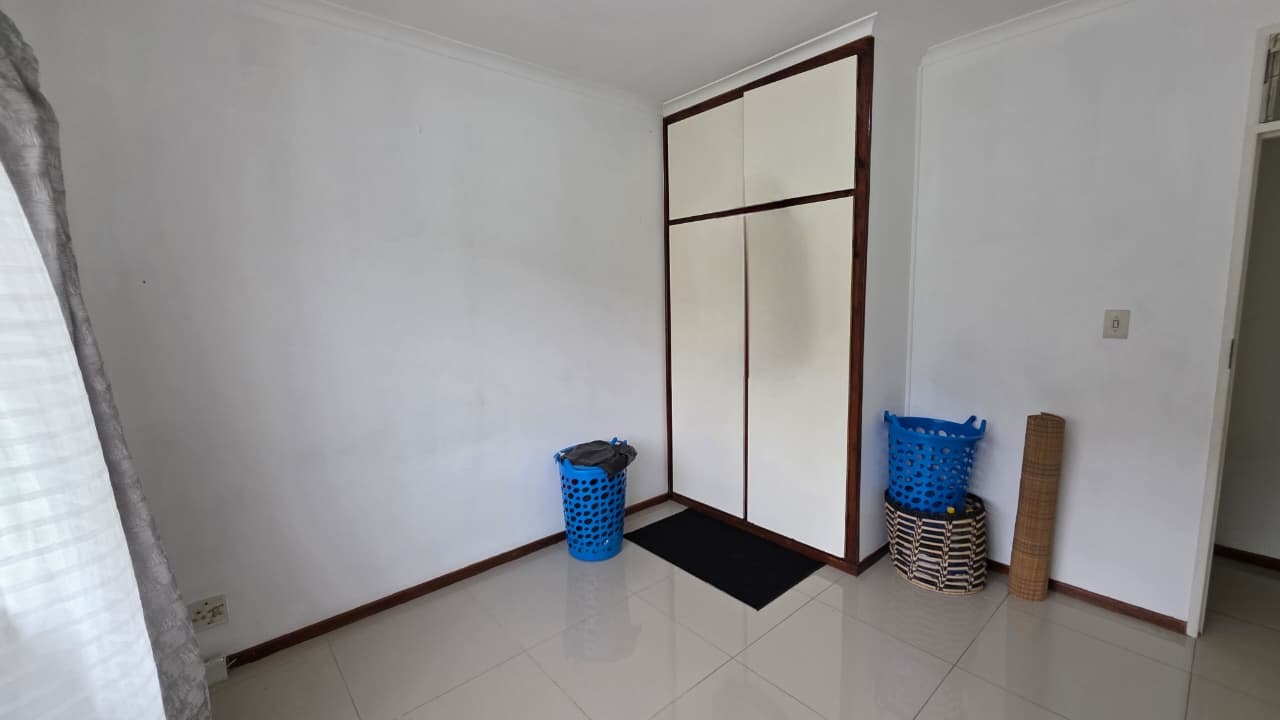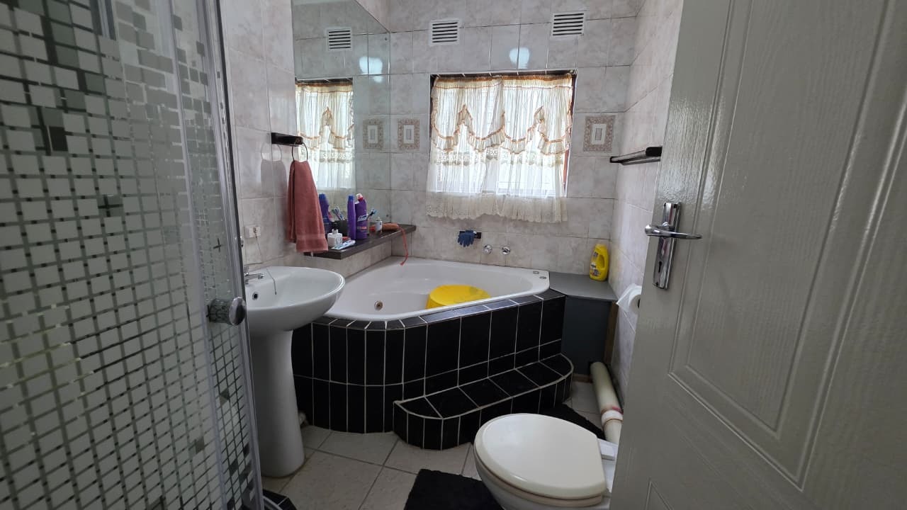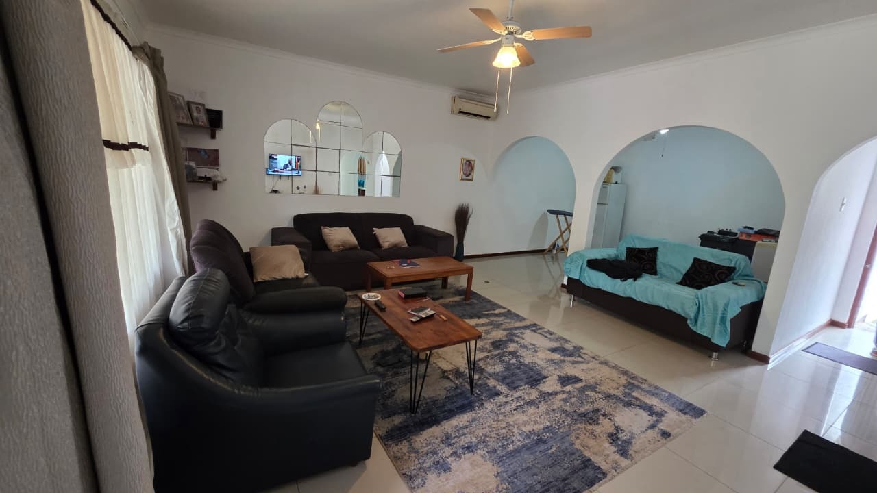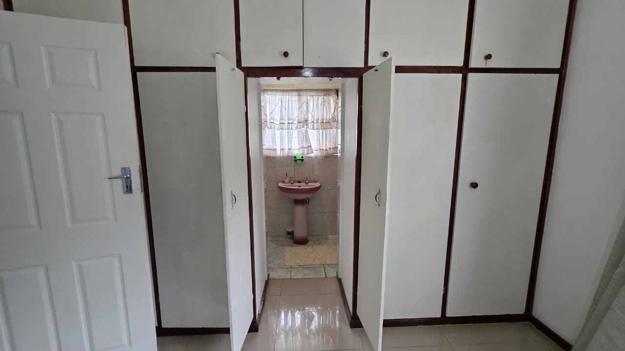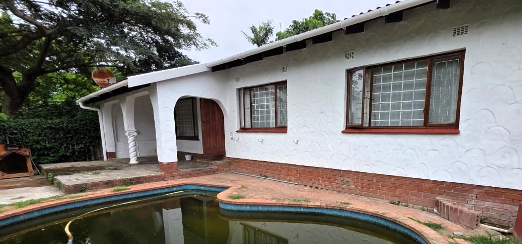 Discover this charming single-story home in Escombe, Queensburgh. With a freshly painted white exterior and inviting arched porch, it offers great curb appeal. Step inside to a spacious living room featuring tiled floors, a ceiling fan, and air conditioning for comfort. The functional kitchen provides ample cabinet space, a double sink, and a breakfast bar, plus space for a washing machine. You'll find three comfortable bedrooms, all with tiled flooring and built-in wardrobes, and two bathrooms, including one with an enclosed shower. Outside, the generous 1383 sqm erf boasts a private swimming pool, ready for future summer fun, and a double garage. 2 Bedroom flatlet for extra income. Convenient driveway parking is available, and pets are welcome! This property in friendly Escombe is a wonderful opportunity to create your ideal home.