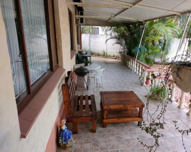 To generate extra income, you are getting 2 times 1 bedroom Granny flats, open plan fully fitted and with prepaid utilities, with own private parking. The level land has driveway access into a double garage and extra carport.