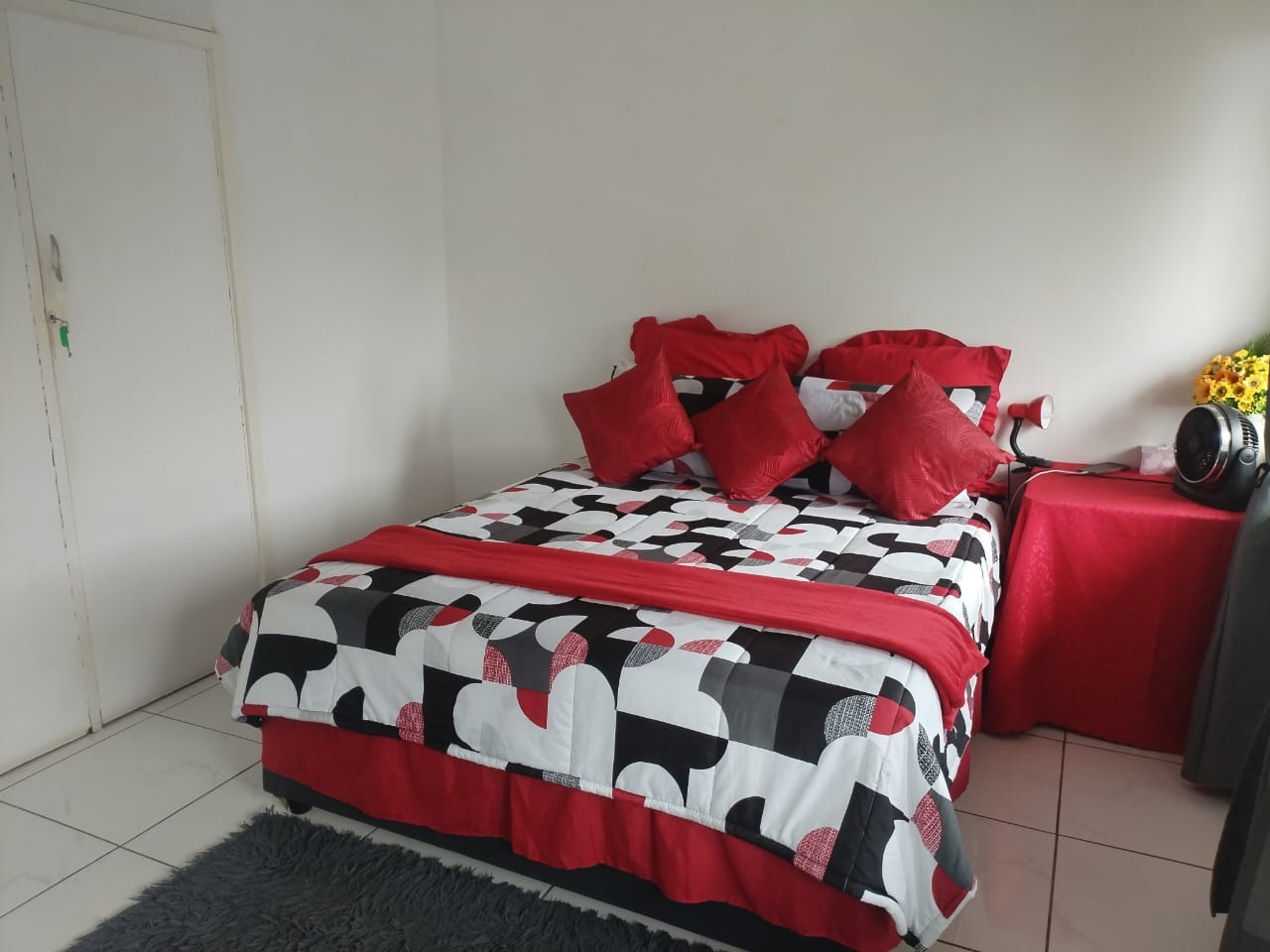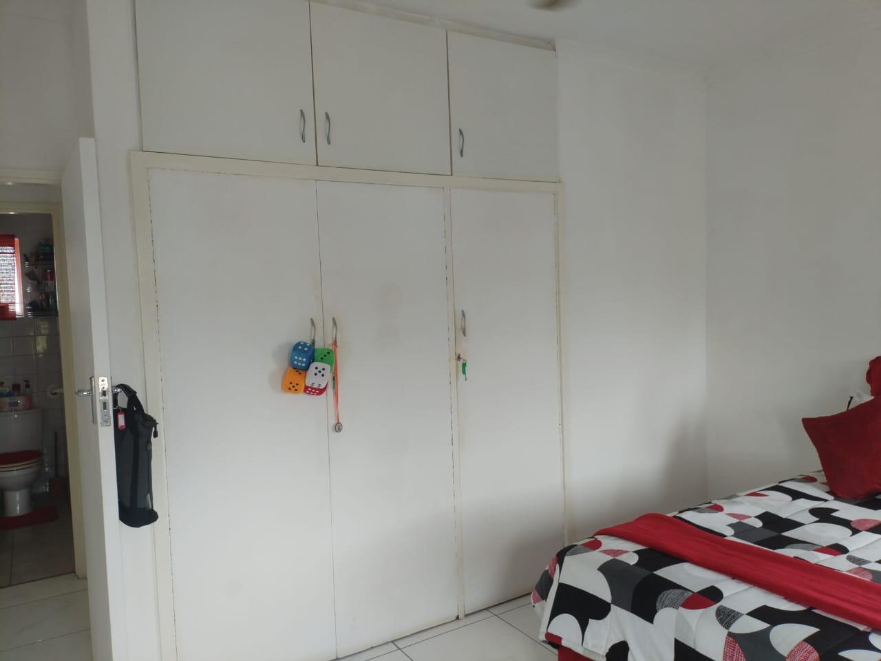 features two spacious bedrooms with built-in cupboards, a bright open-plan
