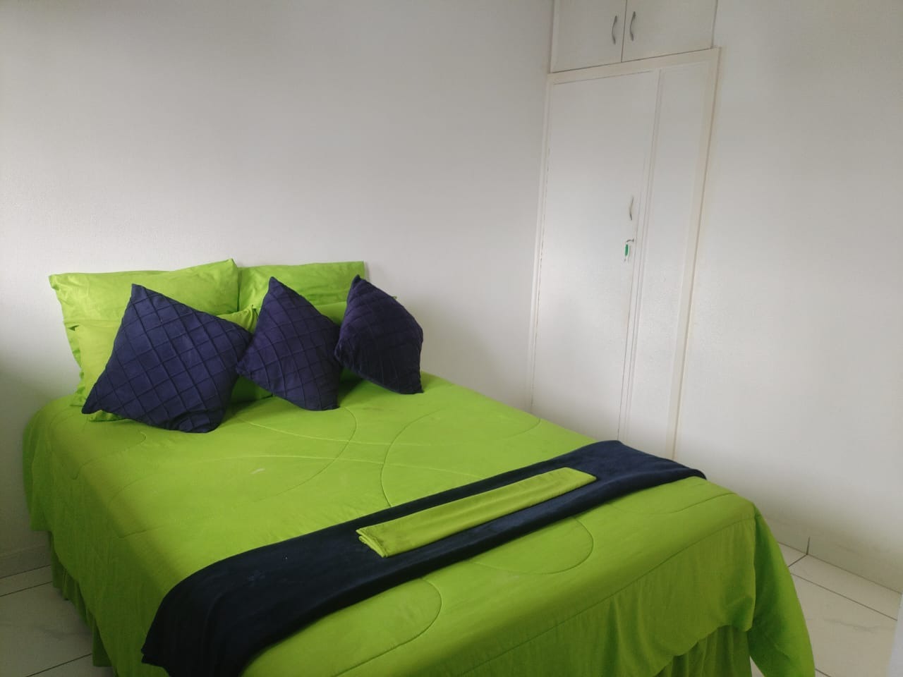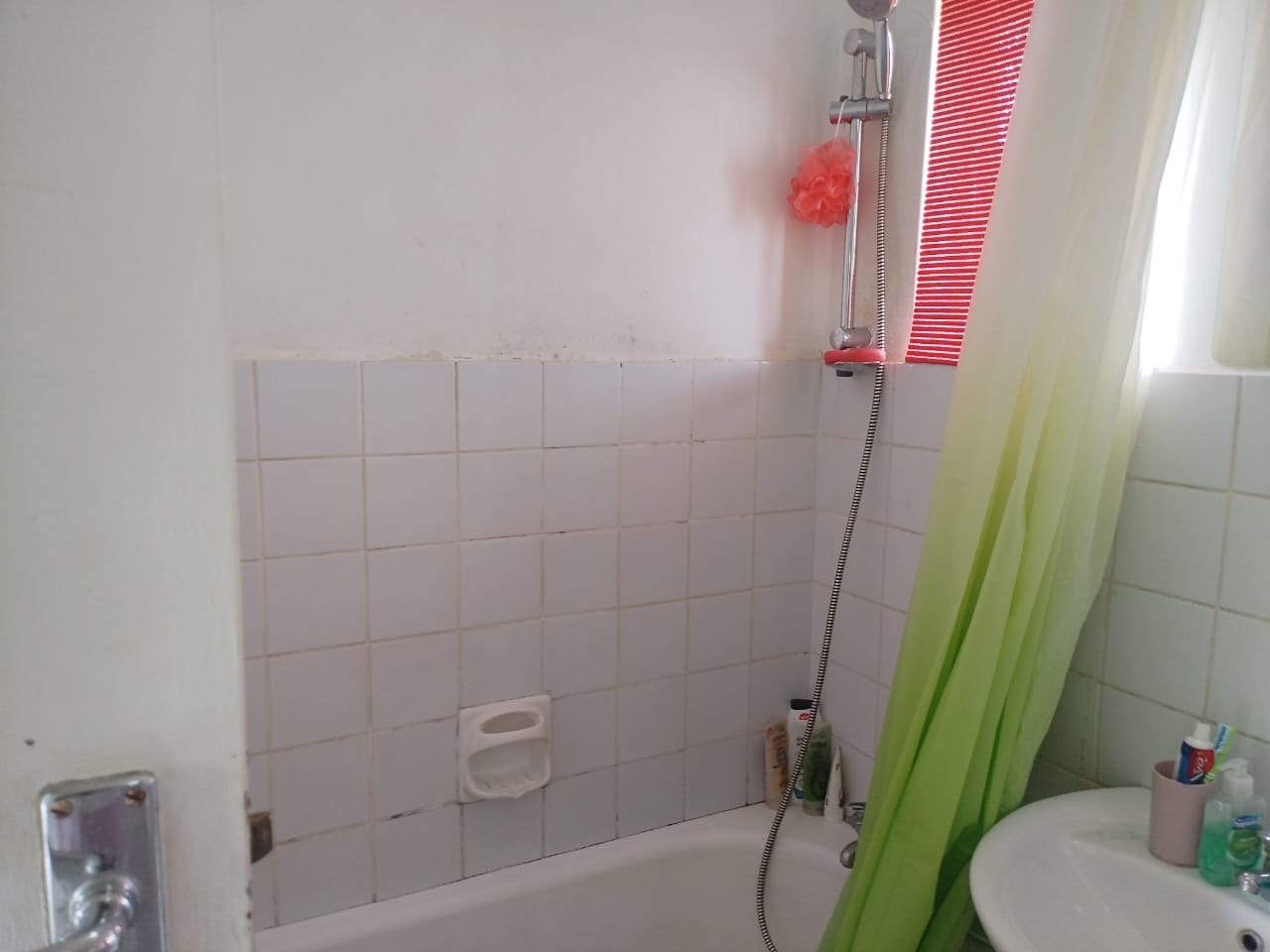 features two spacious bedrooms with built-in cupboards, a bright open-plan