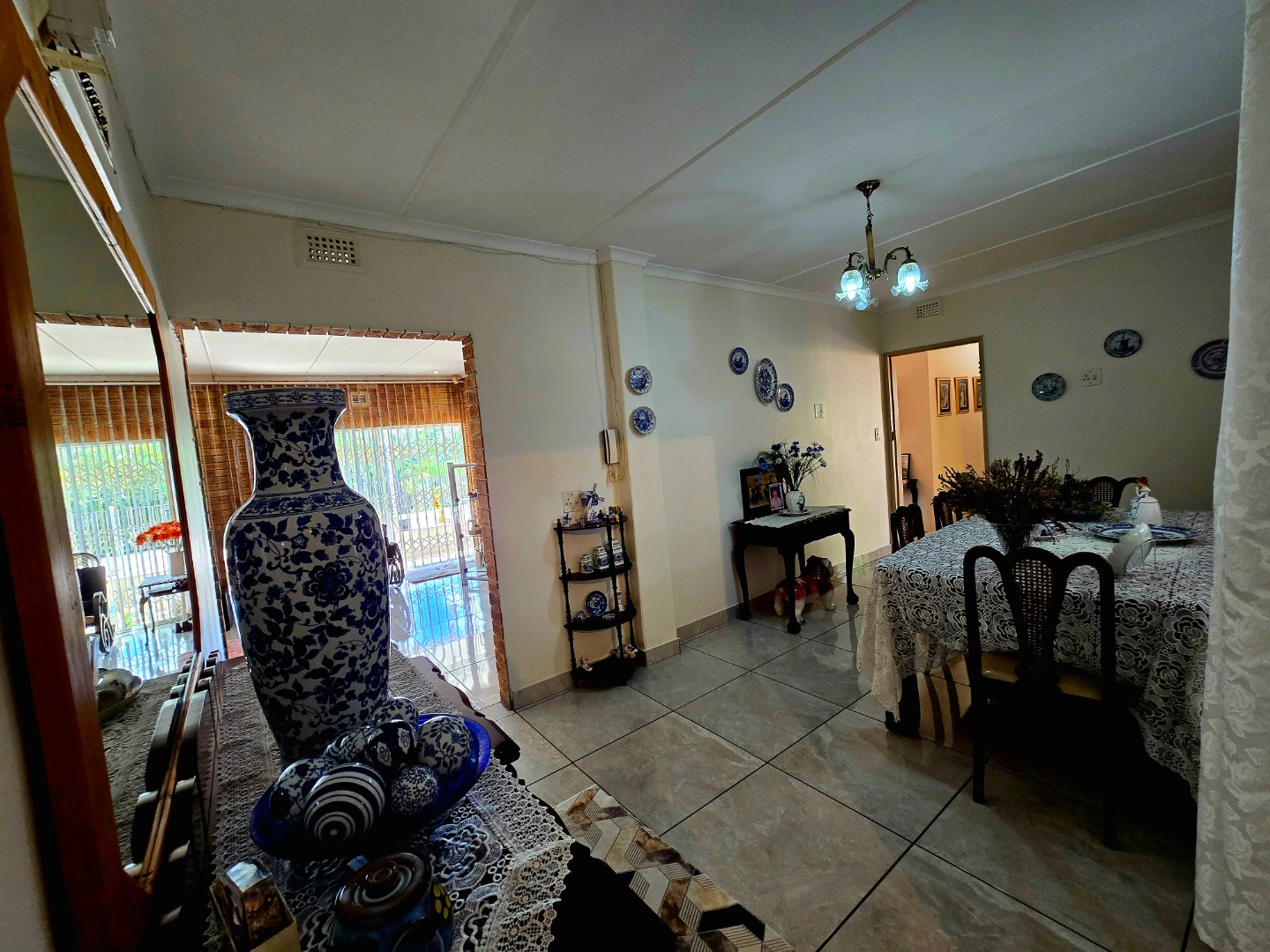 Discover this expansive residential property nestled in the established suburb of Malvern, Queensburgh. Boasting a generous 2672 sqm erf, this home offers a blend of comfortable living spaces and versatile outdoor amenities. The interior features three well-proportioned bedrooms and two bathrooms, including a convenient en-suite. With two spacious lounges and a dedicated dining room, there is ample room for relaxation and entertaining. The open-plan design enhances the flow, complemented by an inviting entrance hall. The functional kitchen is equipped with extensive cabinetry, durable black stone countertops, and modern built-in appliances including an oven, hob, and extractor fan. An integrated microwave and ample storage solutions, including glass-front display cabinets, cater to all culinary needs. Adjacent to the kitchen, a practical utility area provides a double stainless steel sink and dedicated spaces for major appliances, all set on easy-to-maintain tiled flooring. Natural light floods the living areas and bedrooms, creating a bright and welcoming atmosphere. Step outside to enjoy a private oasis featuring a refreshing swimming pool, a charming patio, and a balcony offering scenic views. The property is surrounded by a well-maintained garden and extensive paving, providing a neat and appealing exterior. Parking is abundant with two garages and an impressive fourteen additional parking spaces, including a carport, ensuring convenience for residents and guests. The property also includes a built-in bar, perfect for social gatherings, and benefits from a separate flatlet, domestic rooms, and outside toilets, offering potential for extended family living or rental income. Security is paramount with features such as an alarm system, access gate, fencing, and a totally walled perimeter, providing peace of mind. This Malvern residence combines spacious living with practical features and a desirable location, making it an ideal family home. Key Features: * 3 Bedrooms, 2 Bathrooms (1 En-suite) * 2 Lounges, 1 Dining Room * Spacious Kitchen with Black Stone Countertops * Swimming Pool, Patio, and Balcony * 2 Garages and 14 Parking Spaces * Large 2672 sqm Erf with Garden and Paving * Built-in Bar and Open Plan Living * Separate Flatlet, Domestic Rooms, Outside Toilets * Alarm System, Access Gate, Fenced, Totally Walled * Scenic Views and Water Tanks