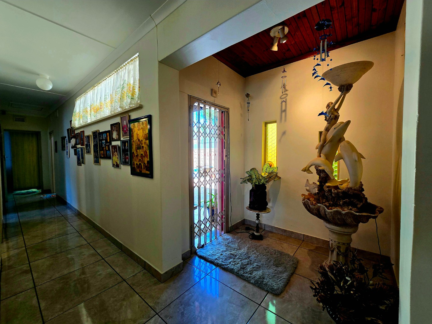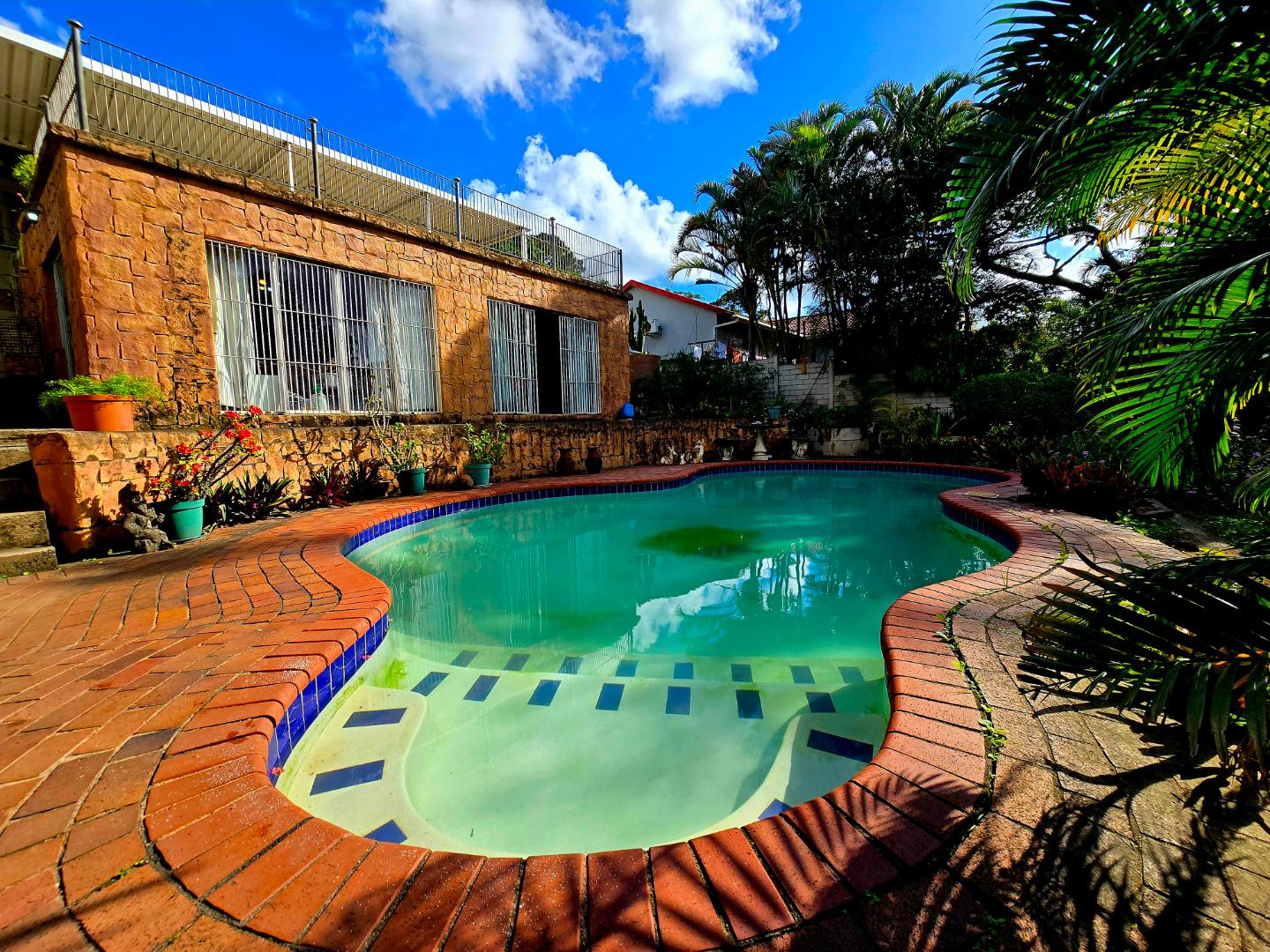 Discover this expansive residential property nestled in the established suburb of Malvern, Queensburgh. Boasting a generous 2672 sqm erf, this home offers a blend of comfortable living spaces and versatile outdoor amenities. The interior features three well-proportioned bedrooms and two bathrooms, including a convenient en-suite. With two spacious lounges and a dedicated dining room, there is ample room for relaxation and entertaining. The open-plan design enhances the flow, complemented by an inviting entrance hall. The functional kitchen is equipped with extensive cabinetry, durable black stone countertops, and modern built-in appliances including an oven, hob, and extractor fan. An integrated microwave and ample storage solutions, including glass-front display cabinets, cater to all culinary needs. Adjacent to the kitchen, a practical utility area provides a double stainless steel sink and dedicated spaces for major appliances, all set on easy-to-maintain tiled flooring. Natural light floods the living areas and bedrooms, creating a bright and welcoming atmosphere. Step outside to enjoy a private oasis featuring a refreshing swimming pool, a charming patio, and a balcony offering scenic views. The property is surrounded by a well-maintained garden and extensive paving, providing a neat and appealing exterior. Parking is abundant with two garages and an impressive fourteen additional parking spaces, including a carport, ensuring convenience for residents and guests. The property also includes a built-in bar, perfect for social gatherings, and benefits from a separate flatlet, domestic rooms, and outside toilets, offering potential for extended family living or rental income. Security is paramount with features such as an alarm system, access gate, fencing, and a totally walled perimeter, providing peace of mind. This Malvern residence combines spacious living with practical features and a desirable location, making it an ideal family home. Key Features: * 3 Bedrooms, 2 Bathrooms (1 En-suite) * 2 Lounges, 1 Dining Room * Spacious Kitchen with Black Stone Countertops * Swimming Pool, Patio, and Balcony * 2 Garages and 14 Parking Spaces * Large 2672 sqm Erf with Garden and Paving * Built-in Bar and Open Plan Living * Separate Flatlet, Domestic Rooms, Outside Toilets * Alarm System, Access Gate, Fenced, Totally Walled * Scenic Views and Water Tanks