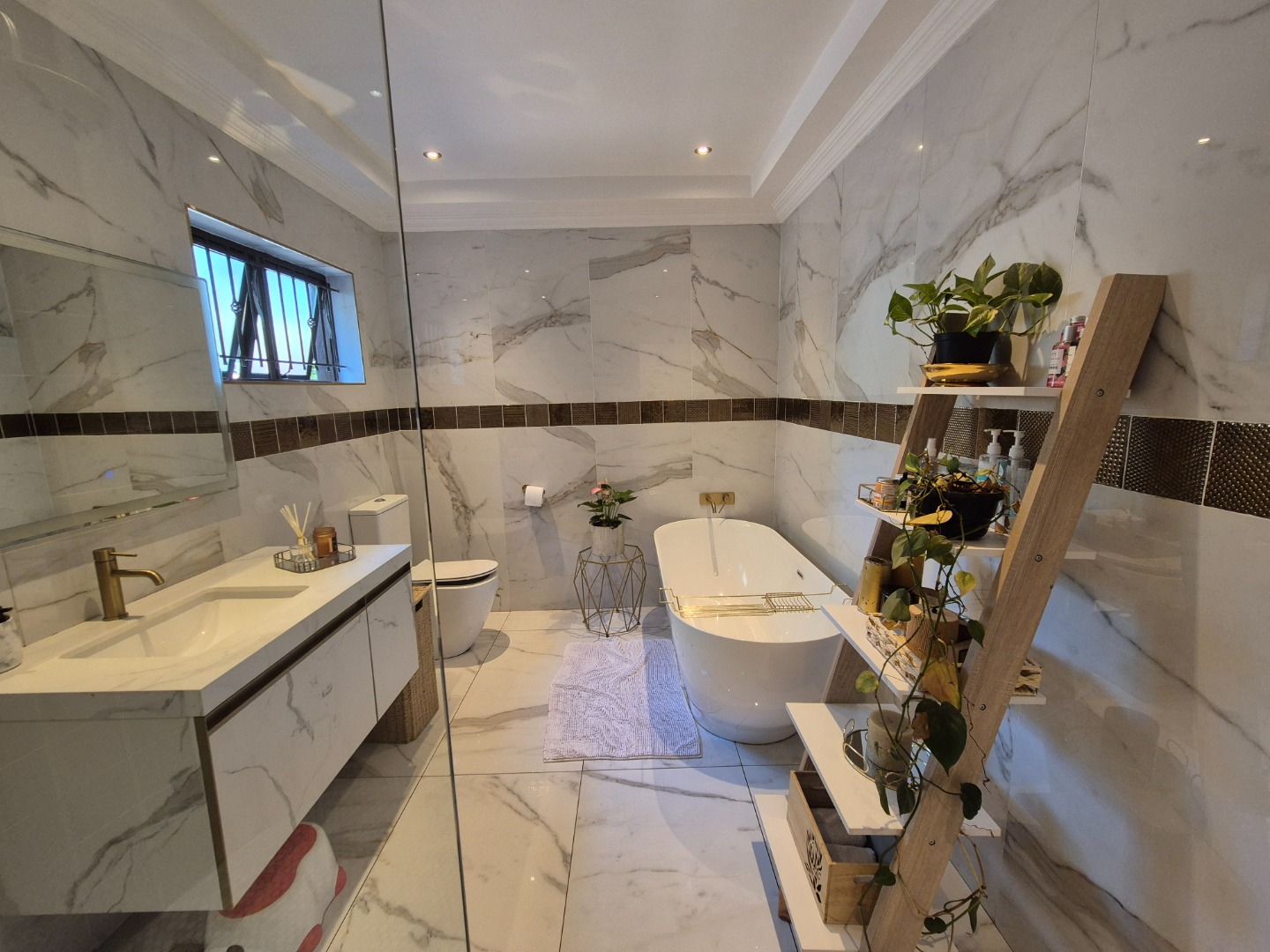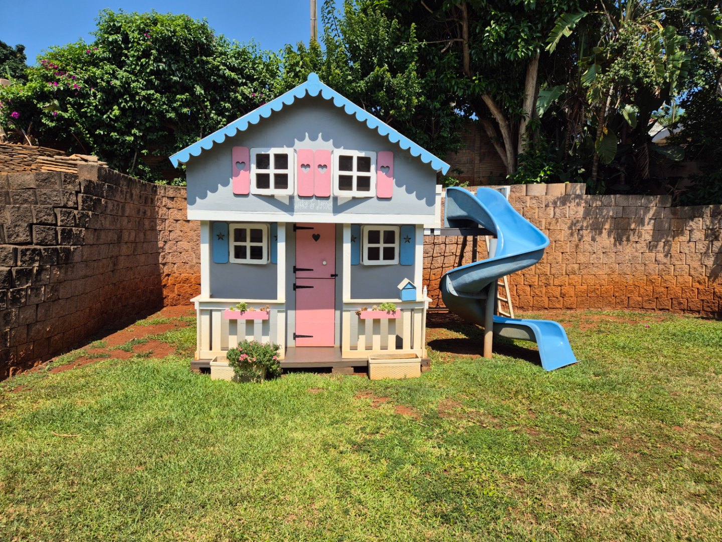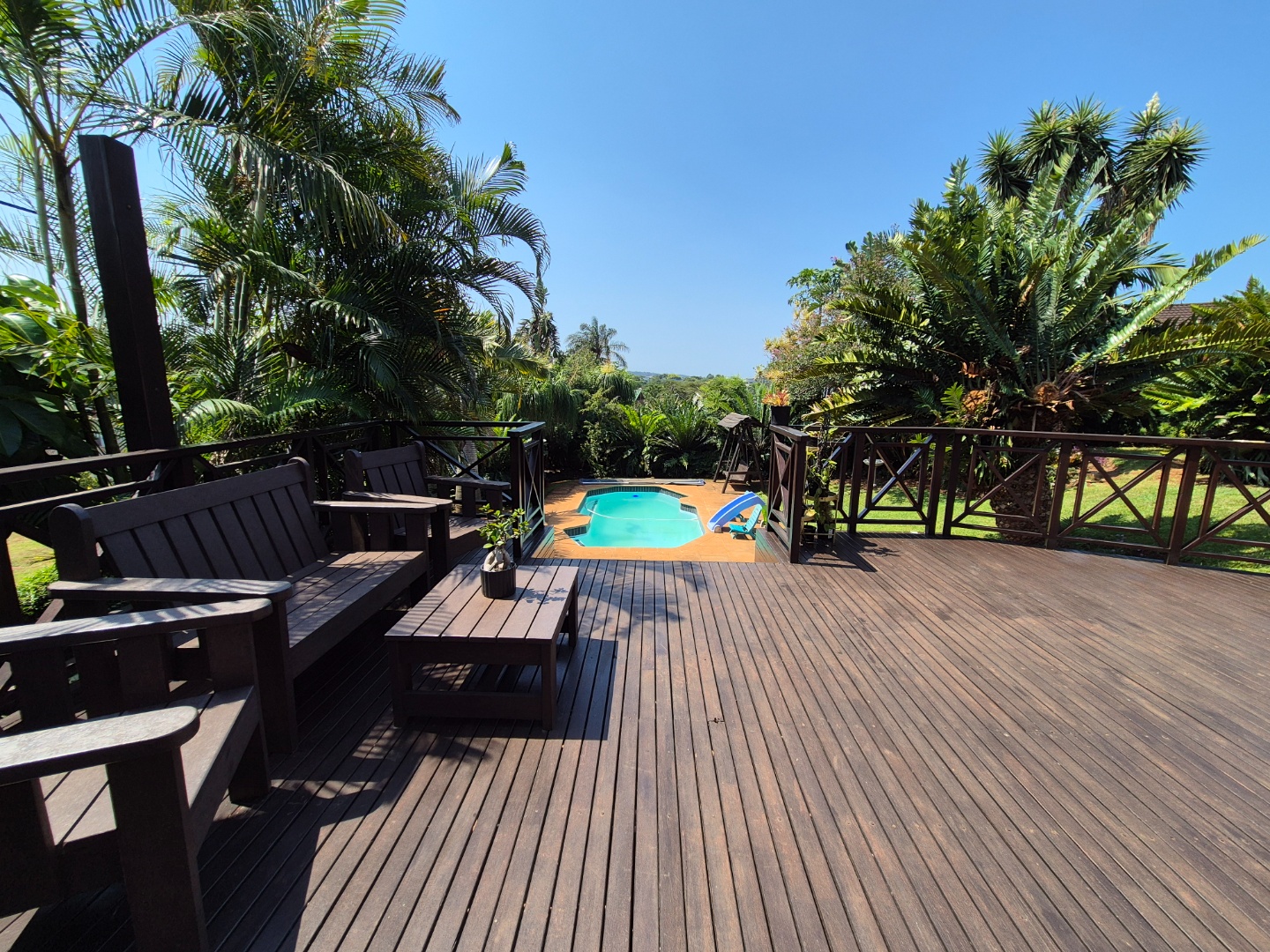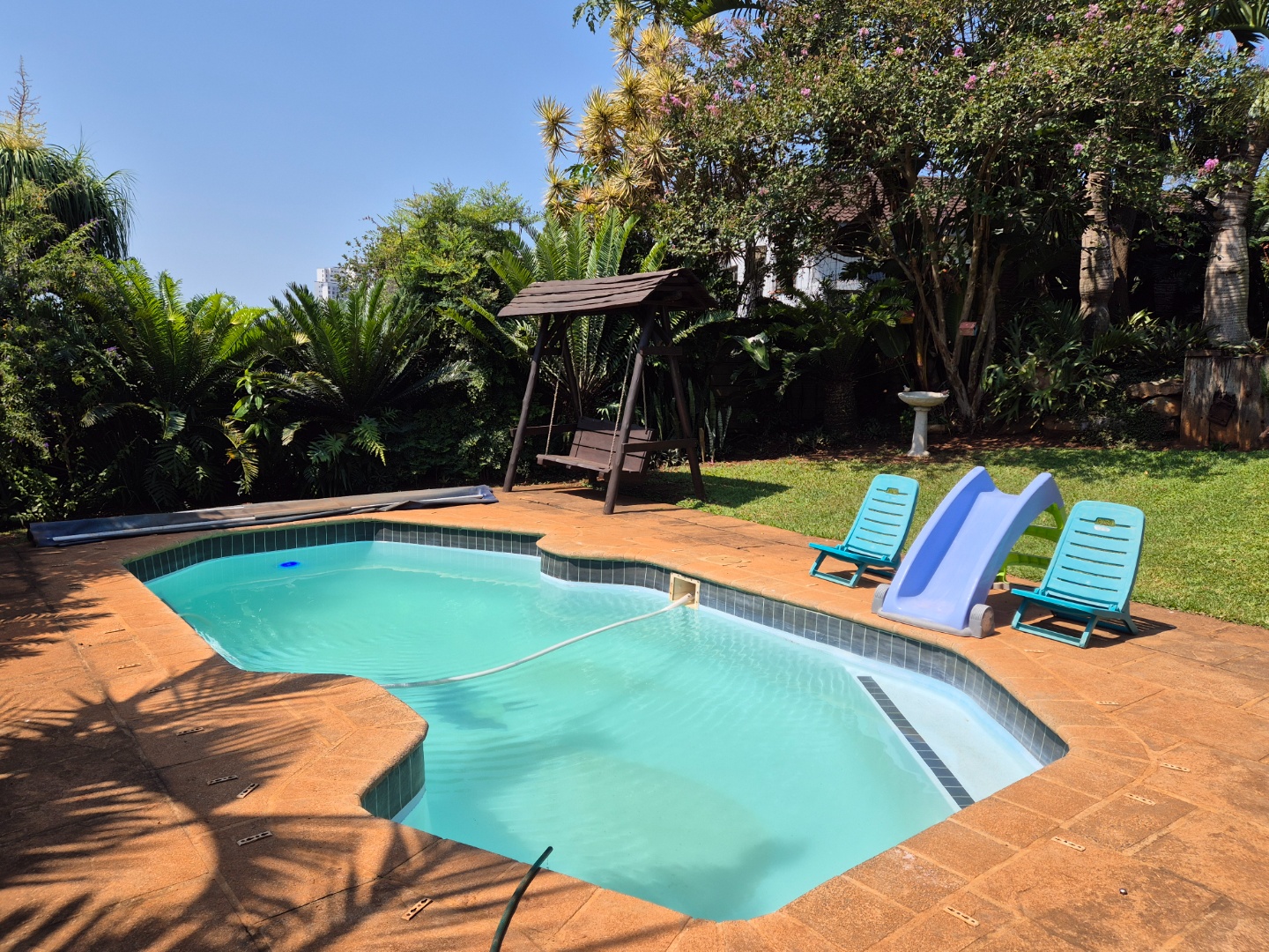 The pool area is superb, complemented by a wooden deck, braai area, jungle gym and
