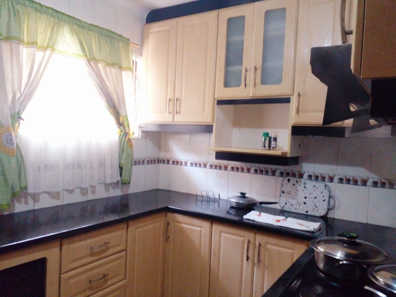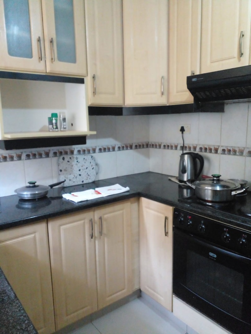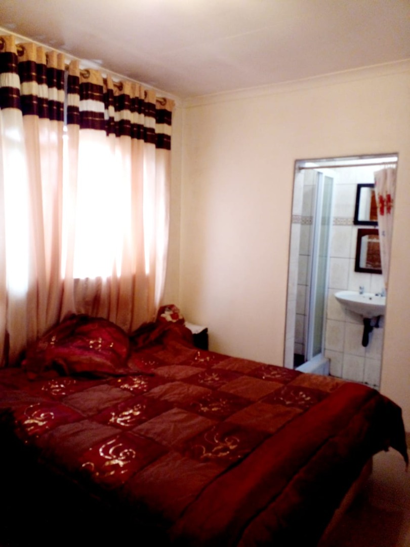 Very neat and fully tiled, with a fully fitted kitchen. Built in cupboards in all rooms.